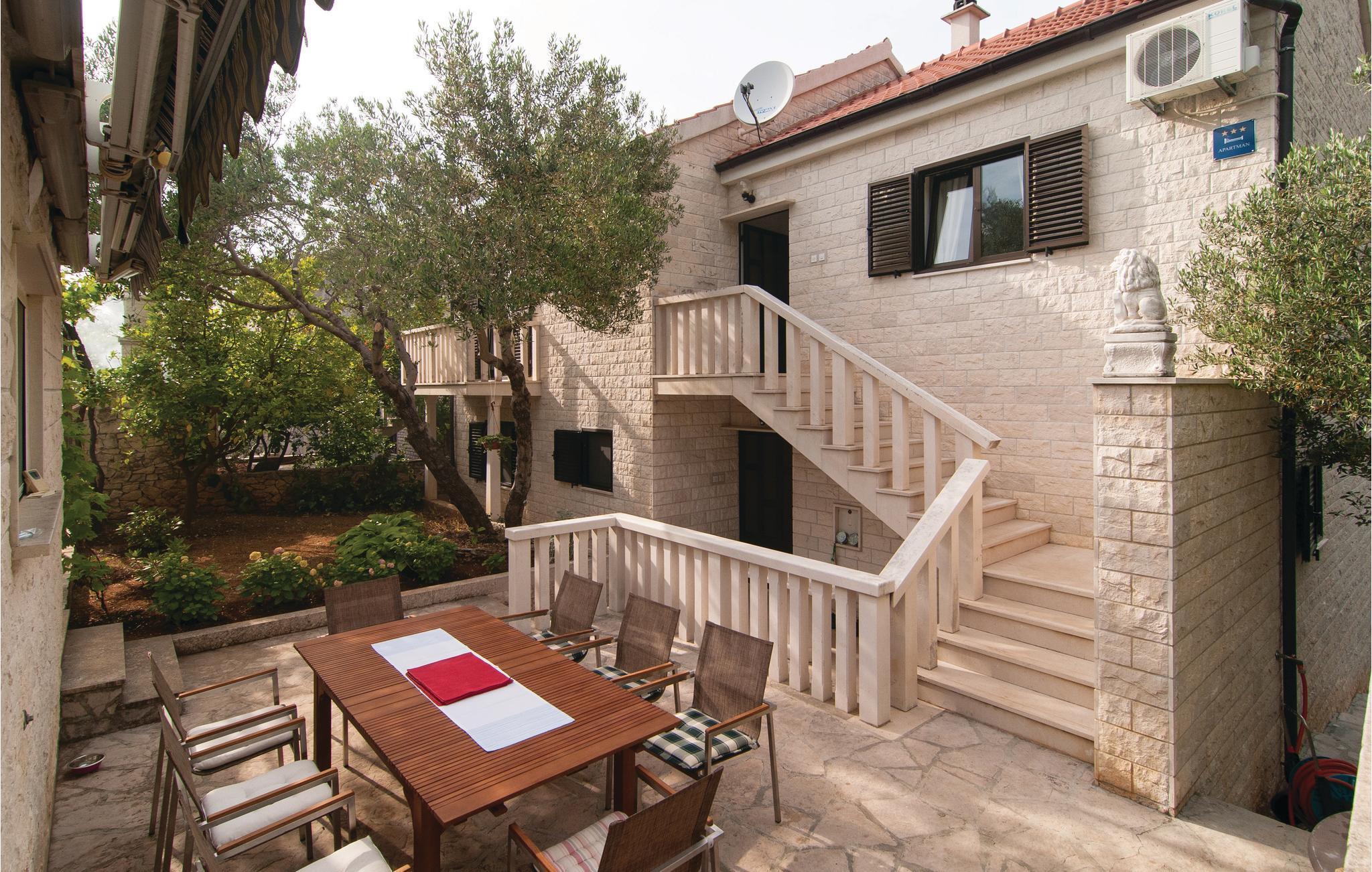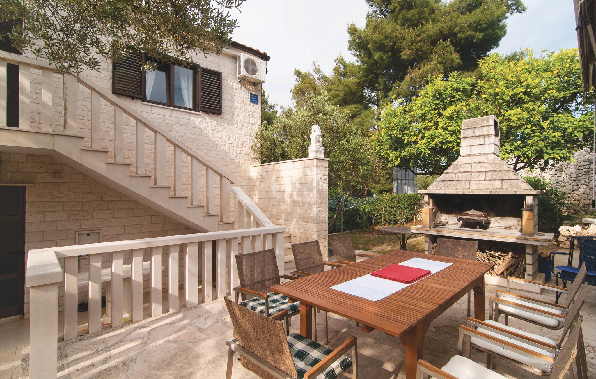 Diese geschmackvoll eingerichtete Ferienwohnung befindet sich im Ort Supetar, auf der schönen Insel Brac. Die Ferienwohnung bietet mit vier Schlafzimmern und jeweils einer Terrasse sowie zwei Bädern alles für einen entspannten und gelungenen Urlaub. In der Küche im Obergeschoss steht kein Herd zur Verfügung, den Sie aber in der separaten Sommerküche im Erdgeschoss vorfinden werden, welche zugleich auch auf die Terrasse mit Grill führt. Lassen Sie die Seele an den herrlichen Stränden von Supetar baumeln. Supetar lädt mit seinen romantischen Plätzen und vielen guten Restaurants zum Verweilen ein und ist der ideale Ort für einen unvergesslichen Urlaub.