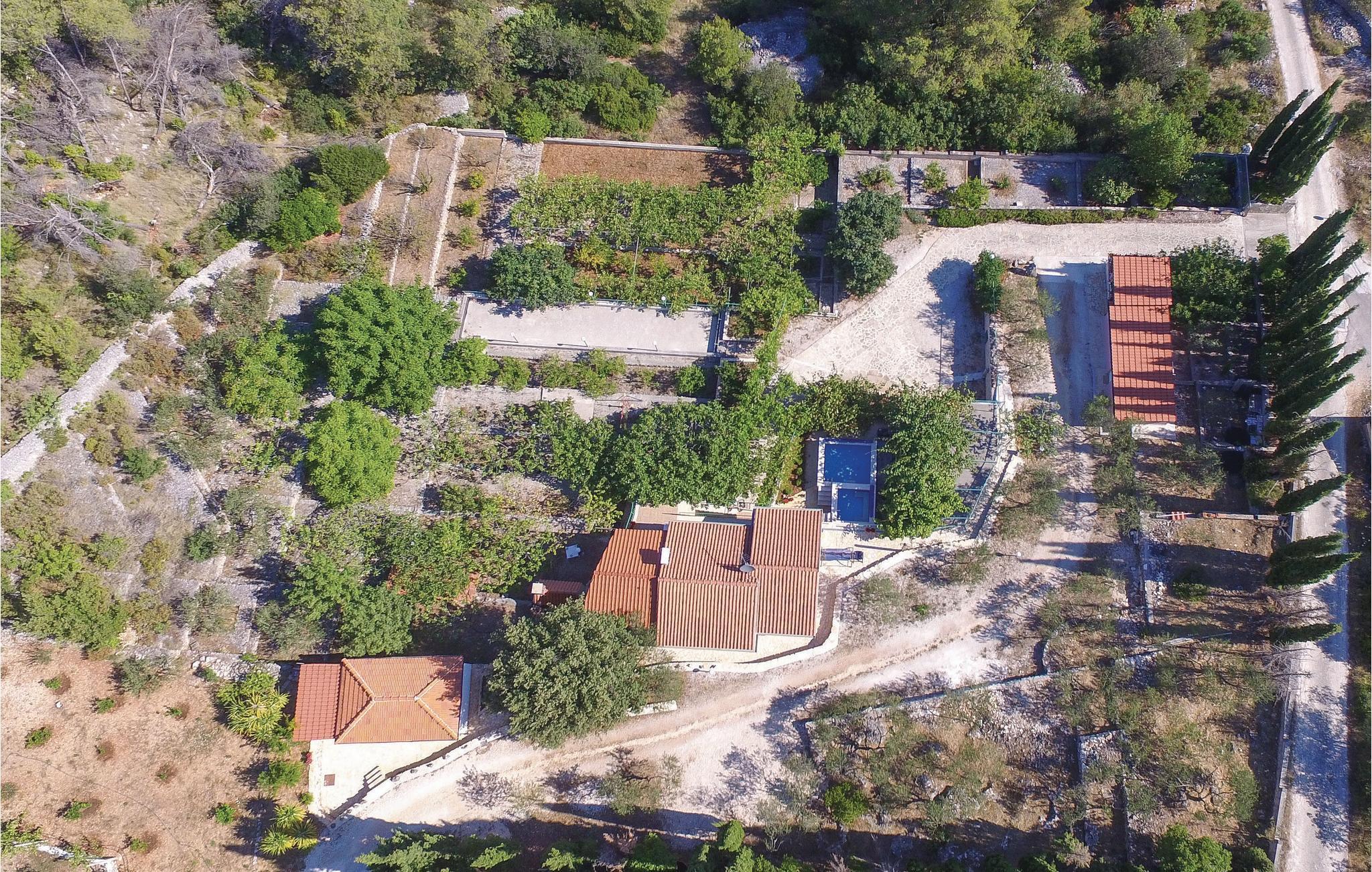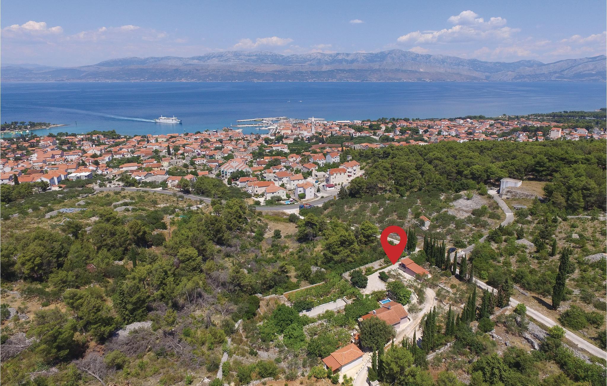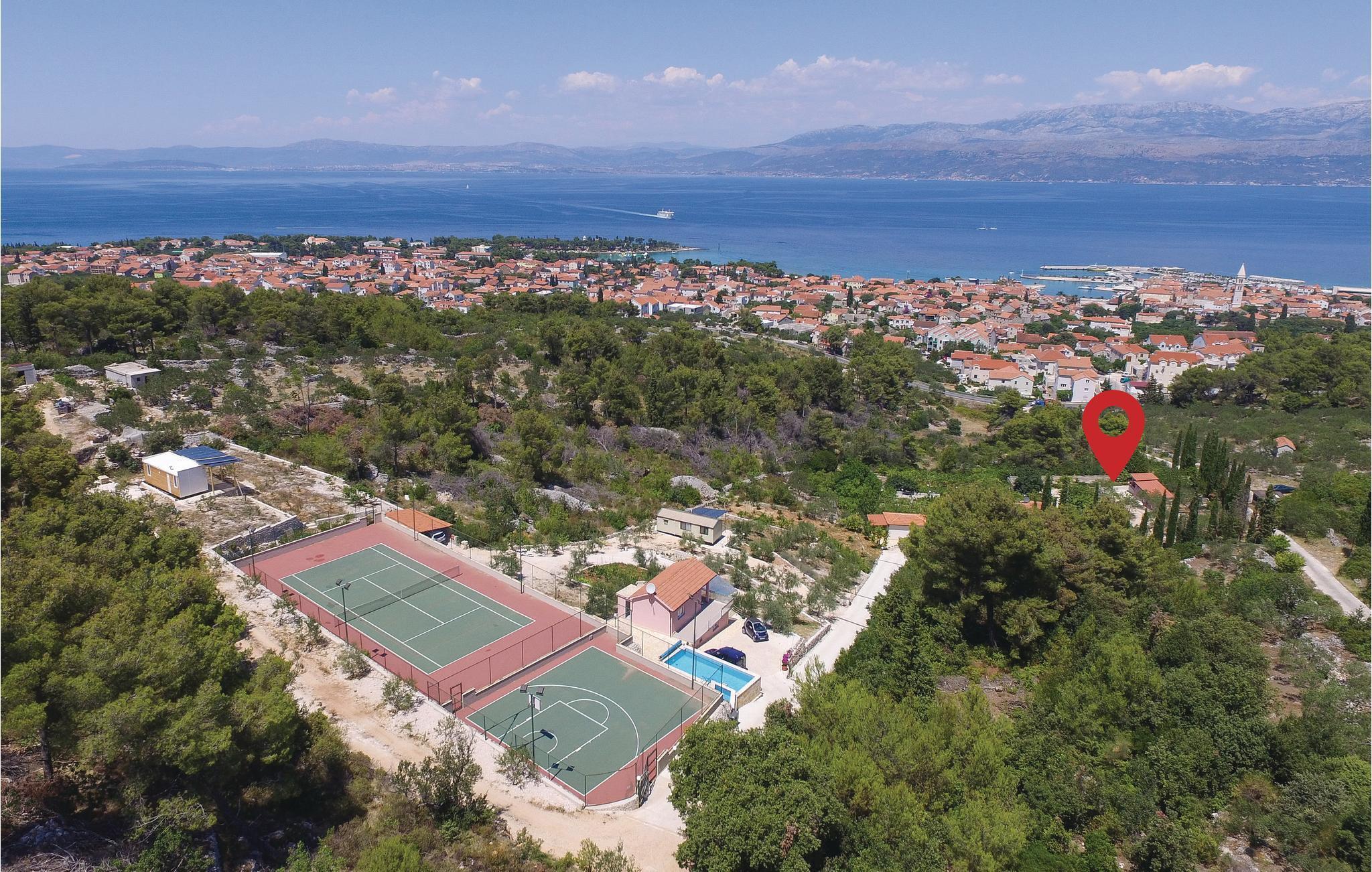 Dieses einzigartige Anwesen auf einem etwa 4000 m² geschlossenen Grundstück befindet sich in ruhiger Lage und ist von viel Grün umgeben. Gönnen Sie sich die perfekte Auszeit in diesem herrlichen Ensemble, welches maximal acht Personen Platz bietet und aus drei Wohneinheiten besteht. Während zwei Wohneinheiten über ein Schlafzimmer mit Miniküche, ein Badezimmer und eine Terrasse verfügen, besteht die dritte Wohneinheit aus zwei Schlafzimmern, einem Badezimmer, einer Küche mit Wohnzimmer und einer Terrasse. Auf dem Grundstück stehen Ihnen neben mehreren Terrassen auch ein Pool, ein Whirlpool, ein Grill sowie ein Bocciafeld zur Verfügung. Der 150 m entfernt gelegenen Tennis- und Basketballplatz kann direkt beim Eigentümer gemietet werden. Auf dem weitläufigen Anwesen gibt es einen Gemüsegarten und viele Obstbäume wie Feigen, Mandarinen und Zitronen. Baden Sie an den schönen Stränden im nahe gelegenen Ort Supetar und spazieren Sie durch das Stadtzentrum mit Hafen, Restaurants und weiteren wichtigen Einrichtungen.