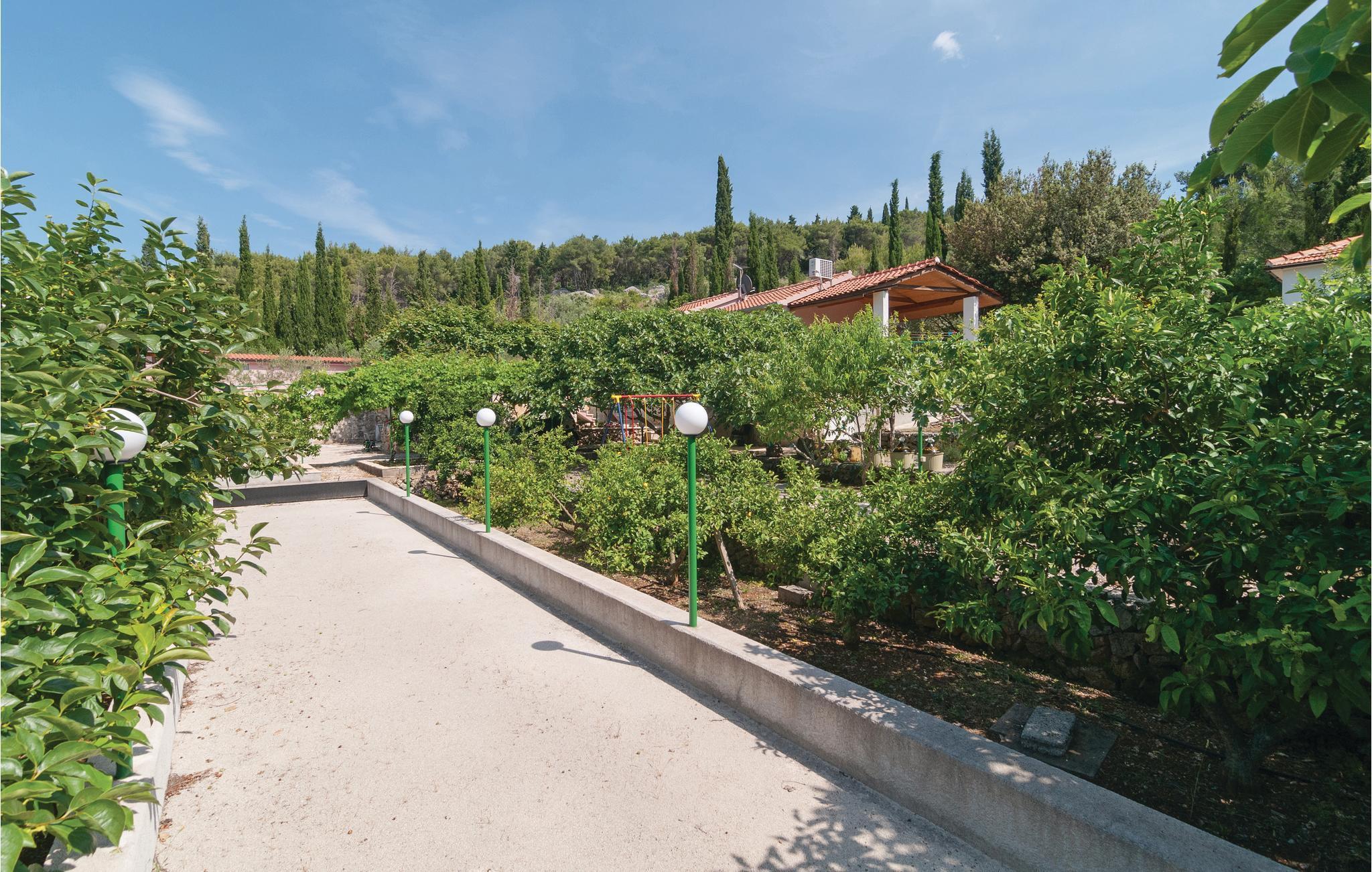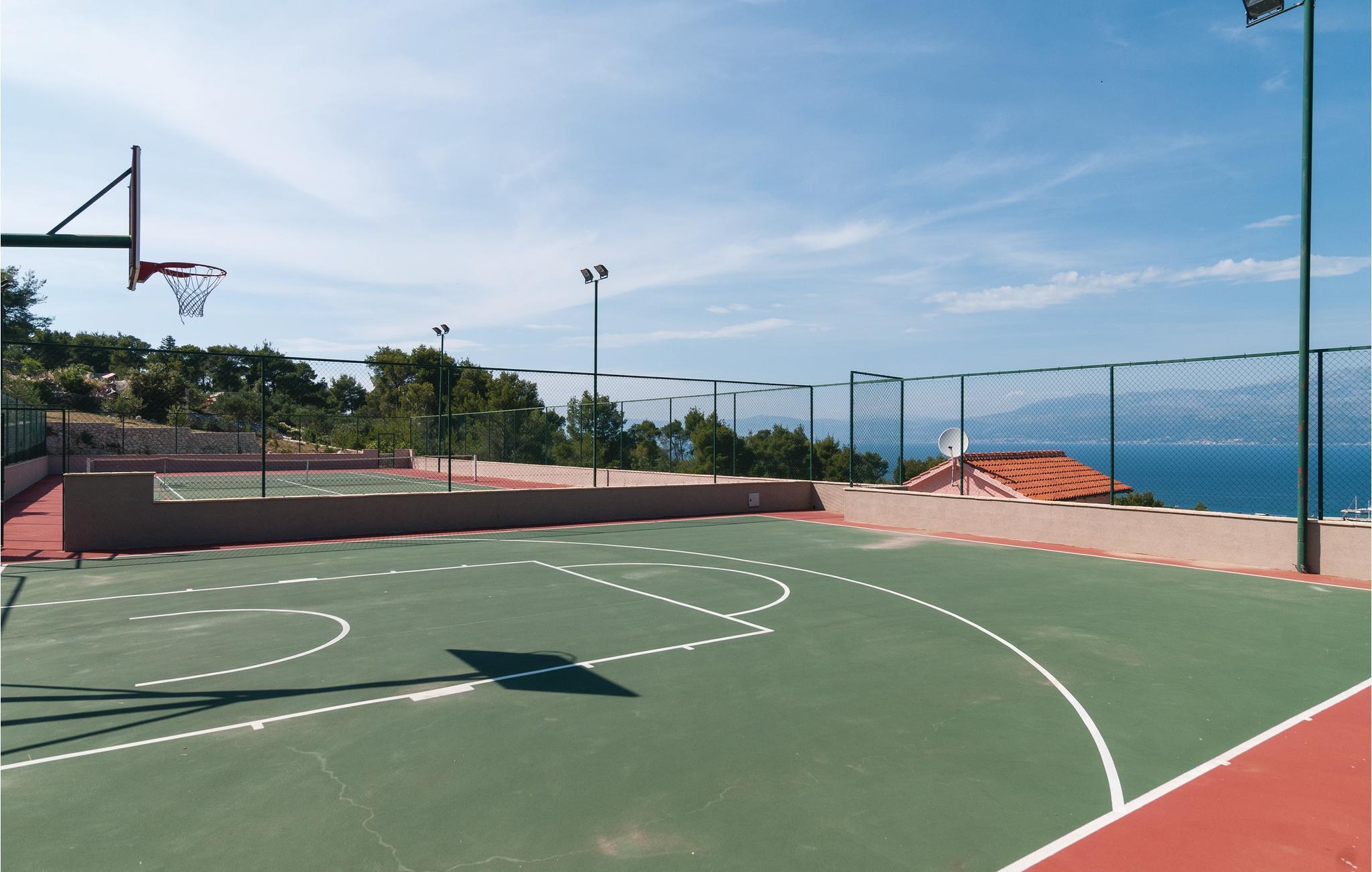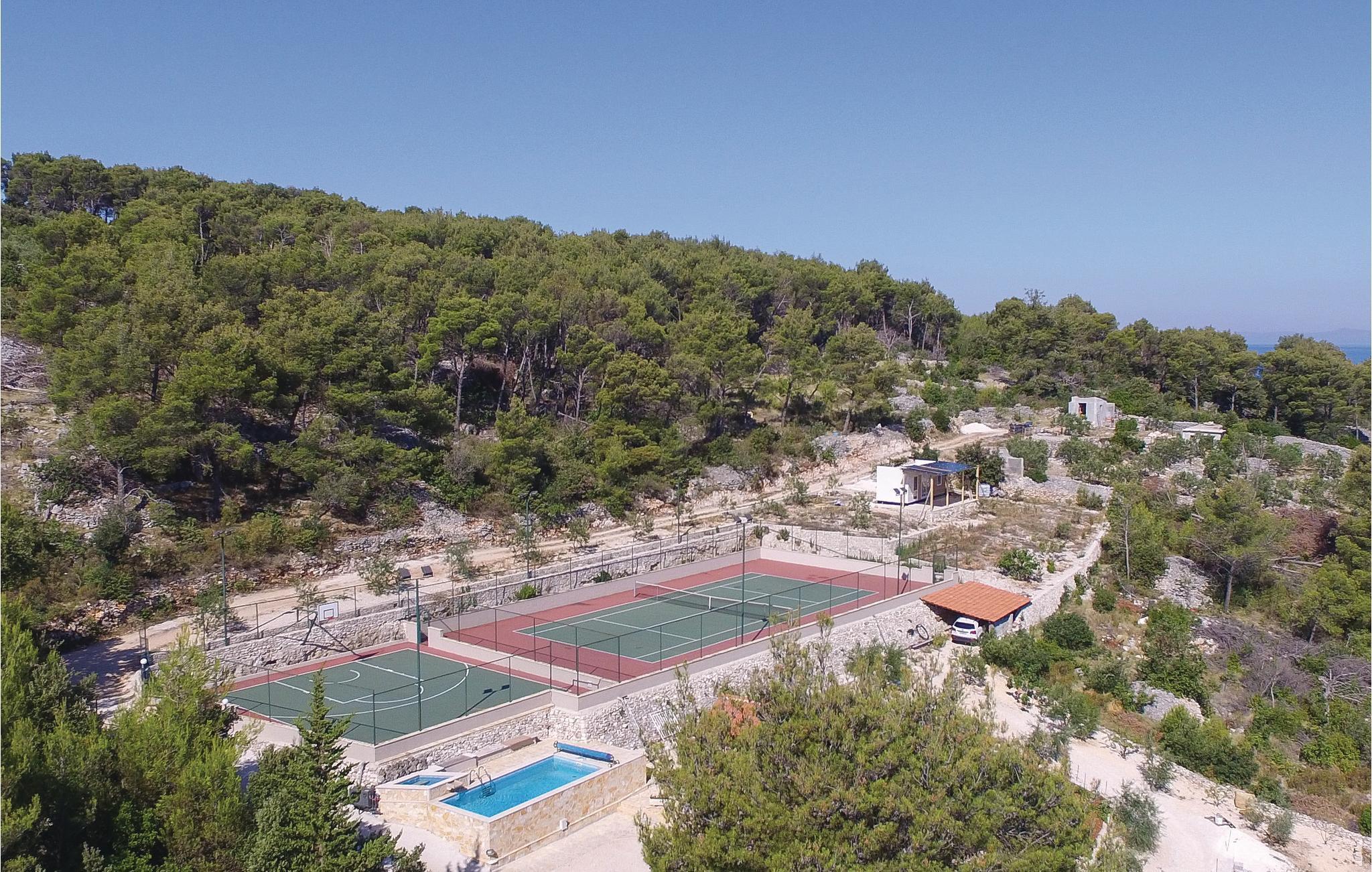 Dieses einzigartige Anwesen auf einem etwa 4000 m² geschlossenen Grundstück befindet sich in ruhiger Lage und ist von viel Grün umgeben. Gönnen Sie sich die perfekte Auszeit in diesem herrlichen Ensemble, welches maximal acht Personen Platz bietet und aus drei Wohneinheiten besteht. Während zwei Wohneinheiten über ein Schlafzimmer mit Miniküche, ein Badezimmer und eine Terrasse verfügen, besteht die dritte Wohneinheit aus zwei Schlafzimmern, einem Badezimmer, einer Küche mit Wohnzimmer und einer Terrasse. Auf dem Grundstück stehen Ihnen neben mehreren Terrassen auch ein Pool, ein Whirlpool, ein Grill sowie ein Bocciafeld zur Verfügung. Der 150 m entfernt gelegenen Tennis- und Basketballplatz kann direkt beim Eigentümer gemietet werden. Auf dem weitläufigen Anwesen gibt es einen Gemüsegarten und viele Obstbäume wie Feigen, Mandarinen und Zitronen. Baden Sie an den schönen Stränden im nahe gelegenen Ort Supetar und spazieren Sie durch das Stadtzentrum mit Hafen, Restaurants und weiteren wichtigen Einrichtungen.