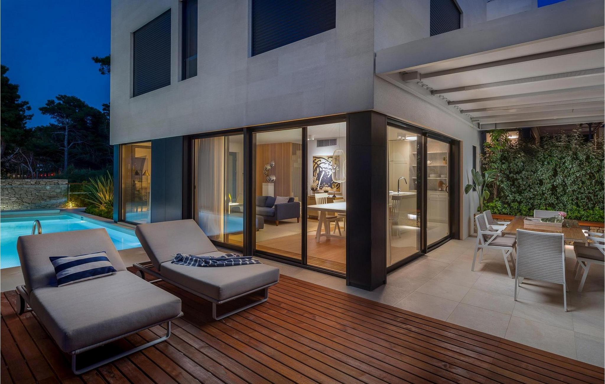 Erleben Sie einen unvergesslichen Strandurlaub in diesem modernen Ferienhaus mit privatem Pool und gemeinsamem Wellnessbereich.