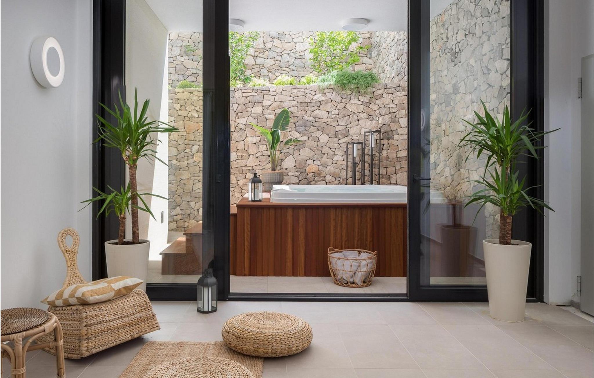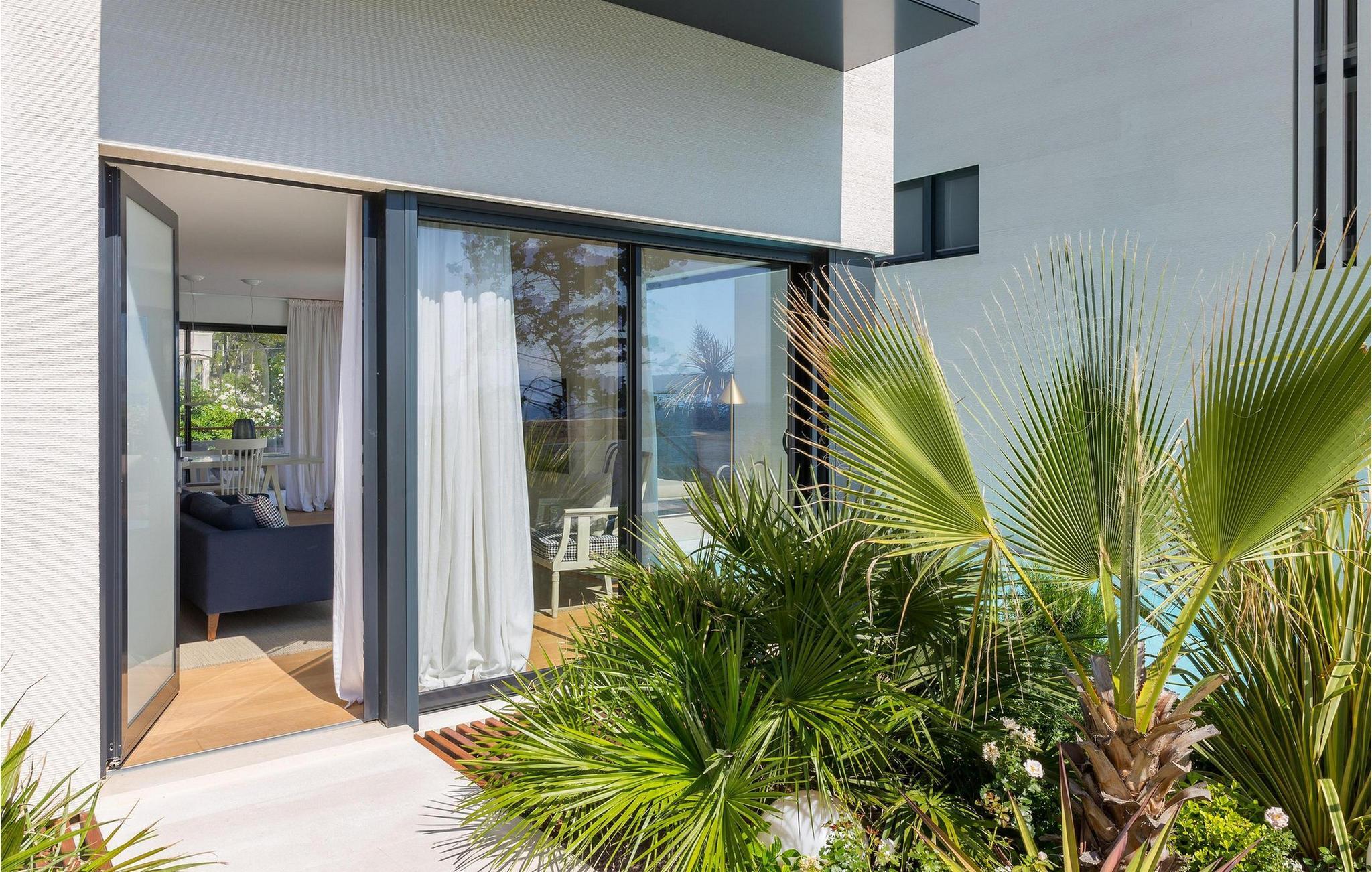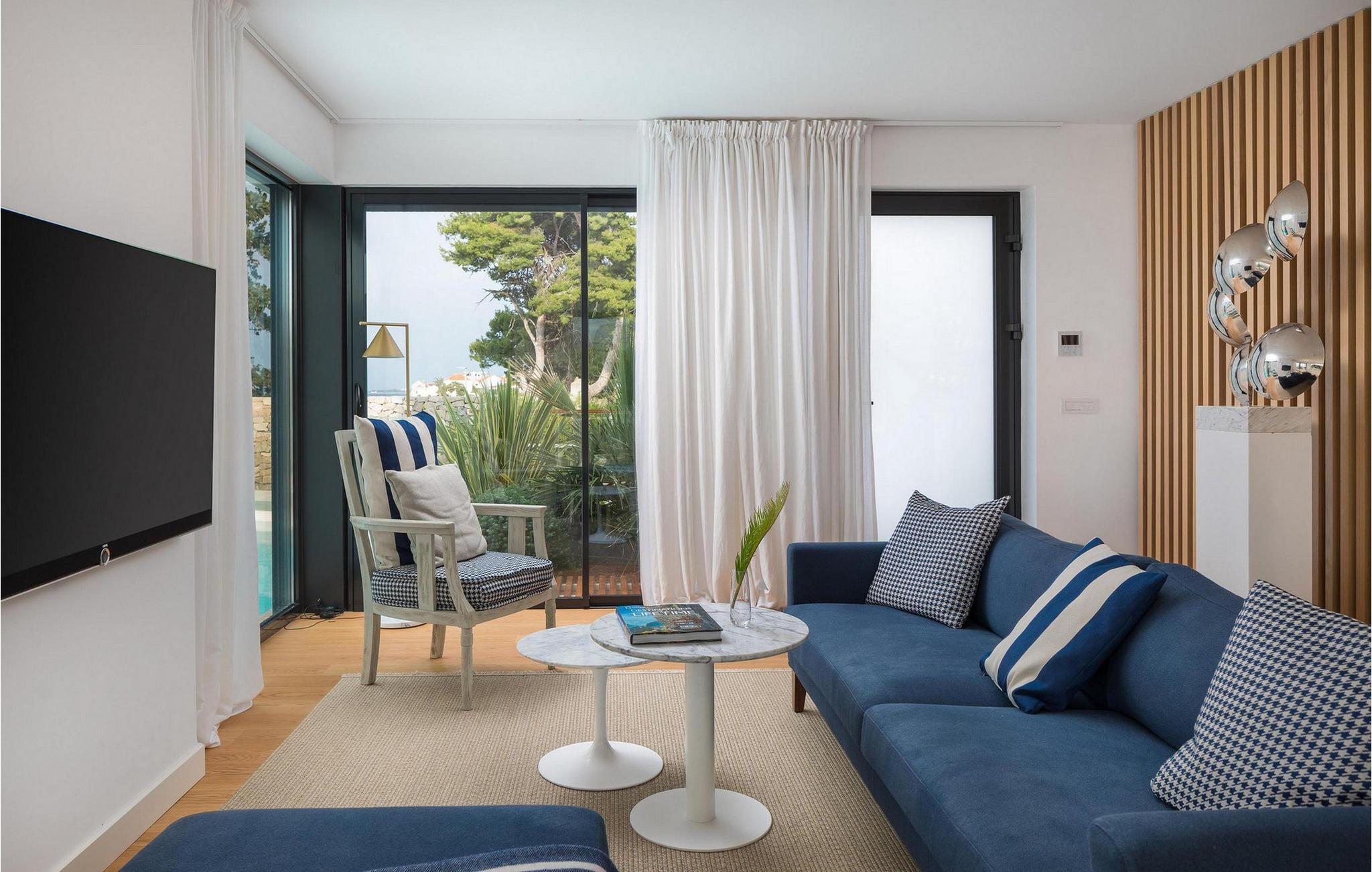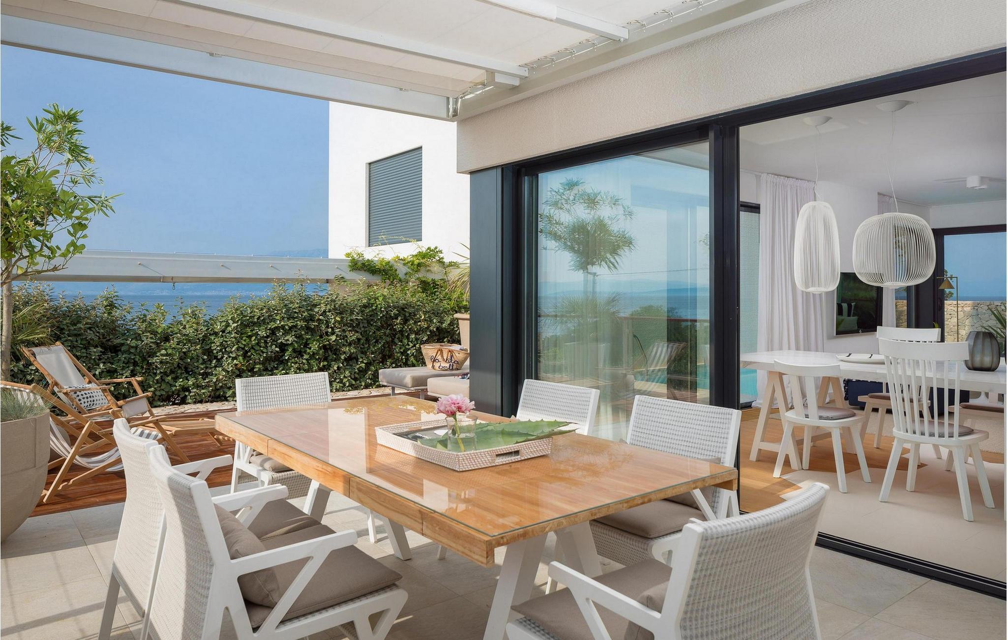 Die elegante Villa Aster 2 ist eine luxuriöse Ruheoase und begrüßt Sie in privilegierter Lage direkt am Meer. Das behagliche Interieur begeistert mit einer hochwertigen und geschmackvollen Einrichtung. Zaubern Sie köstliche Gerichte in der modern ausgestatteten Küche und genießen Sie die helle, luftige Atmosphäre bei entspannten Mahlzeiten. Vergnügen Sie sich mit Ihren Liebsten an der Nintendo Wii, nutzen Sie den Wellnessbereich mit Türkischem Bad, Whirlpool und Sauna, den Sie sich mit zwei ähnlichen Luxusvillen teilen, und machen Sie es sich nach einem langen Tag an der Sonne auf dem gemütlichen Sofa im charmanten Wohnzimmer bequem.