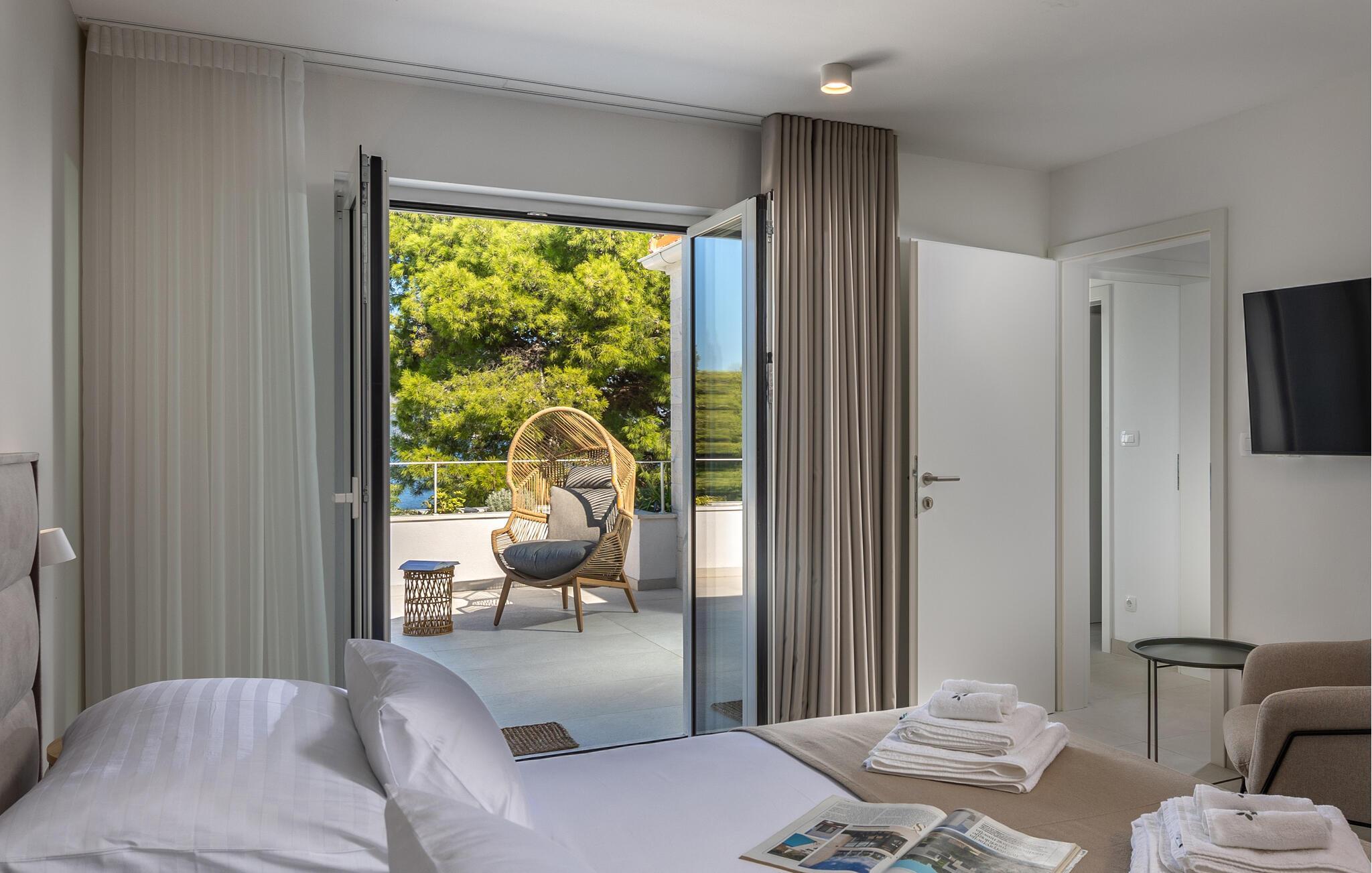 Besuchen Sie den nahe gelegenen Strand Lovrecina, bekannt für seinen feinen Sand und das kristallklare, türkisfarbene Wasser. Für Wanderliebhaber gibt es zahlreiche Wanderwege, die durch Olivenhaine und entlang der Küste führen. Entdecken Sie die Altstadt von Splitska mit ihren traditionellen Steinhäusern und gemütlichen Cafés.