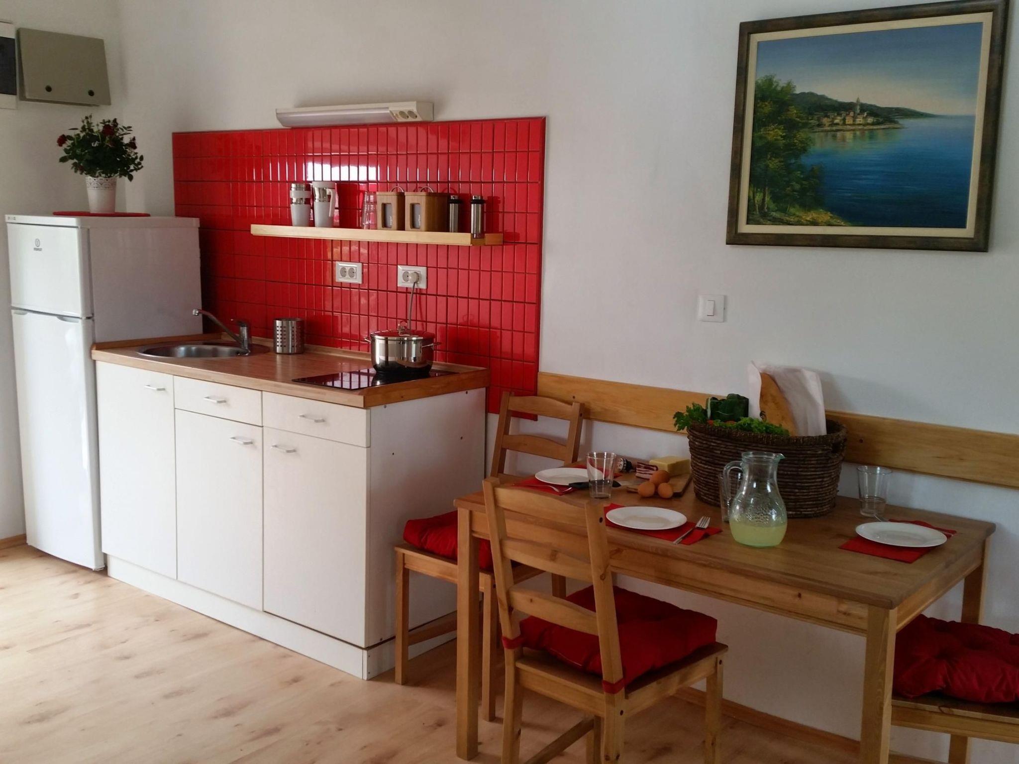 Die Renovierung des 50 m² großen Hauses wurde im "Einvolumenstil" durchgeführt, um es möglichst groß, modern und gemütlich zu gestalten. Im Prinzip handelt es sich um einen großen Raum mit Galerie. Auf der Galerie befindet sich das Doppelbett. Die Maße des Betts auf der Empore sind 200 x 160cm. Unten befindet sich ein relativ großes Badezimmer mit Dusche, Waschbecken, WC und Waschmaschine. Im Wohnbereich integriert gibt es eine Kochnische mit vielen Küchengeräten (Kühlschrank, Mikrowelle, Toaster, Kaffeemaschine…), kompletten Geschirr sowie Speisetisch und Stühlen. Im Wohnbereich befindet sich noch ein ausziehbares Doppelbett (ebenfalls 200 x 160cm) und, wenn notwendig, kann auch noch ein Hilfsbett zur Verfügung gestellt werden. Das Haus ist aber am besten für eine Familie oder eine kleinere Gesellschaft (ca. vier Gäste, eventuell fünf) geeignet.
