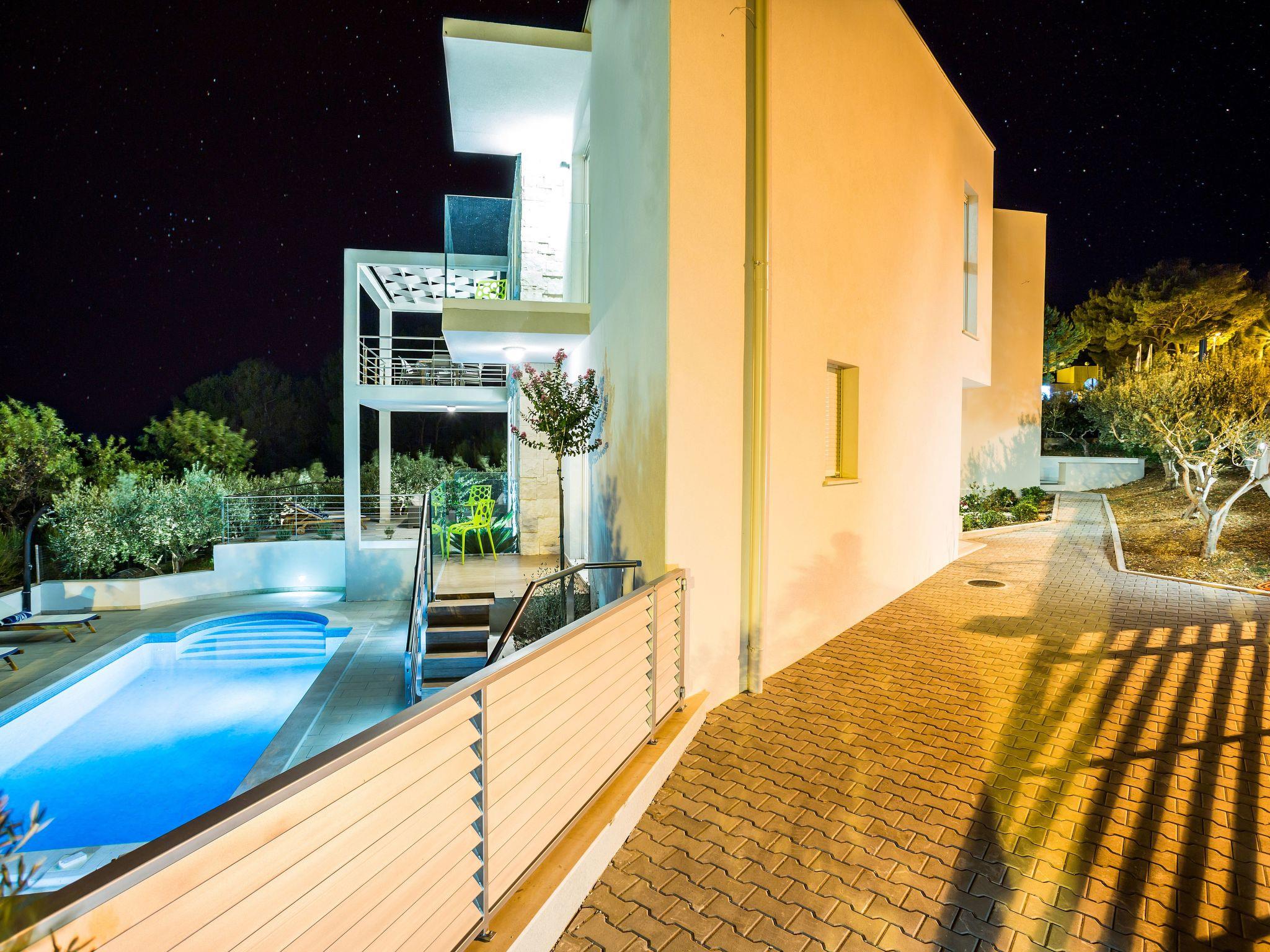 Entdecken Sie das ultimative Urlaubserlebnis in der ruhigen Stadt Bol, Dalmatien. Dieses freistehende Ferienhaus ist ideal für Familien oder Gruppen von Freunden. Es bietet Platz für bis zu 12 Gäste in sechs Schlafzimmern und gewährleistet Privatsphäre und Komfort für jeden Gast. Es zeichnet sich durch einen atemberaubenden Meerblick aus, der durch eine Reihe von Annehmlichkeiten ergänzt wird, die für einen unvergesslichen Aufenthalt sorgen. Von einem beheizten Pool bis hin zu modernem Komfort - jedes Detail wurde sorgfältig bedacht, um Ihren Urlaub zu verschönern.