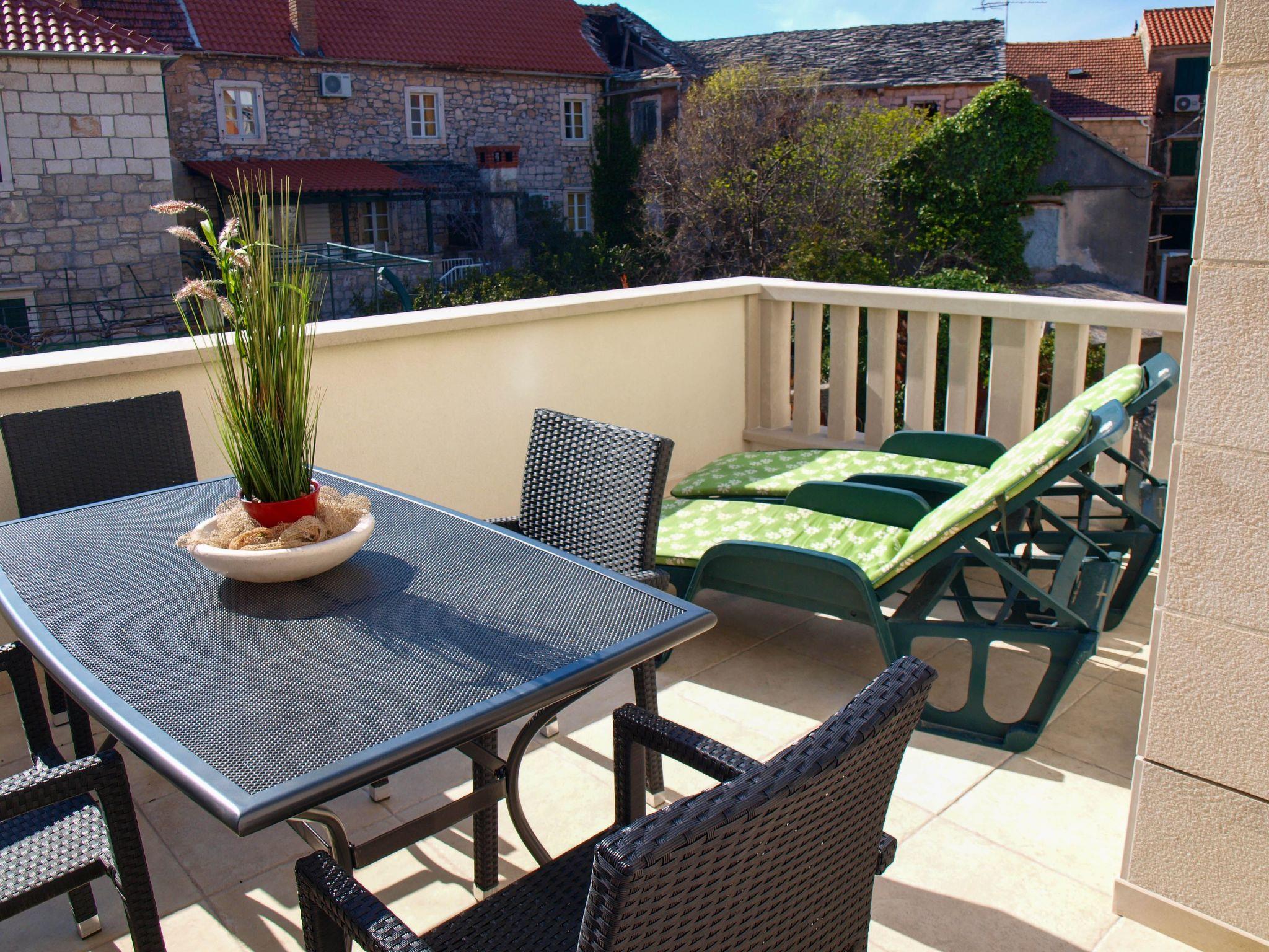 Der Außenbereich des Apartments besticht durch eine schöne Terrasse mit Blick auf die belebten Straßen von Postira. Sie ist der ideale Ort für einen Morgenkaffee oder einen entspannten Abend. Außerdem sind Sie nur wenige Schritte vom Strand entfernt, sodass Sie bequem im Blau des Meeres eintauchen oder die zahlreichen Wassersportmöglichkeiten in der Nähe nutzen können.