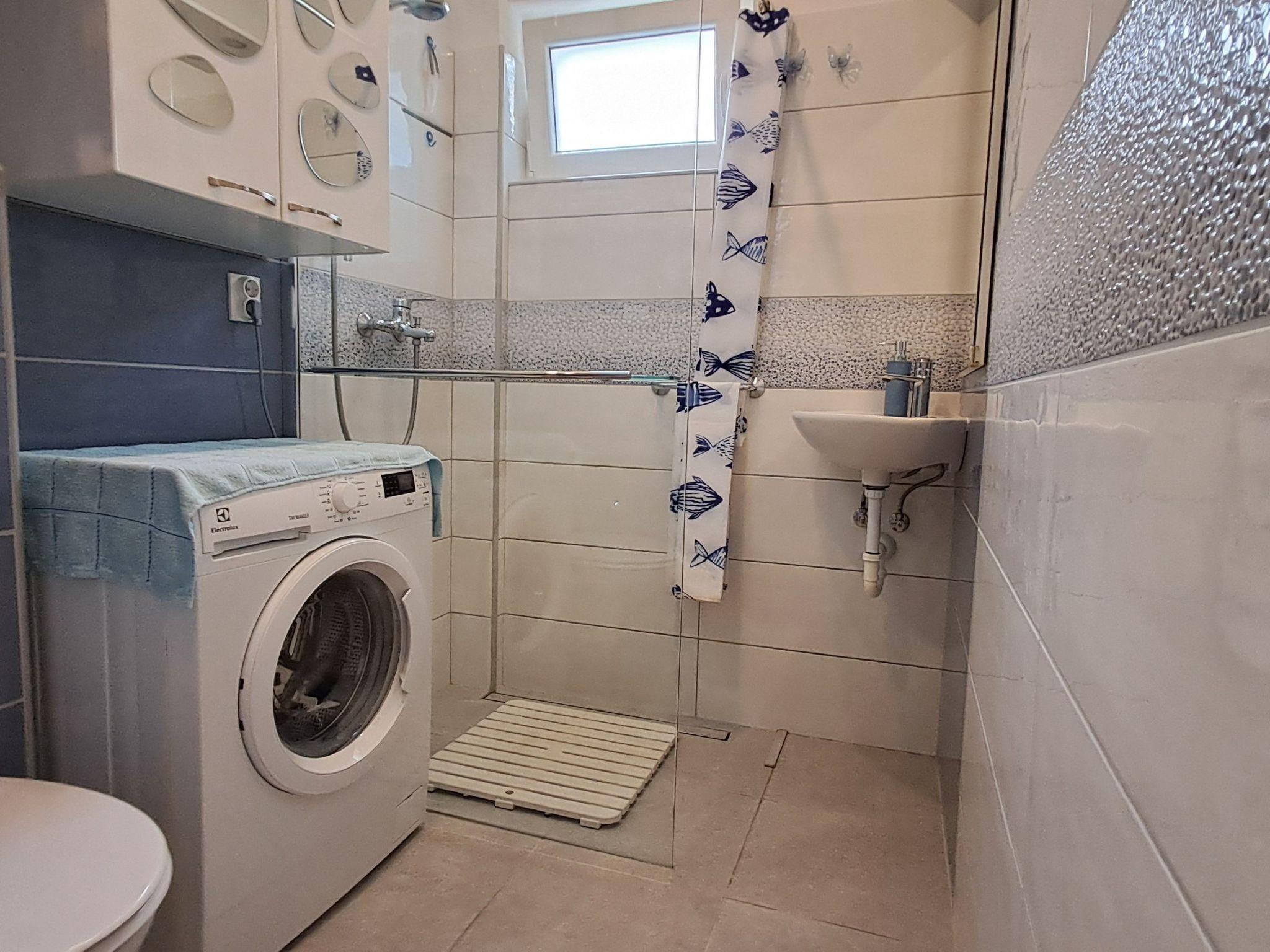 Das Meer ist nur 20 Meter von der Wohnung entfernt. Entlang der Küste haben Sie eine Menge von Stein- und Kiesstränden zur Auswahl, an denen Sie schwimmen, sich sonnen oder vielleicht das örtliche Wasserspiel Picigin spielen können. Bis zum nächsten Strand sind es nur 30 Meter. Wenn Sie Sandstrände mögen, sollten Sie an den Strand Prja gehen, der nur 100 Meter entfernt ist. Die Entfernung zum nächsten Lebensmittelgeschäft beträgt circa 300 Meter.