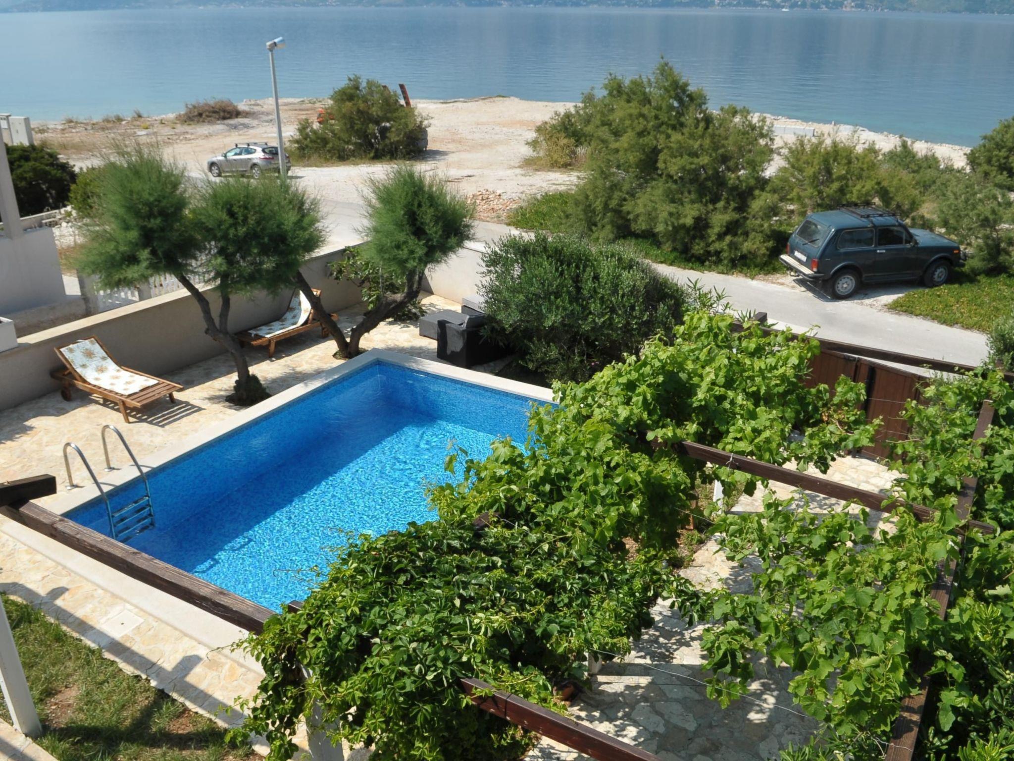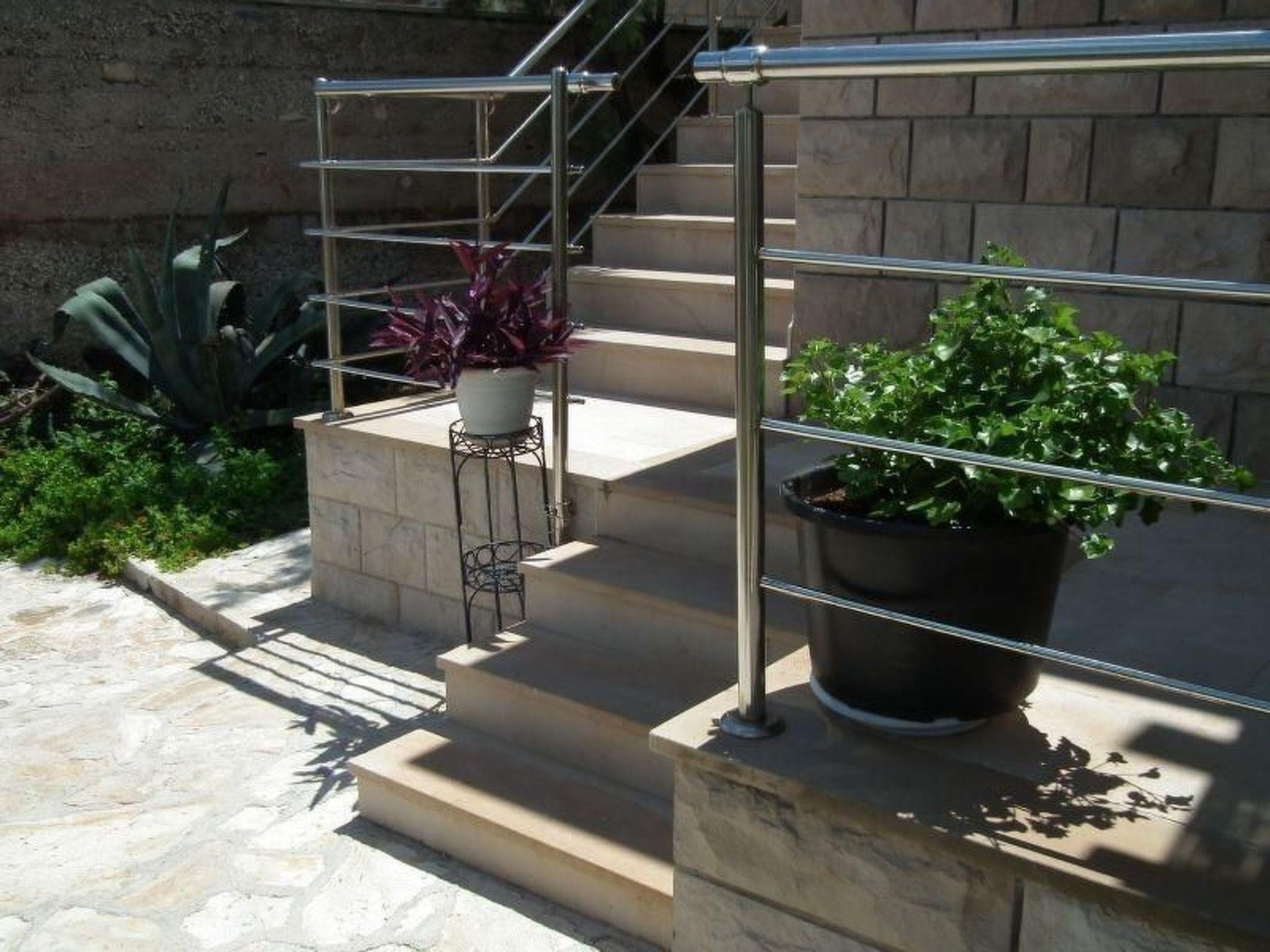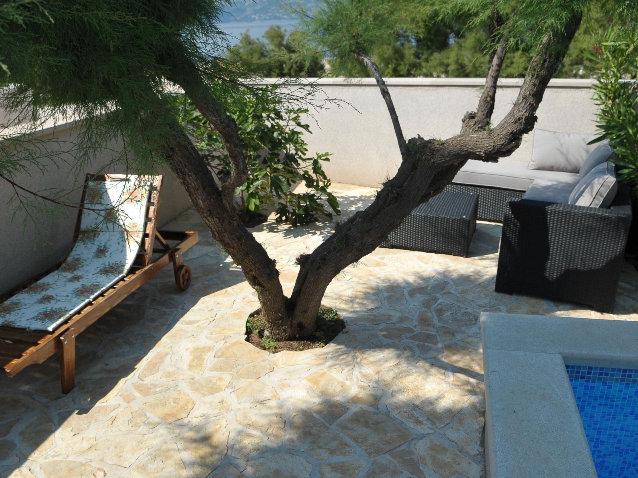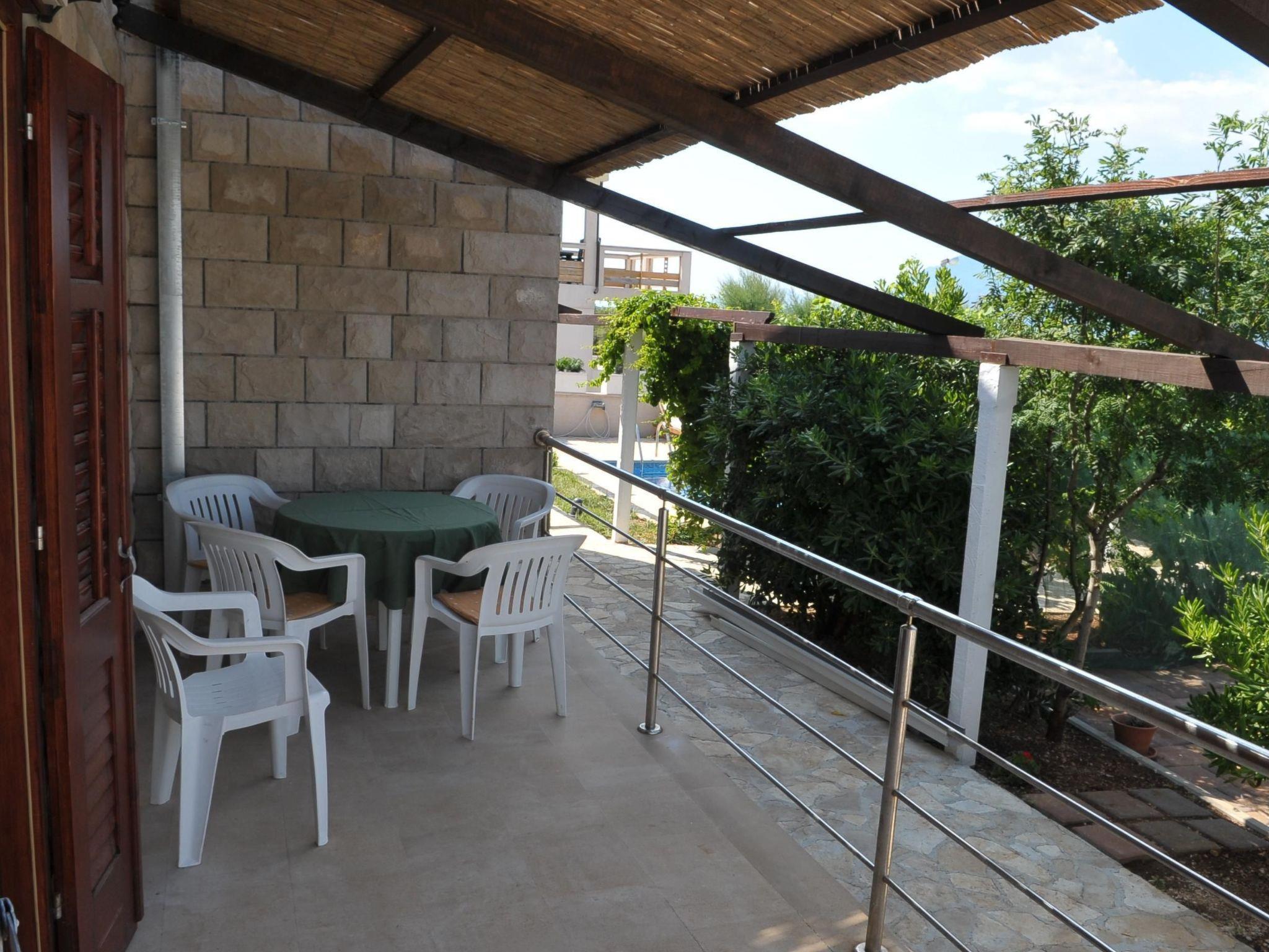 Sowohl im Erdgeschoss als auch im ersten Stock gibt es einen Balkon mit schönem Blick auf das Meer. Auf dem Balkon im ersten Stock (25 m²) können Sie Ihre Mahlzeiten genießen und dabei die schöne Aussicht auf das Meer genießen. Die Balkone sind mit Gartenmöbeln, Sonnenschirmen und Liegestühlen ausgestattet. Vor dem Haus befindet sich ein großer Garten mit einem privaten Pool (25m²) und einer Außendusche, die nachts beleuchtet werden kann. Hinter dem Haus sind Weinreben gepflanzt. Das Grundstück ist eingezäunt und für Kinder und Haustiere geeignet. Fünf Parkplätze sind vorhanden.