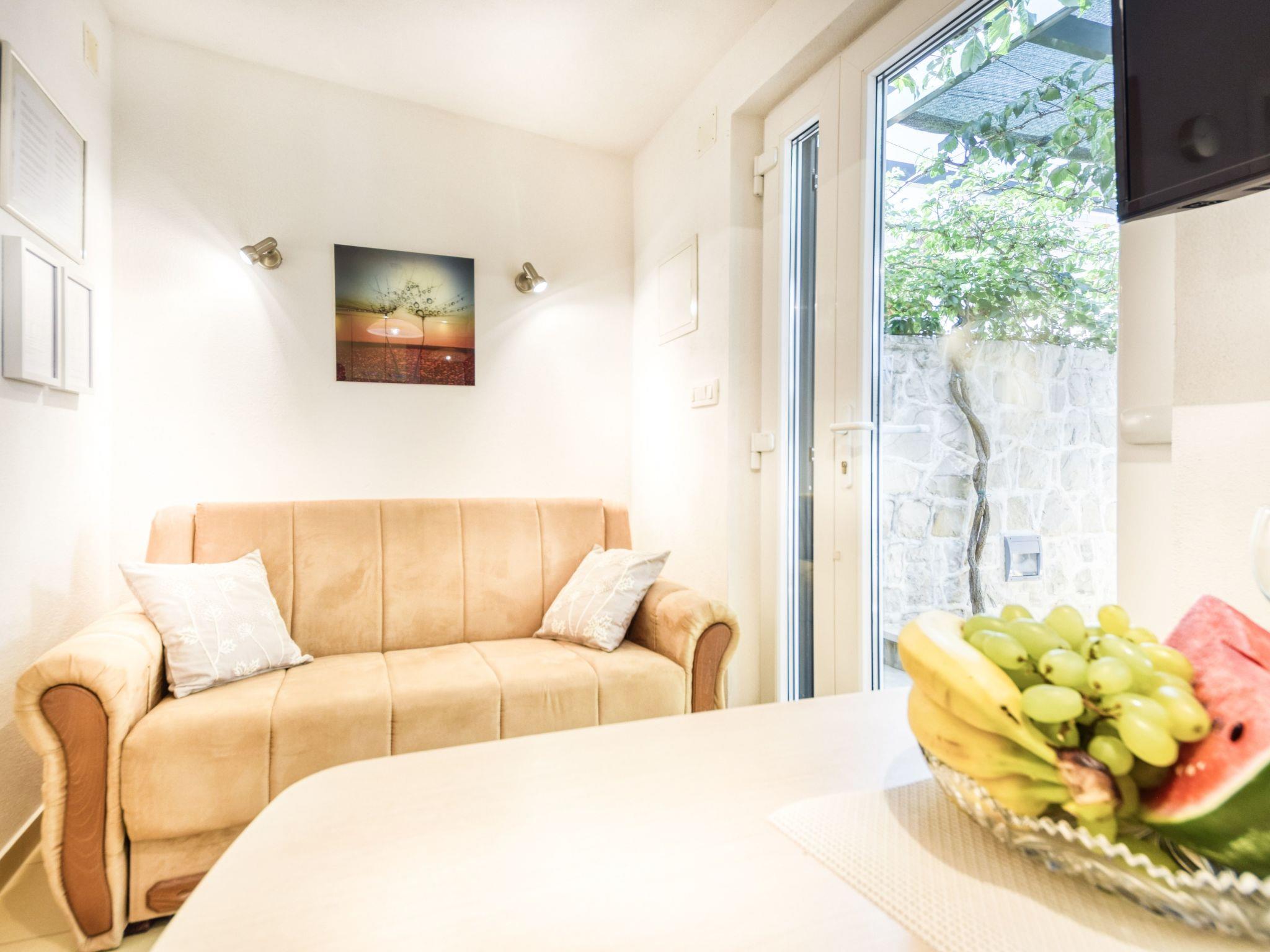 Die dritte Person oder zwei Kinder schlafen auf der Couch im Wohnzimmer. Die Couch in jedem der Apartments kann in ein geräumiges Bett umgewandelt werden. 1,90m x 1,20m.