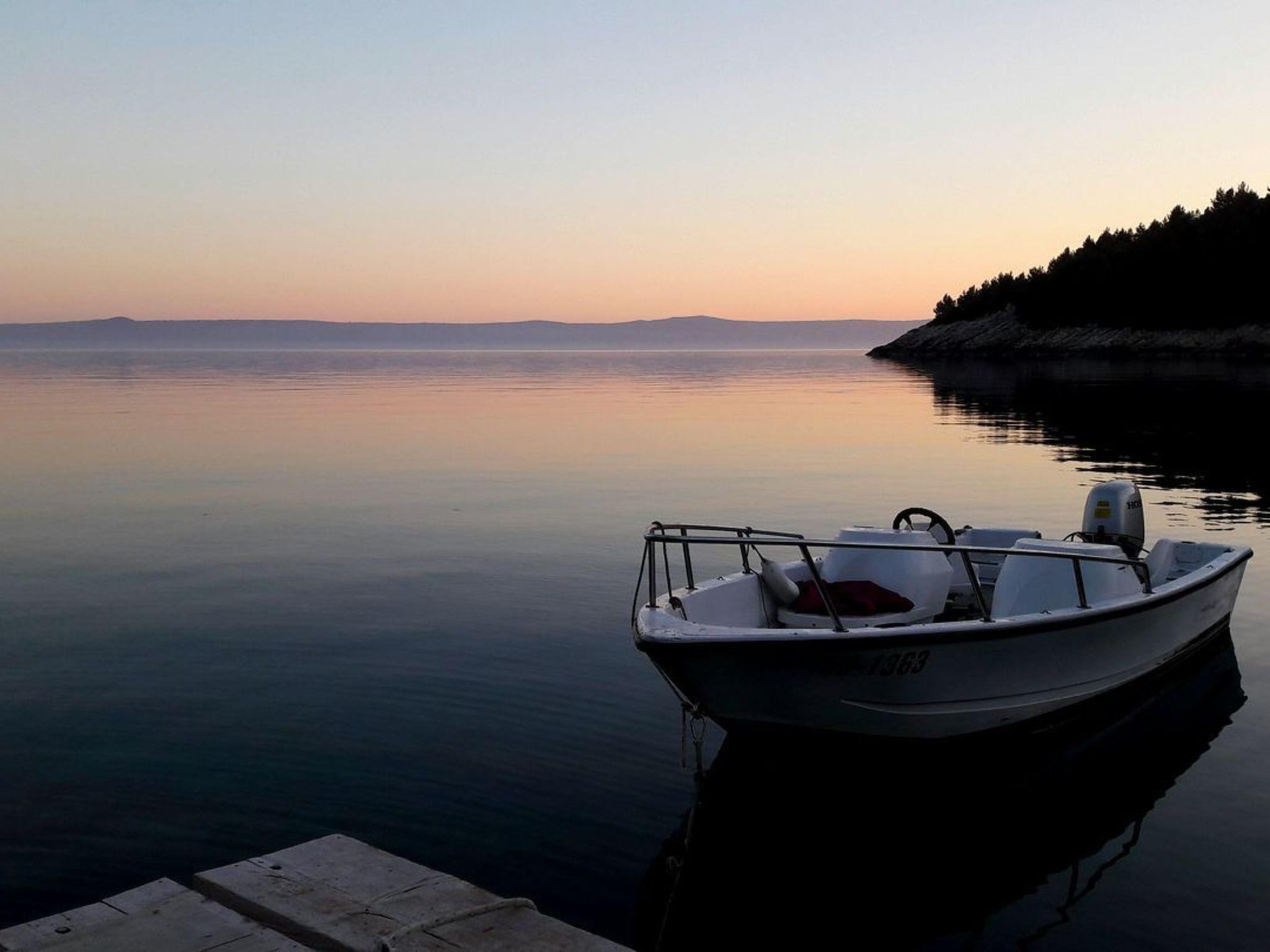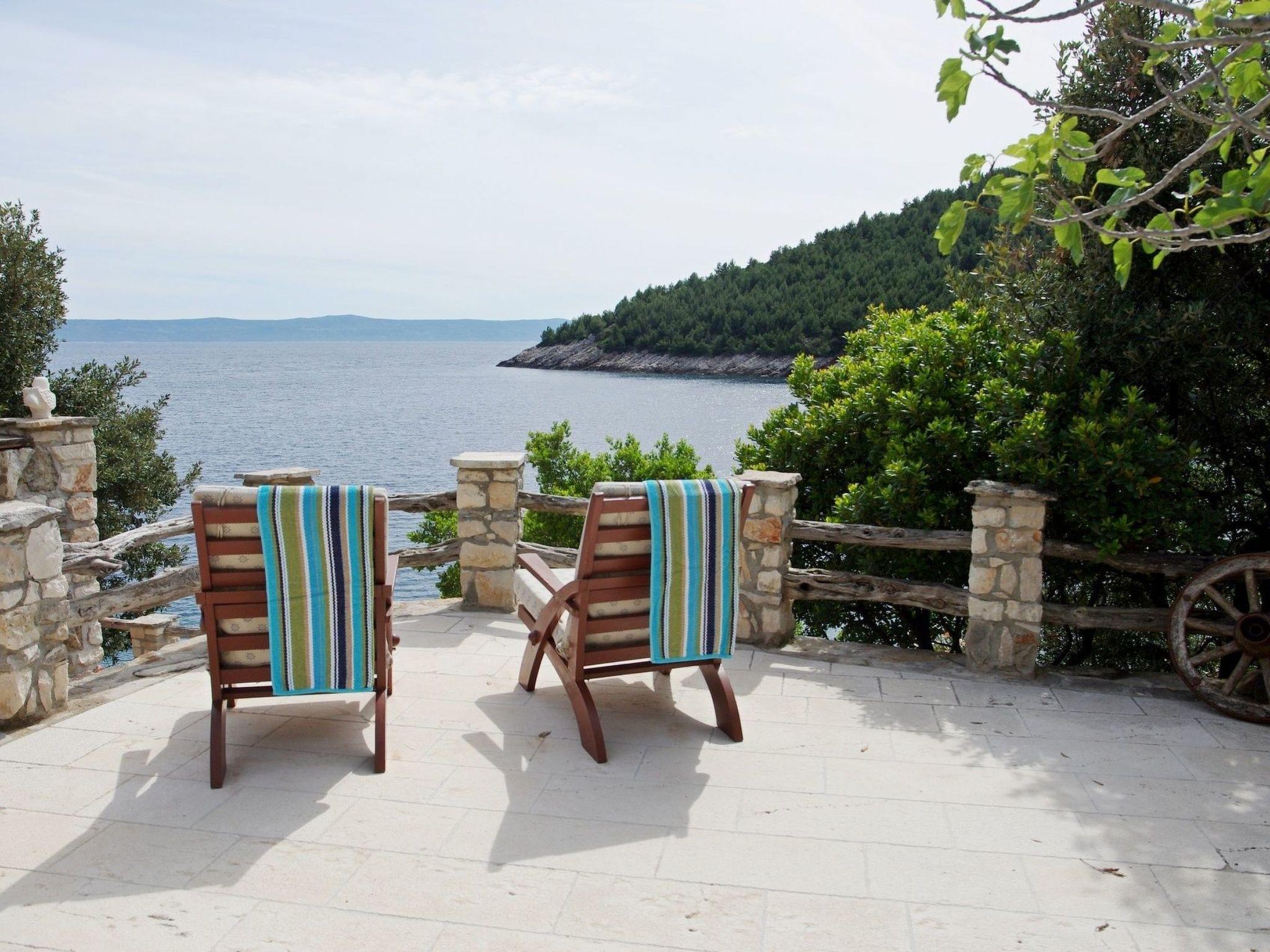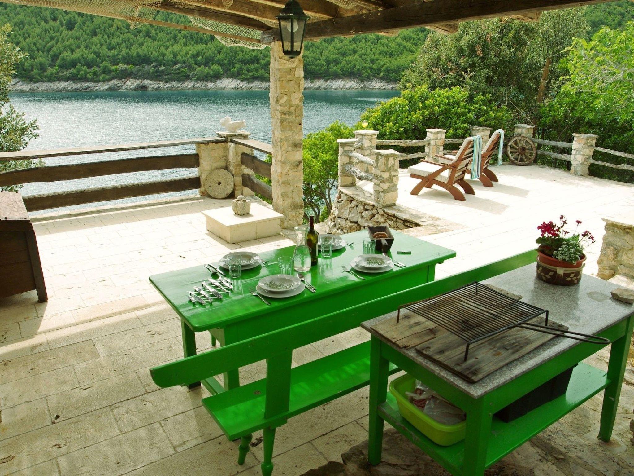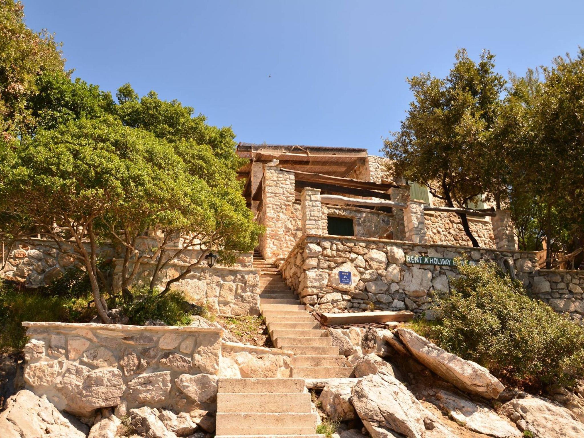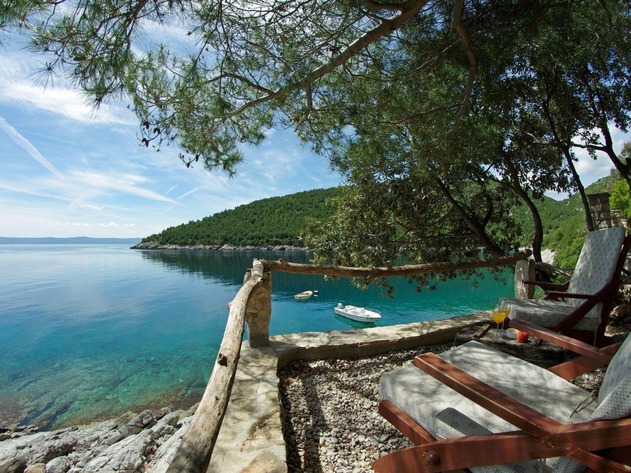 Dieses freistehende Einfamilienhaus aus Naturstein liegt in Alleinlage auf der Insel Brac in einer Bucht in zehn Metern Entfernung vom Meer mit eigener Mole und Badeholzsteg. Es ist nur mit dem Boot erreichbar. Mit dem Schnellboot bringen die Vermieter die Gäste bei der Anreise in zehn Minuten zur Unterkunft und holen sie am Abreisetag wieder ab.