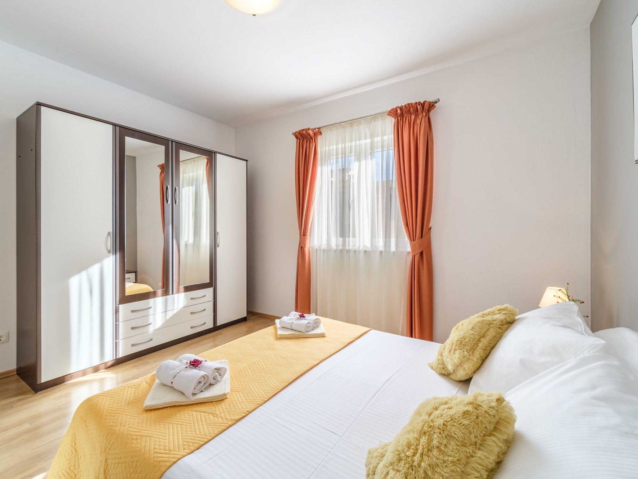 In dem Gebäude befinden sich insgesamt fünf Ferienwohnungen. Diese Wohnung befindet sich im Erdgeschoss. Sie verfügt über 42 m² Wohnfläche: ein Schlafzimmer mit Doppelbett, zwei Einzelbetten im zweiten Schlafzimmer und ein Schlafsofa im Wohnzimmer; Wohnzimmer mit voll ausgestatteter Küche und Esszimmer, Bad mit WC. Es besteht die Möglichkeit, ein Babybett zu benutzen. Die Wohnung verfügt über WiFi-Internet, Klimaanlage, Satellitenfernsehen, Waschmaschine usw.