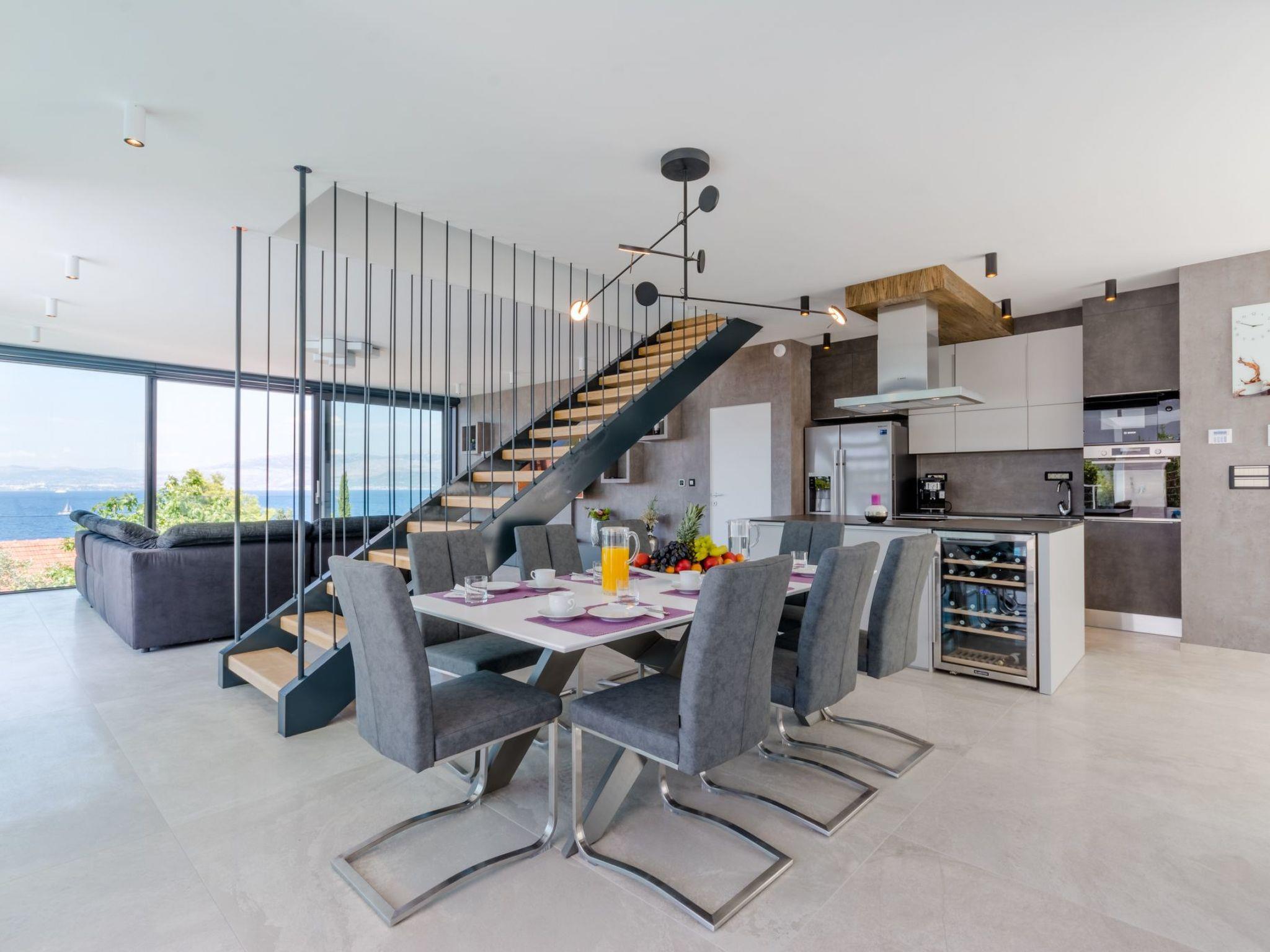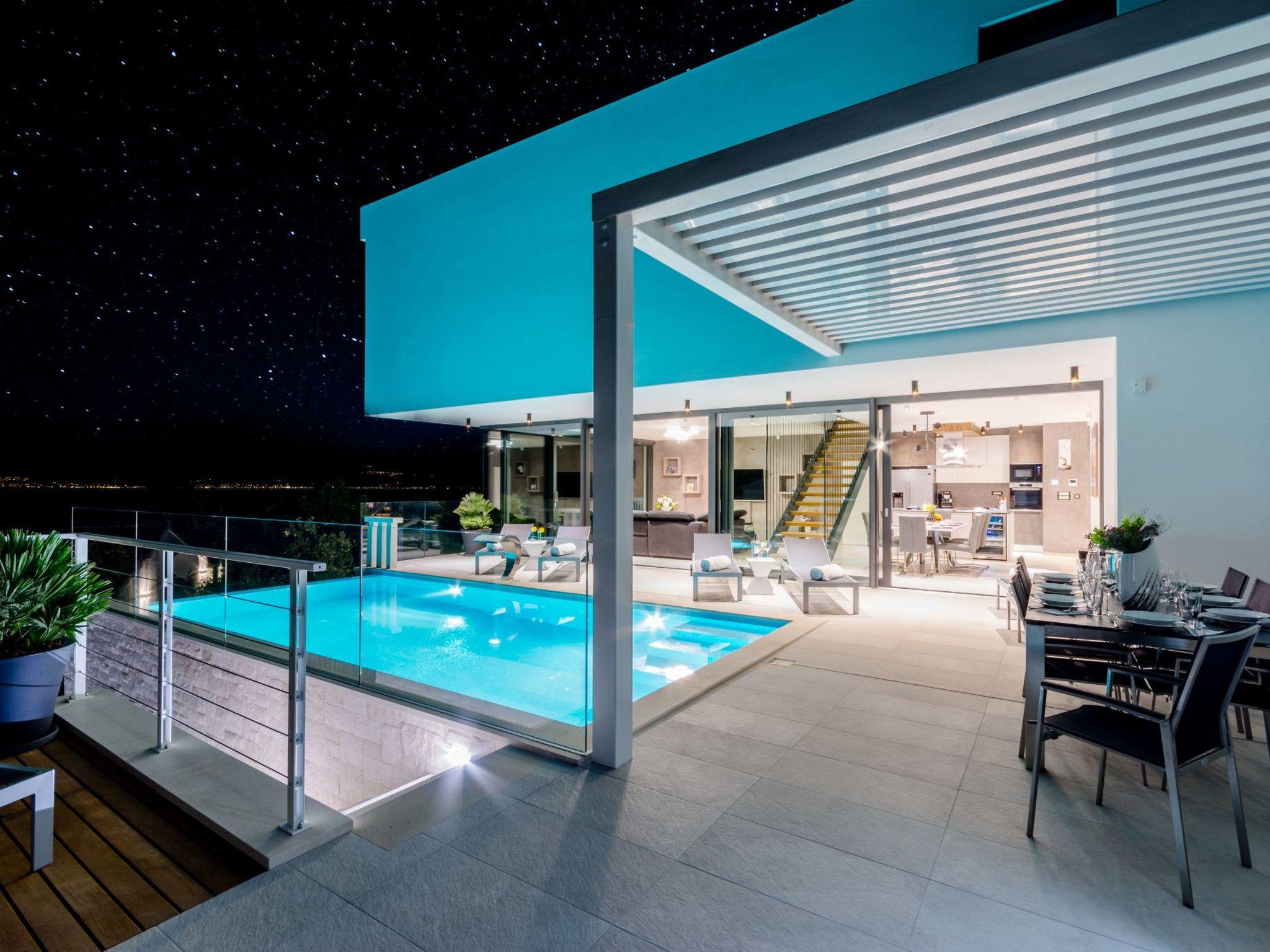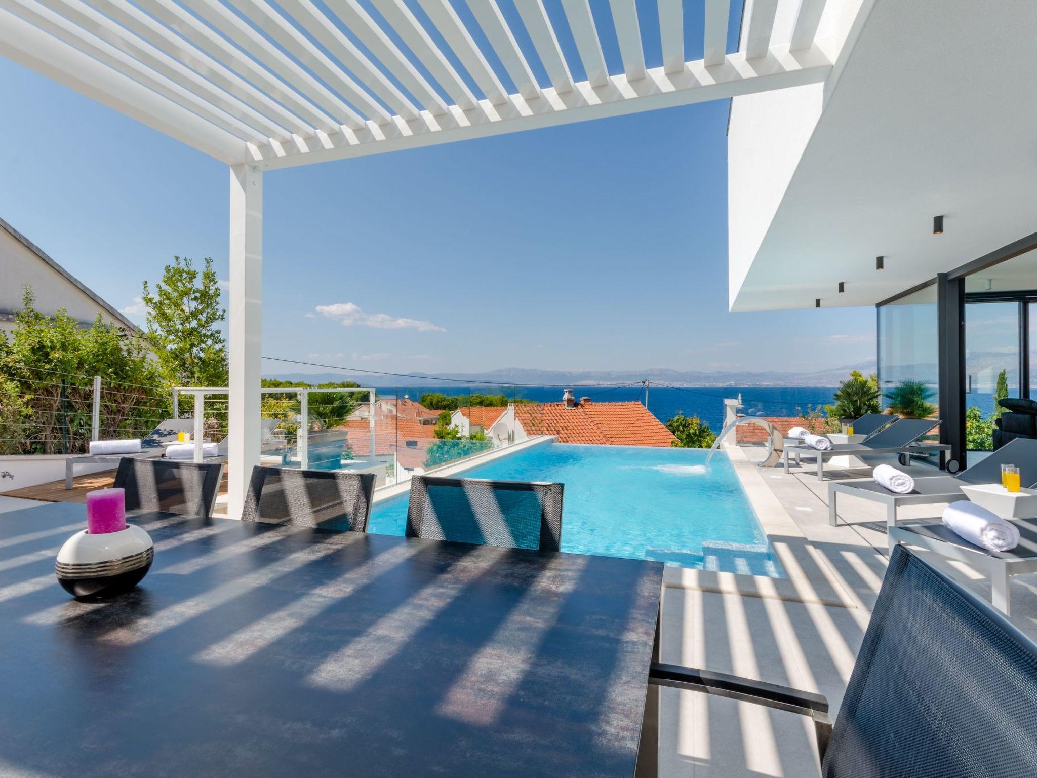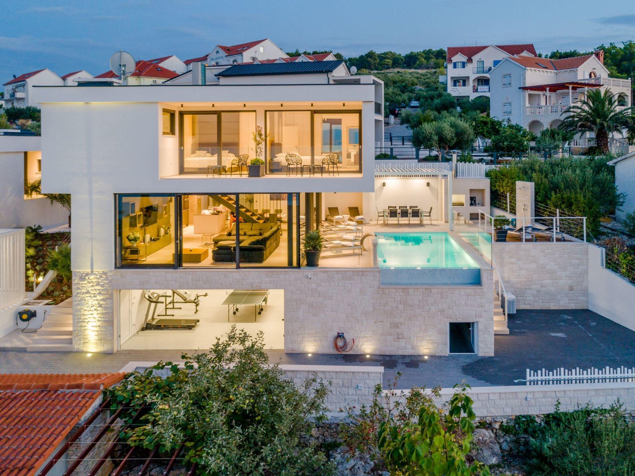 Das Anwesen mit direktem Blick auf die Adriaküste wurde 2018 nach den neuesten Standards errichtet und vereinigt modernste Architektur mit mondänem Luxus. Beobachten Sie den nächtlichen Sternenhimmel vom endlos wirkenden Infinity-Pool aus, oder genießen Sie den Sonnenaufgang bei einem gediegenen Frühstück auf der weitläufigen Terrasse. Das stilvoll eingerichtete Domizil verfügt auf seinen 300 m² über ein Fitnessstudio, sowie eine Tichtennis-Platte. Die drei erstklassig ausgetatteten Schlafzimmer mit eigenen Bädern und Kingsize Betten laden Sie zum Träumen ein. Kostenloses Highspeed W-LAN, sowie LED smart Flat-TVs in allen Schlafzimmern und dem Wohnzimmer stehen Ihnen selbstverständlich ebenfalls zur Verfügung.
