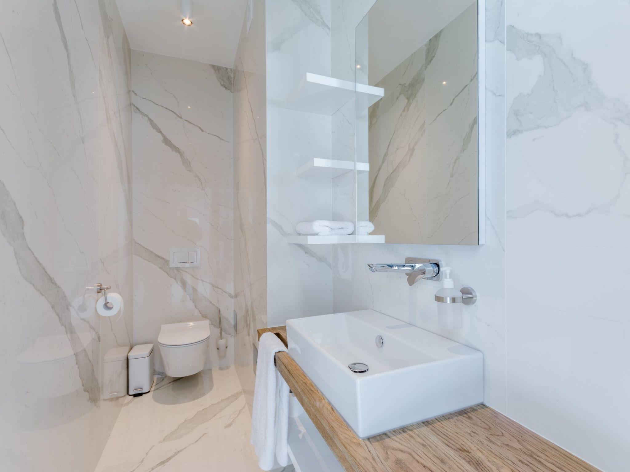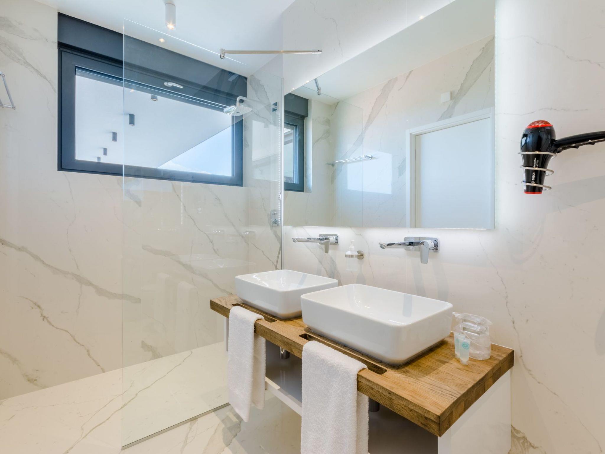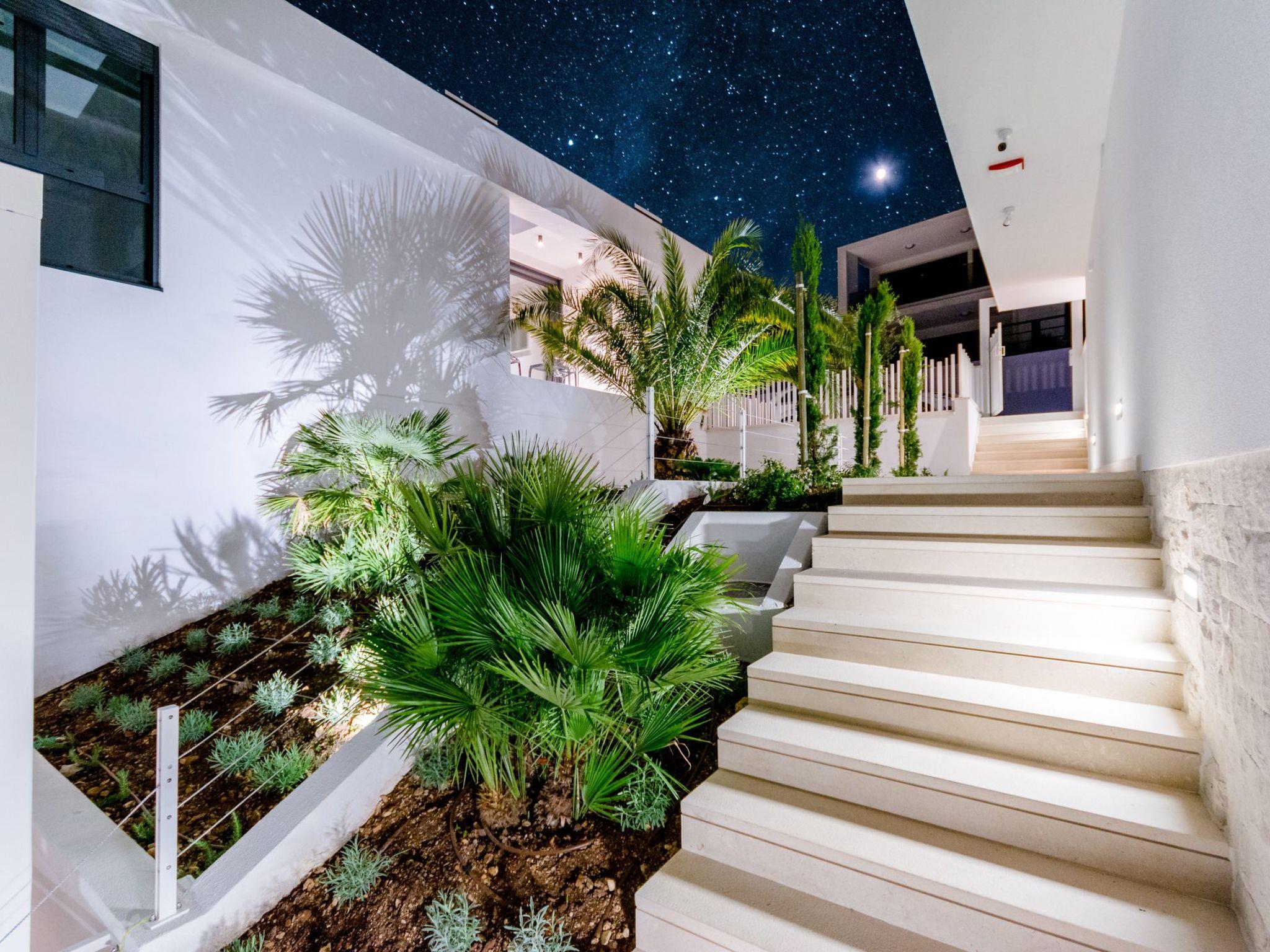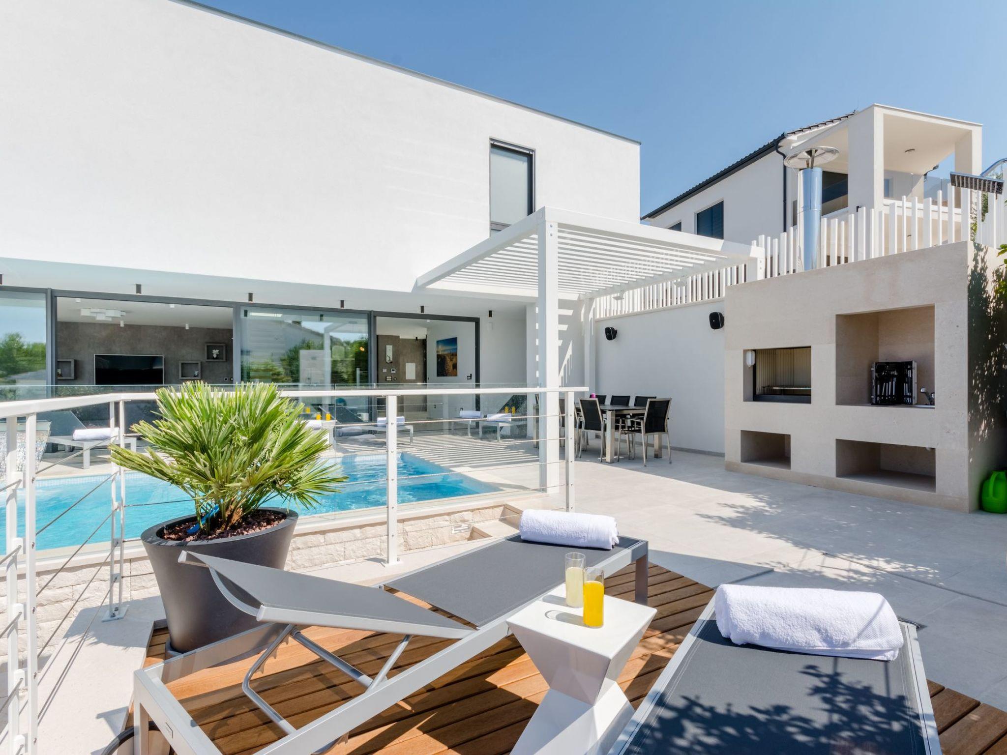 Das Anwesen mit direktem Blick auf die Adriaküste wurde 2018 nach den neuesten Standards errichtet und vereinigt modernste Architektur mit mondänem Luxus. Beobachten Sie den nächtlichen Sternenhimmel vom endlos wirkenden Infinity-Pool aus, oder genießen Sie den Sonnenaufgang bei einem gediegenen Frühstück auf der weitläufigen Terrasse. Das stilvoll eingerichtete Domizil verfügt auf seinen 300 m² über ein Fitnessstudio, sowie eine Tichtennis-Platte. Die drei erstklassig ausgetatteten Schlafzimmer mit eigenen Bädern und Kingsize Betten laden Sie zum Träumen ein. Kostenloses Highspeed W-LAN, sowie LED smart Flat-TVs in allen Schlafzimmern und dem Wohnzimmer stehen Ihnen selbstverständlich ebenfalls zur Verfügung.