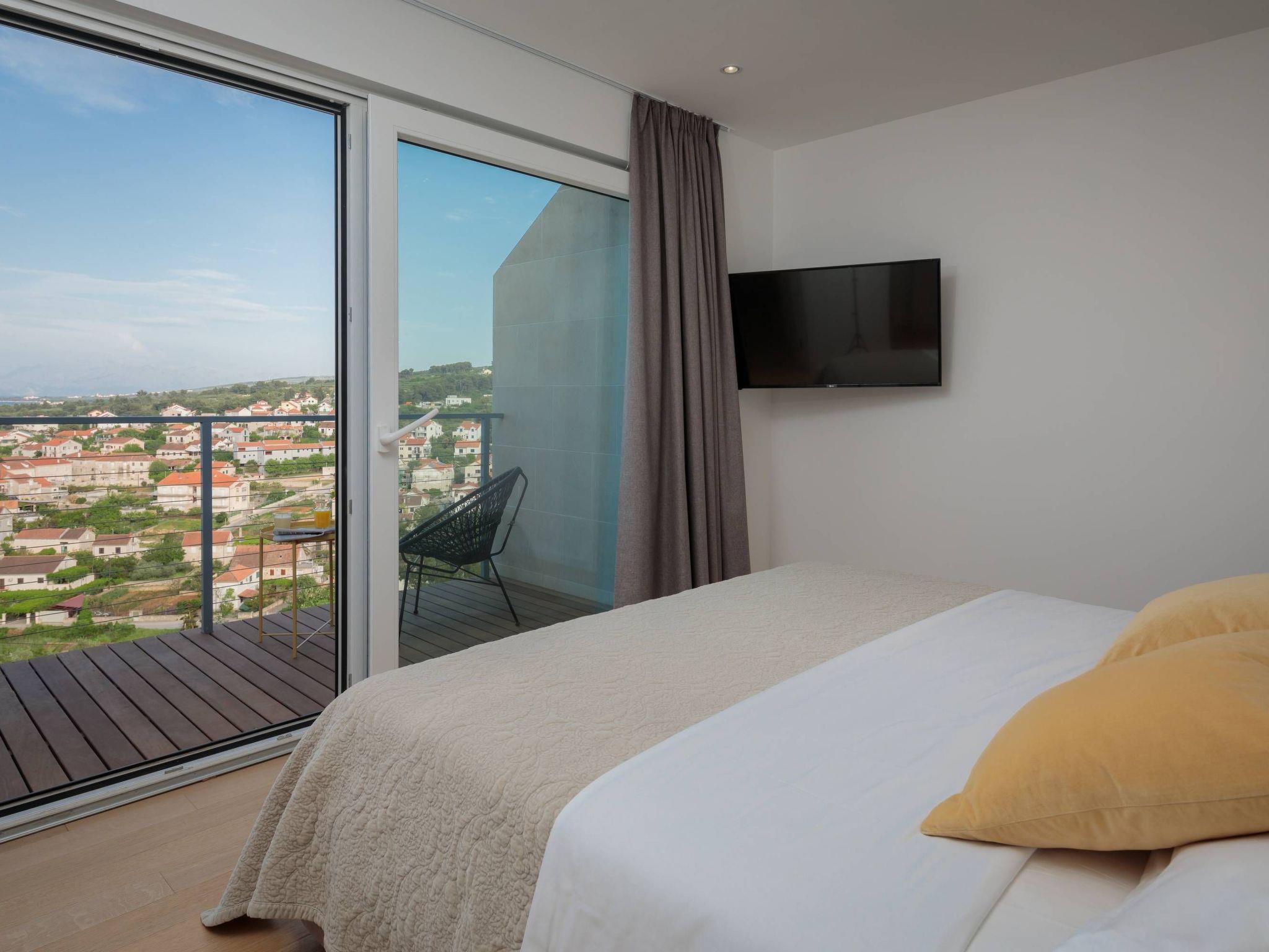 Indoor-Outdoor-Flow: Glastüren und Fenster auf drei Seiten des Erdgeschosses bieten einen ungehinderten Blick auf das Adriatische Meer, den Pool und die Terrassen. Gehen Sie nach draußen, um die mediterrane Brise zu genießen, oder entspannen Sie sich drinnen, während Sie die atemberaubende Landschaft auf sich wirken lassen.