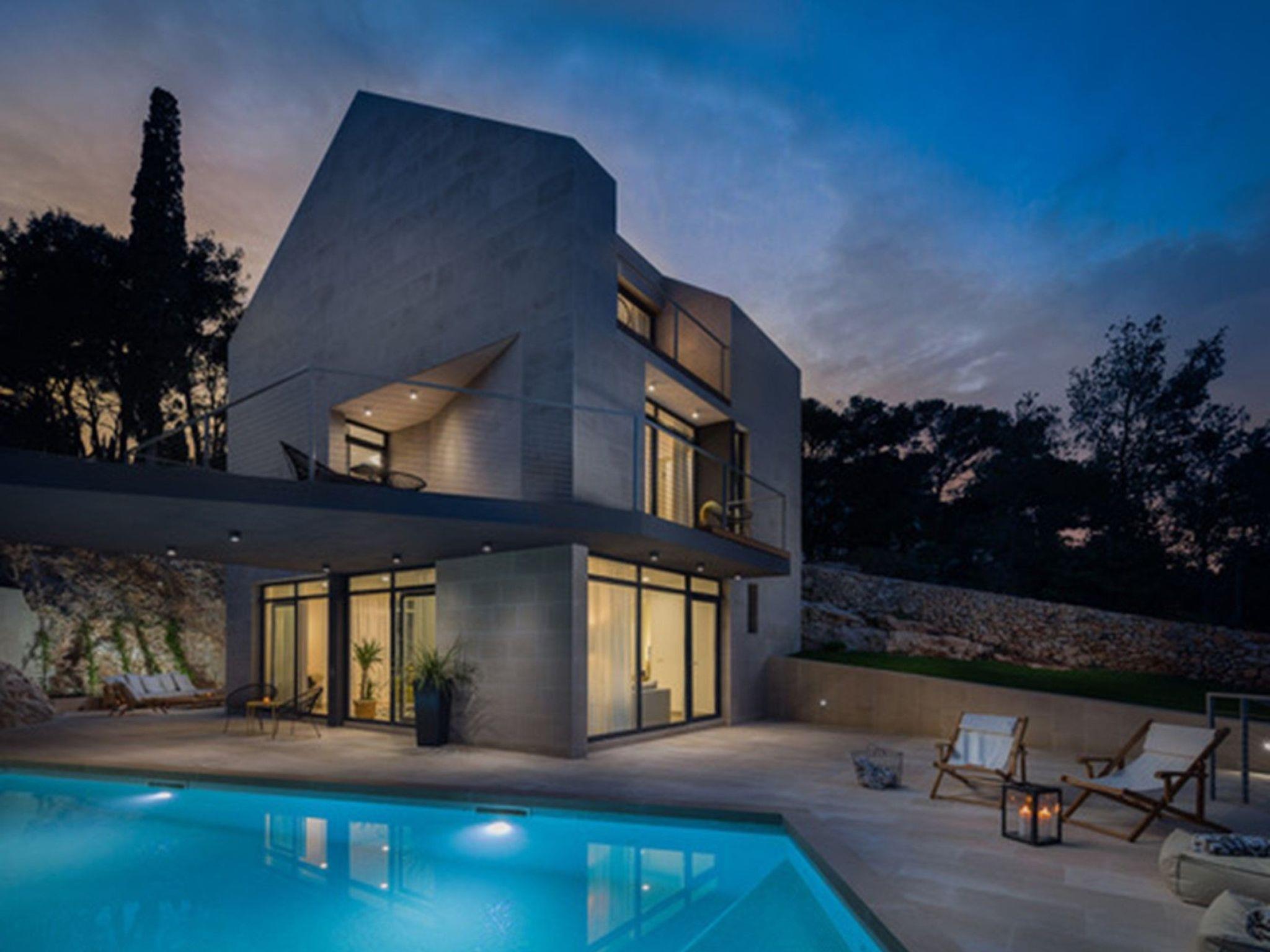 Diese zweistöckige Villa ist ein Meisterwerk des modernen Designs, das zeitgenössischen Luxus mit dem zeitlosen Charme der lokalen dalmatinischen Architektur verbindet. Vollständig aus dem berühmten Brac-Stein gebaut, fügt sich die Villa nahtlos in ihre Umgebung ein und bietet gleichzeitig modernste Annehmlichkeiten und Komfort.