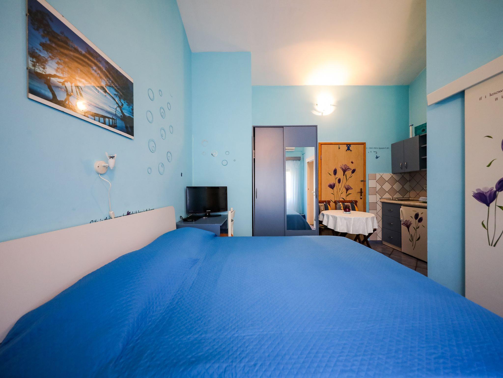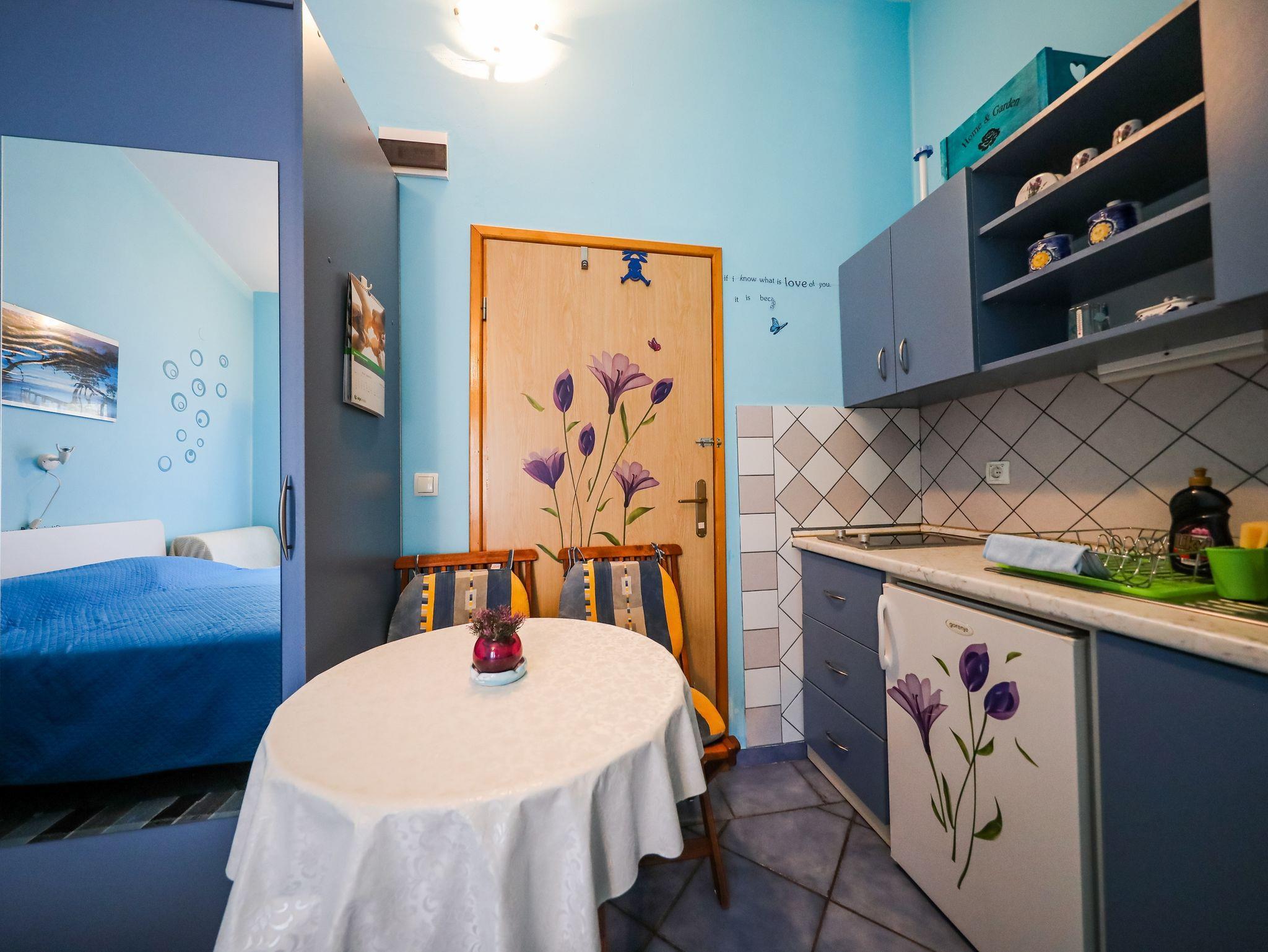 Studio bietet Platz für 2 Gäste. Die Betten sind in Schlafzimmern, die es 1 gibt, innerhalb einer Gesamtfläche von 17m2, angeordnet. Die Gäste haben eine eigene Terrasse zur Verfügung, auf der sie in warmen Sommernächten genießen können. Es ist erlaubt, Speisen auf dem Gemeinschafts-Grill vorzubereiten. In der Unterkunftseinheit besteht die Möglichkeit des Mitbringens von Haustieren gegen Aufpreis. IM PREIS INBEGRIFFEN: Kurtaxe, Endreinigung, Klimatisierung, Parkplatz, Internet, Bootsanlegeplatz, Kinderbett, Zusatzbett, Bügeleisen, Bügelbrett, Föhn, tragbarer Grill. VERBINDLICHE ZUSÄTZLICHE KOSTEN: Aufzahlung für Kurzaufenthalte (prozentualer Zuschlag pro Nächtigungsanzahl: 30% - 1, 20% - 2, 10% - 3). UNVERBINDLICHE ZUSÄTZLICHE KOSTEN: Wäschewaschen (10,00 € Waschen), Haustiere (10,00 € pro Nacht). Die Verfügbarkeit zusätzlicher Dienstleistungen in Ihrem reservierten Termin und die Preise derselben (falls nicht aufgeführt) müssen im Voraus überprüft werden. Zusätzliche Dienstleistungen die in der Zahlungsaufforderung nicht aufgeführt sind werden direkt beim Vermieter bezahlt, angenommen der Gast nutzt auch diese.