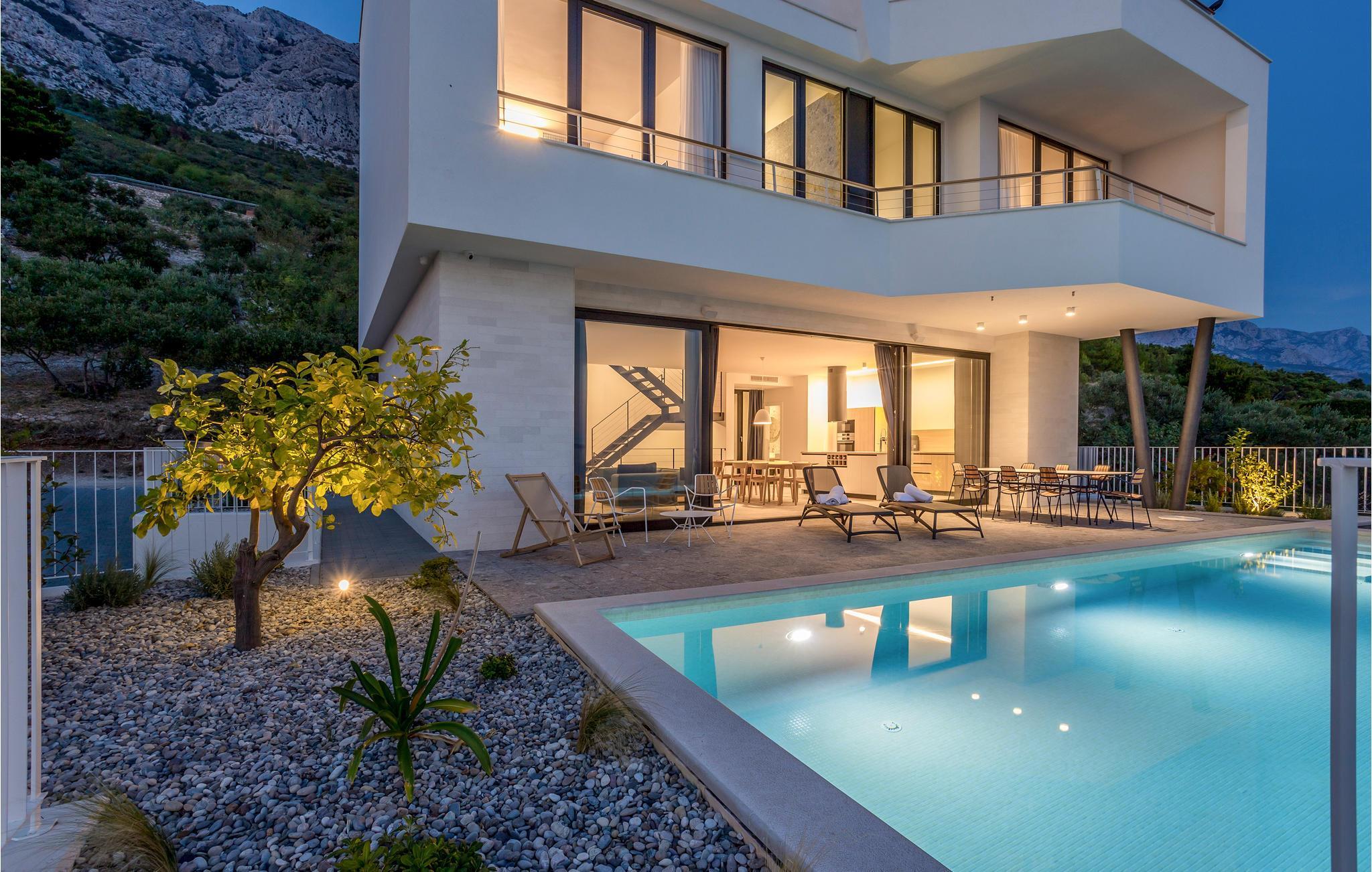 Diese moderne Ferienvilla oberhalb des Zentrums der Stadt Makarska wird Sie mit Qualität und Komfort, Ausstattung und Meerblick begeistern.