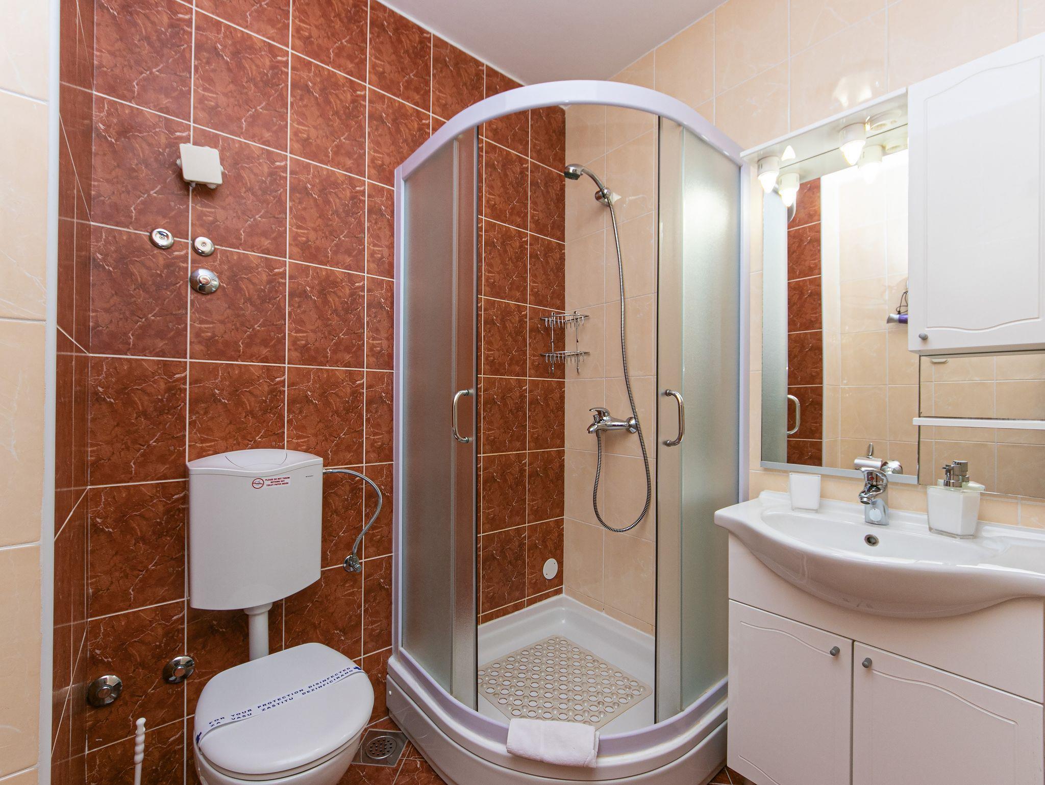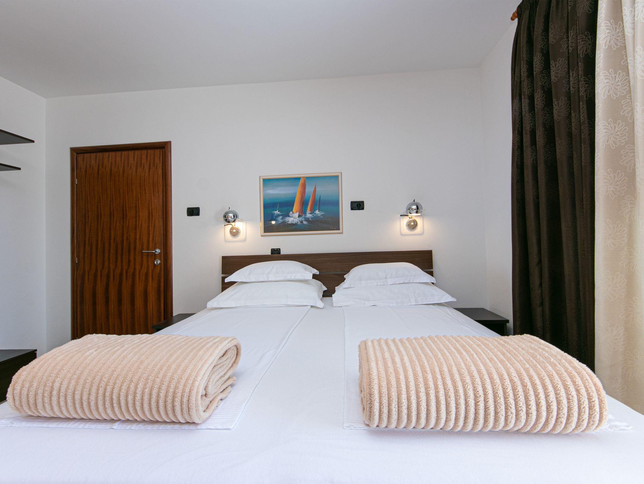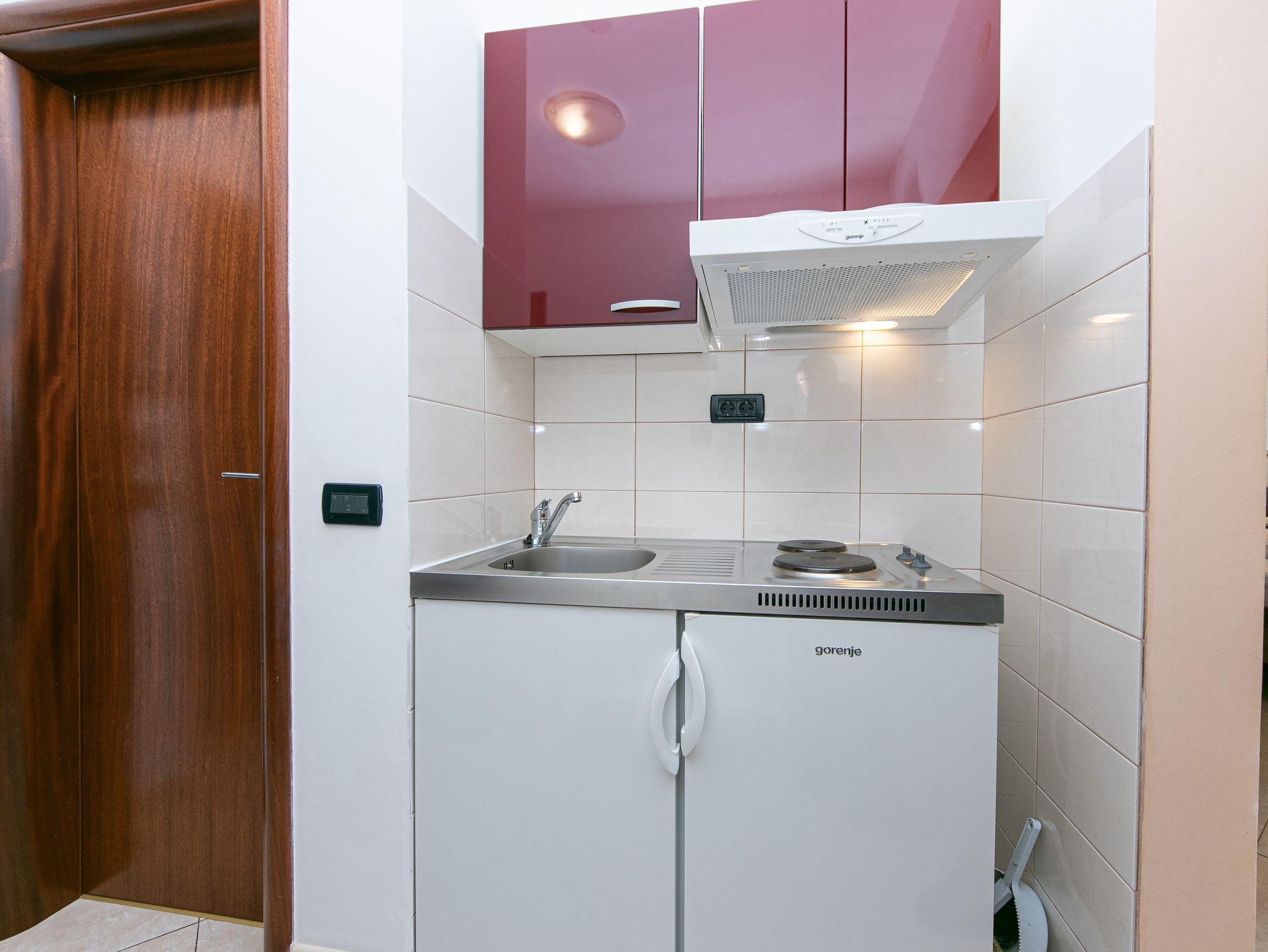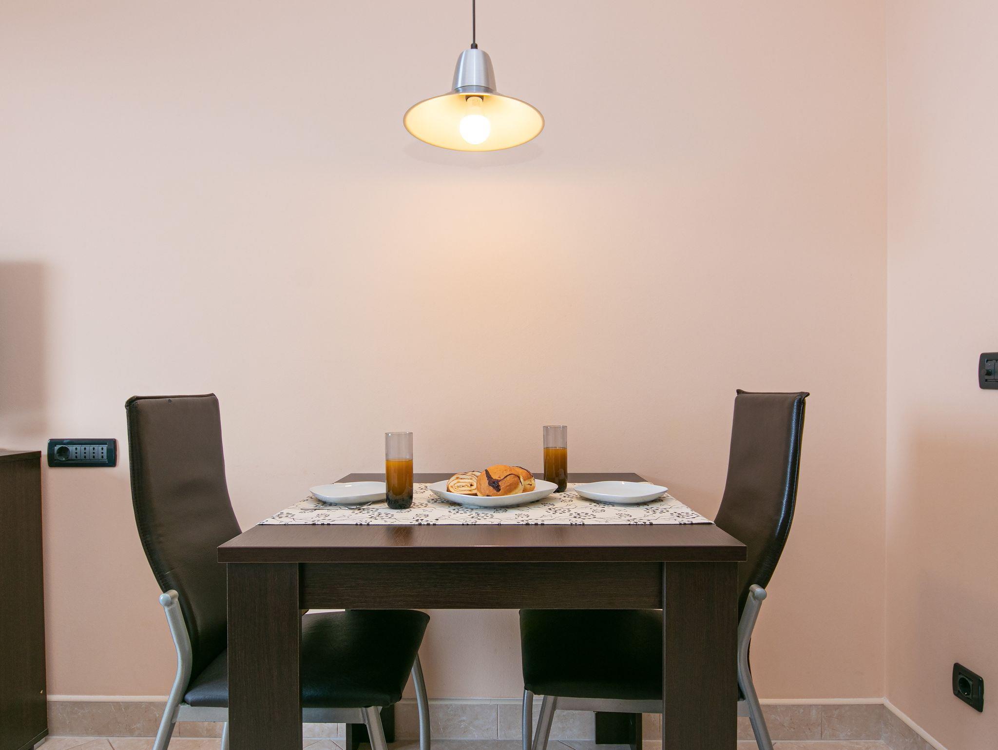 Studio bietet Platz für 2 Gäste. Die Betten sind in Schlafzimmern, die es 1 gibt, innerhalb einer Gesamtfläche von 24m2, angeordnet. Die Gäste haben eine eigene Terrasse zur Verfügung, auf der sie in warmen Sommernächten genießen können. Das Studio-Apartment bietet Meerblick. Es ist erlaubt, Speisen auf dem Gemeinschafts-Grill vorzubereiten. Während ihres Aufenthalts können Gäste das gemeinsam zur Nutzung stehende Schwimmbad benutzen. In der Unterkunftseinheit besteht die Möglichkeit des Mitbringens von Haustieren gegen Aufpreis. IM PREIS INBEGRIFFEN: Kurtaxe, Endreinigung, Klimatisierung, Pool, Parkplatz, Internet, Wäschewaschen, Kinderbett, Bügeleisen, Bügelbrett, Föhn. UNVERBINDLICHE ZUSÄTZLICHE KOSTEN: Haustiere (10,00 € pro Nacht). Die Verfügbarkeit zusätzlicher Dienstleistungen in Ihrem reservierten Termin und die Preise derselben (falls nicht aufgeführt) müssen im Voraus überprüft werden. Zusätzliche Dienstleistungen die in der Zahlungsaufforderung nicht aufgeführt sind werden direkt beim Vermieter bezahlt, angenommen der Gast nutzt auch diese. Ermäßigung auf den Grundpreis: Gratistag 14=13 (bei einem Aufenthalt von 14 Tagen oder mehr erhalten Sie einen Gratistag für den Aufenthalt bis 31.12.26).