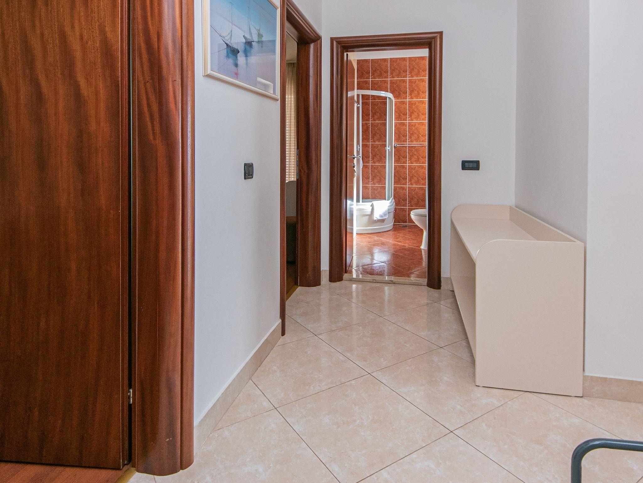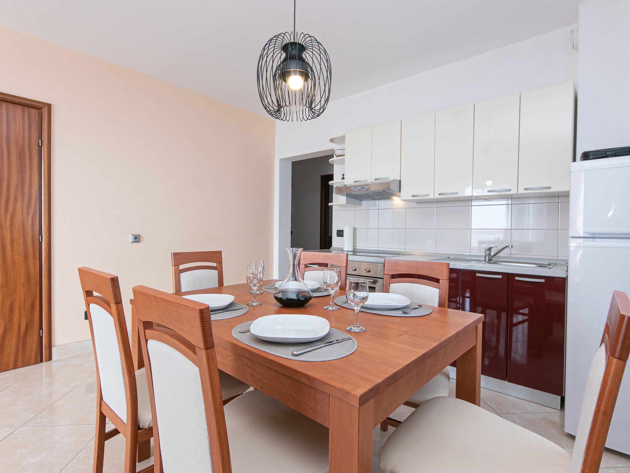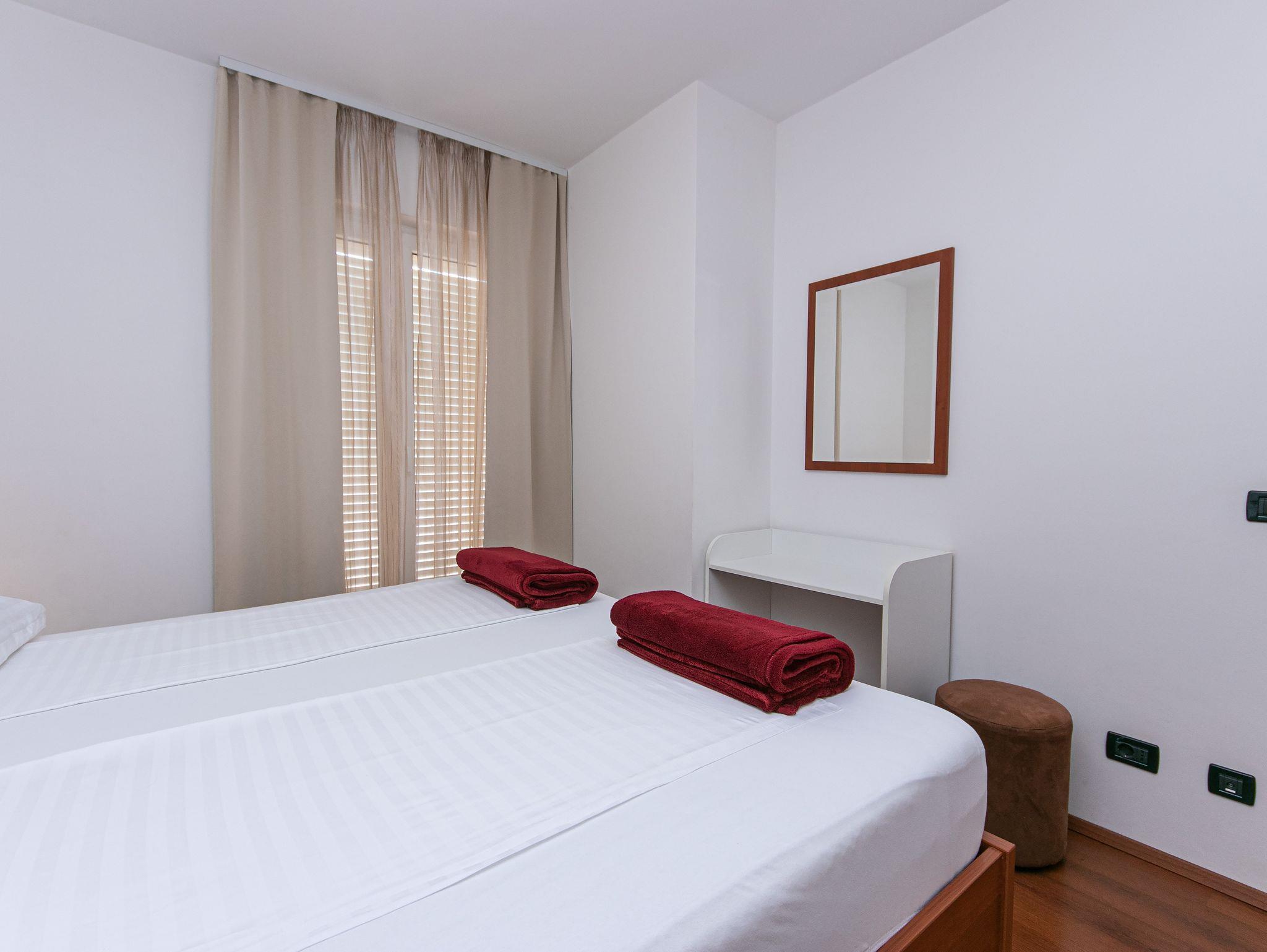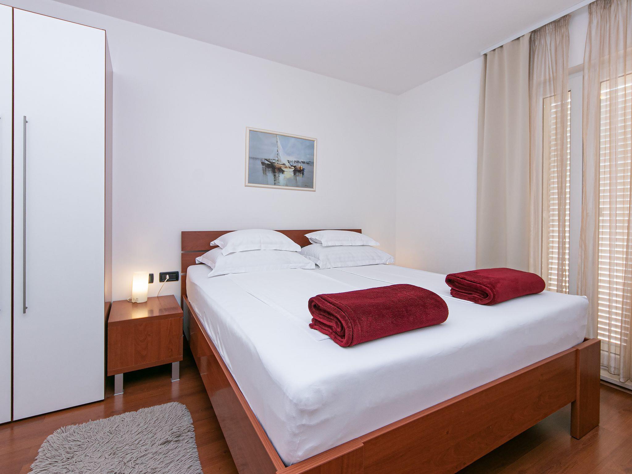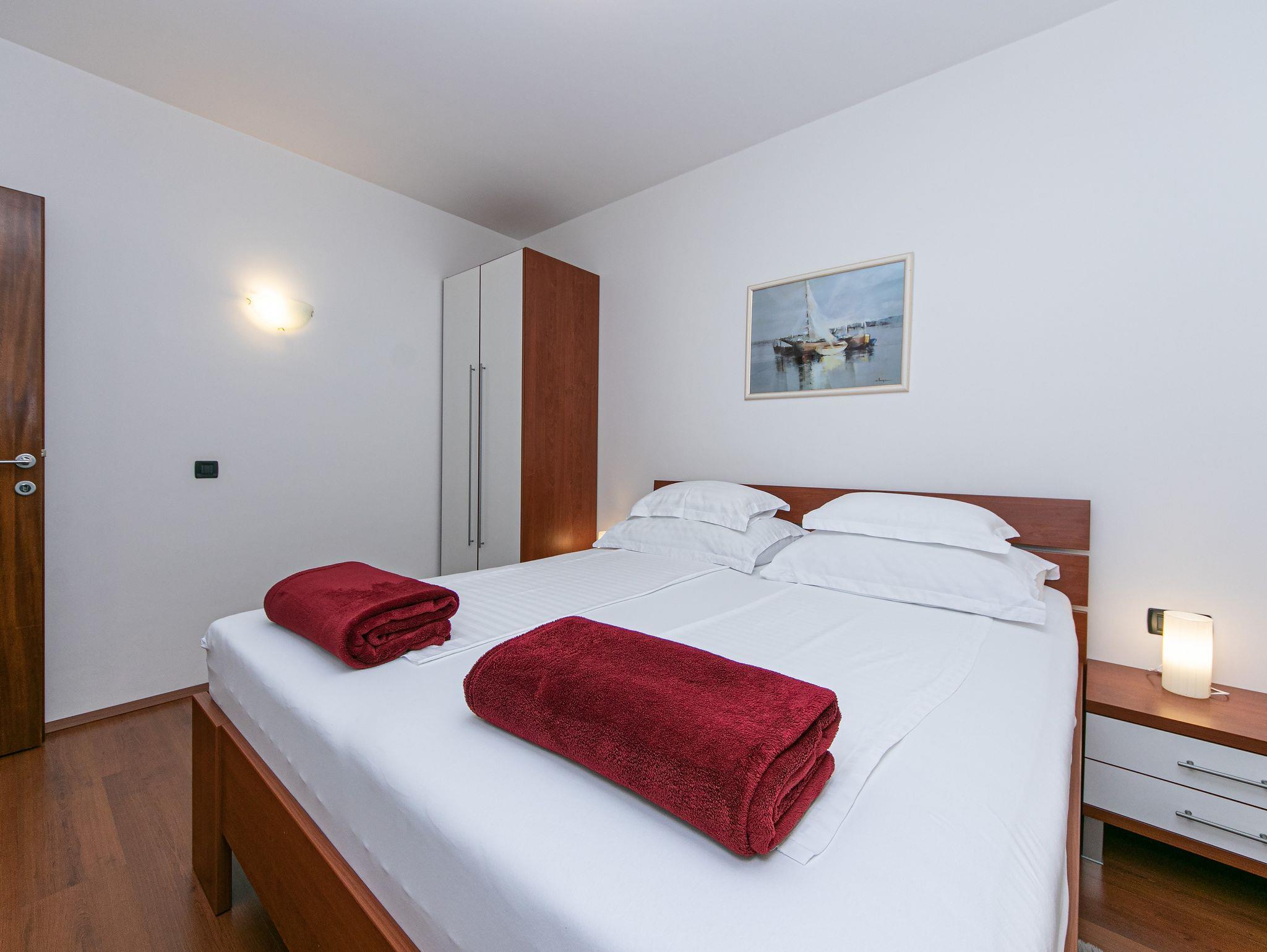 Ferienwohnung bietet Platz für 4 Gäste. Die Betten sind in Schlafzimmern, die es 2 gibt, innerhalb einer Gesamtfläche von 50m2, angeordnet. Die Gäste haben eine eigene Terrasse zur Verfügung, auf der sie in warmen Sommernächten genießen können. Das Apartment bietet Meerblick. Es ist erlaubt, Speisen auf dem Gemeinschafts-Grill vorzubereiten. Während ihres Aufenthalts können Gäste das gemeinsam zur Nutzung stehende Schwimmbad benutzen. In der Unterkunftseinheit besteht die Möglichkeit des Mitbringens von Haustieren gegen Aufpreis. IM PREIS INBEGRIFFEN: Kurtaxe, Endreinigung, Klimatisierung, Zentralheizung, Pool, Parkplatz, Internet, Wäschewaschen, Kinderbett, Bügeleisen, Bügelbrett, Föhn. UNVERBINDLICHE ZUSÄTZLICHE KOSTEN: Haustiere (10,00 € pro Nacht). Die Verfügbarkeit zusätzlicher Dienstleistungen in Ihrem reservierten Termin und die Preise derselben (falls nicht aufgeführt) müssen im Voraus überprüft werden. Zusätzliche Dienstleistungen die in der Zahlungsaufforderung nicht aufgeführt sind werden direkt beim Vermieter bezahlt, angenommen der Gast nutzt auch diese. Ermäßigung auf den Grundpreis: Gratistag 14=13 (bei einem Aufenthalt von 14 Tagen oder mehr erhalten Sie einen Gratistag für den Aufenthalt bis 31.12.26).