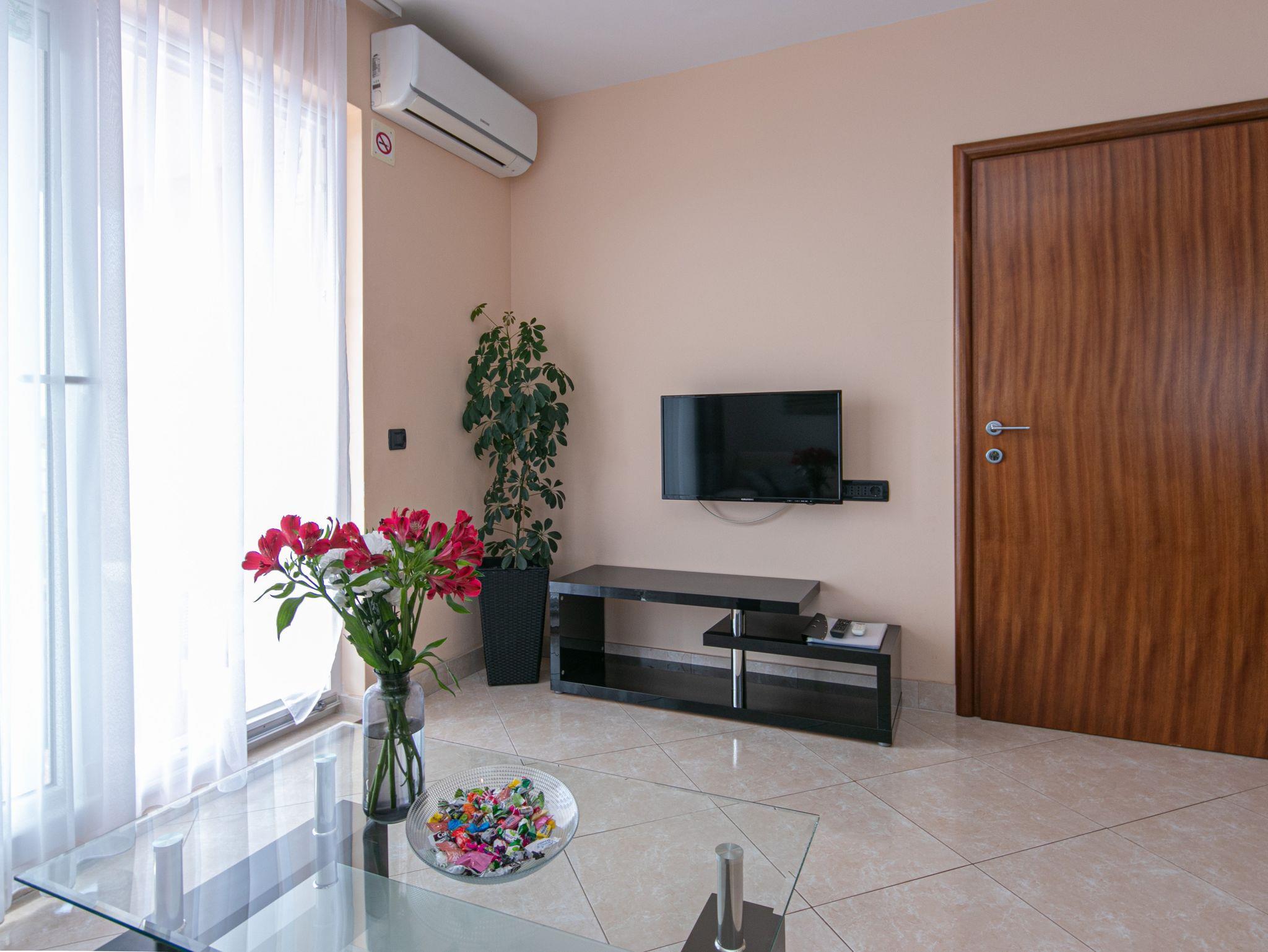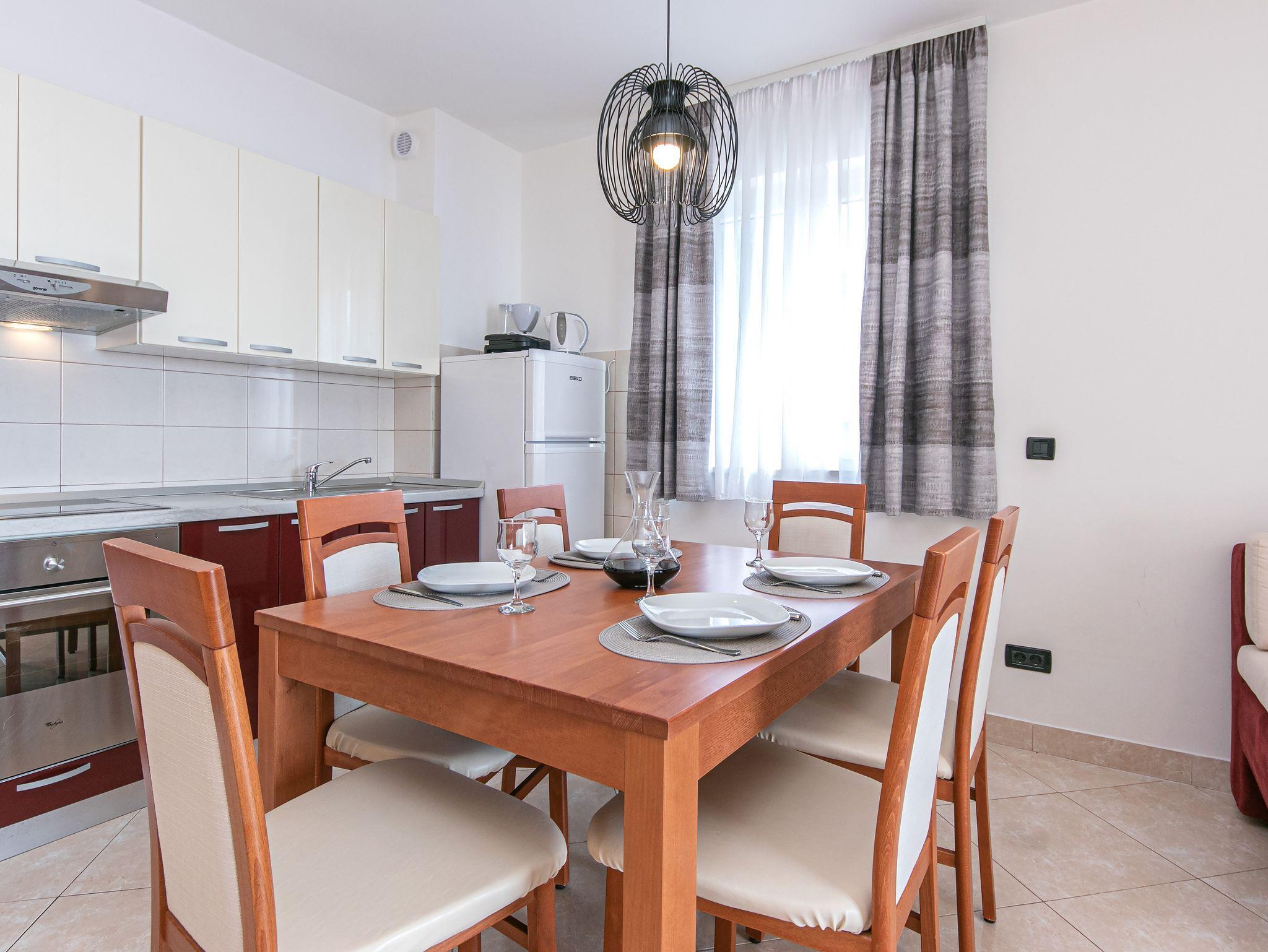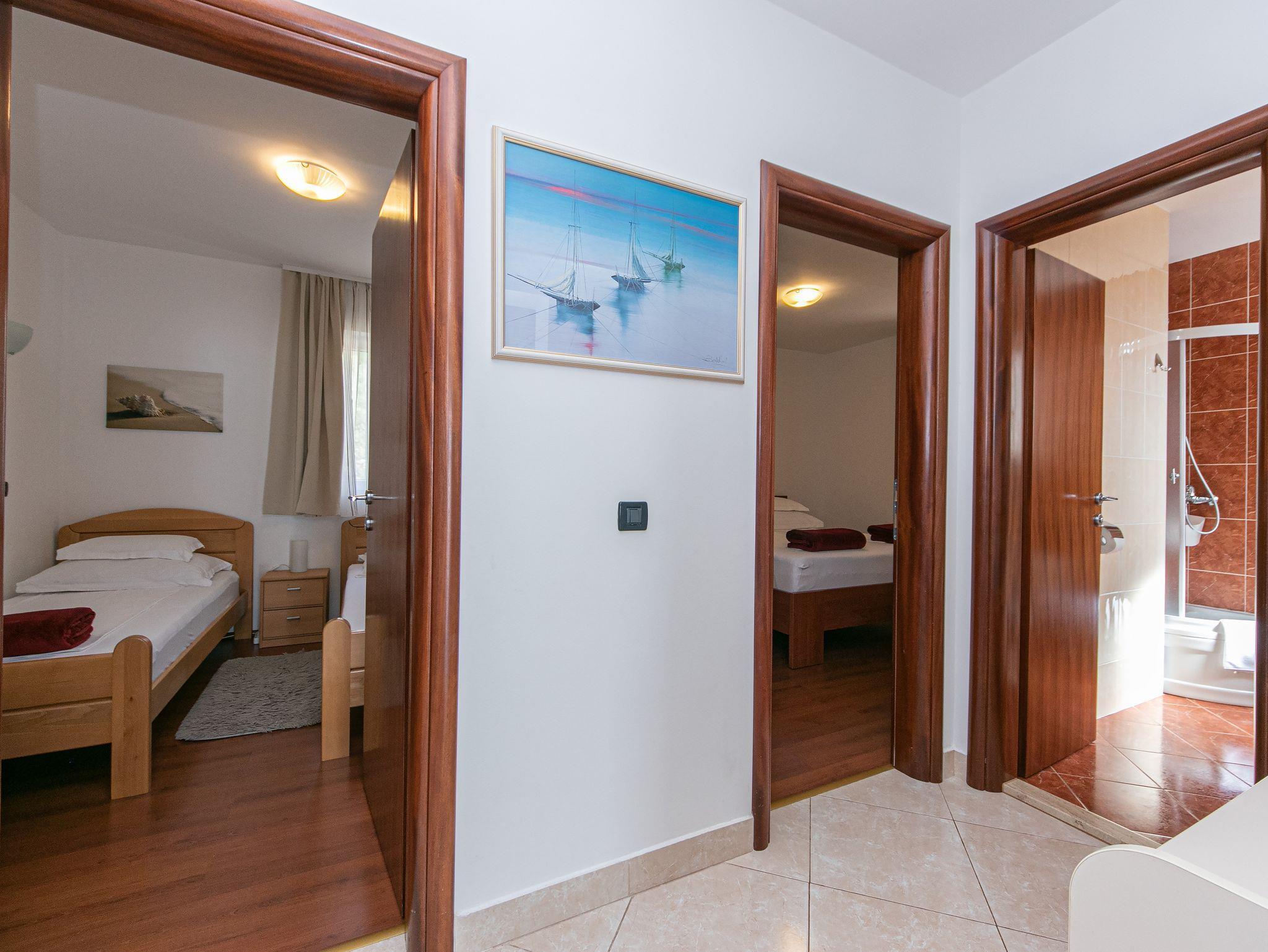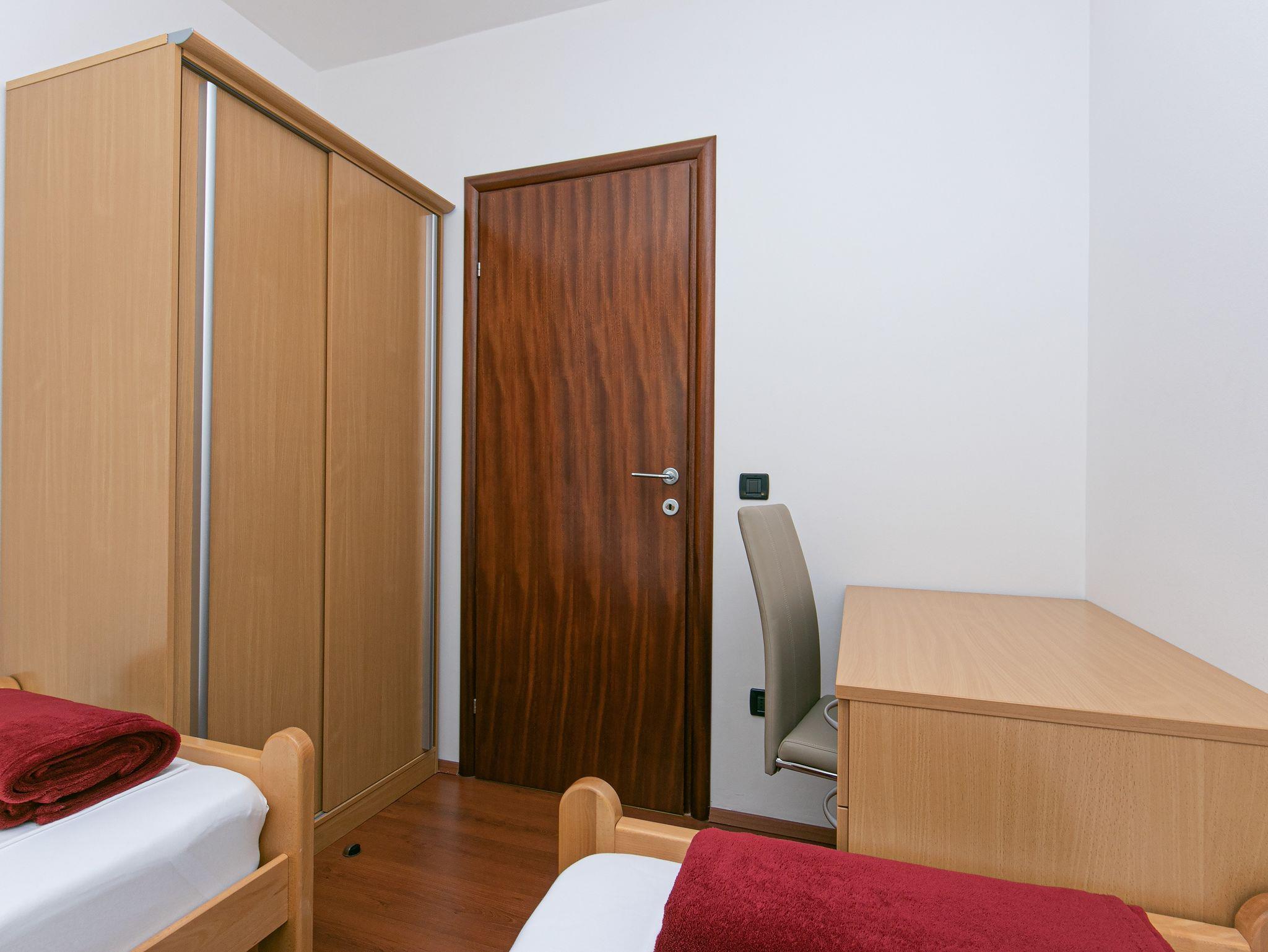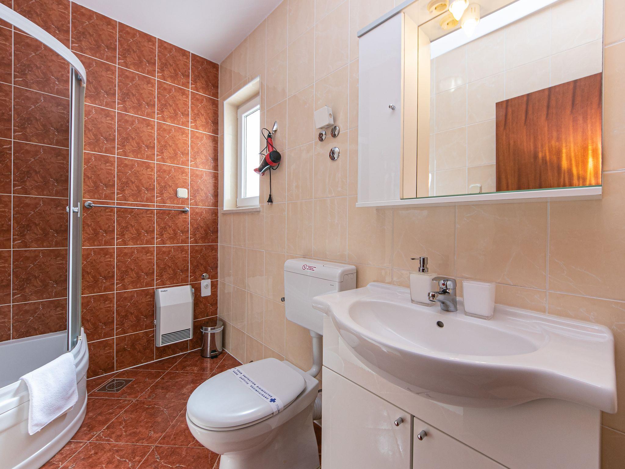 Ferienwohnung bietet Platz für 4 Gäste. Die Betten sind in Schlafzimmern, die es 2 gibt, innerhalb einer Gesamtfläche von 50m2, angeordnet. Die Gäste haben eine eigene Terrasse zur Verfügung, auf der sie in warmen Sommernächten genießen können. Das Apartment bietet Meerblick. Es ist erlaubt, Speisen auf dem Gemeinschafts-Grill vorzubereiten. Während ihres Aufenthalts können Gäste das gemeinsam zur Nutzung stehende Schwimmbad benutzen. In der Unterkunftseinheit besteht die Möglichkeit des Mitbringens von Haustieren gegen Aufpreis. IM PREIS INBEGRIFFEN: Kurtaxe, Endreinigung, Klimatisierung, Zentralheizung, Pool, Parkplatz, Internet, Wäschewaschen, Kinderbett, Bügeleisen, Bügelbrett, Föhn. UNVERBINDLICHE ZUSÄTZLICHE KOSTEN: Haustiere (10,00 € pro Nacht). Die Verfügbarkeit zusätzlicher Dienstleistungen in Ihrem reservierten Termin und die Preise derselben (falls nicht aufgeführt) müssen im Voraus überprüft werden. Zusätzliche Dienstleistungen die in der Zahlungsaufforderung nicht aufgeführt sind werden direkt beim Vermieter bezahlt, angenommen der Gast nutzt auch diese. Ermäßigung auf den Grundpreis: Gratistag 14=13 (bei einem Aufenthalt von 14 Tagen oder mehr erhalten Sie einen Gratistag für den Aufenthalt bis 31.12.26).