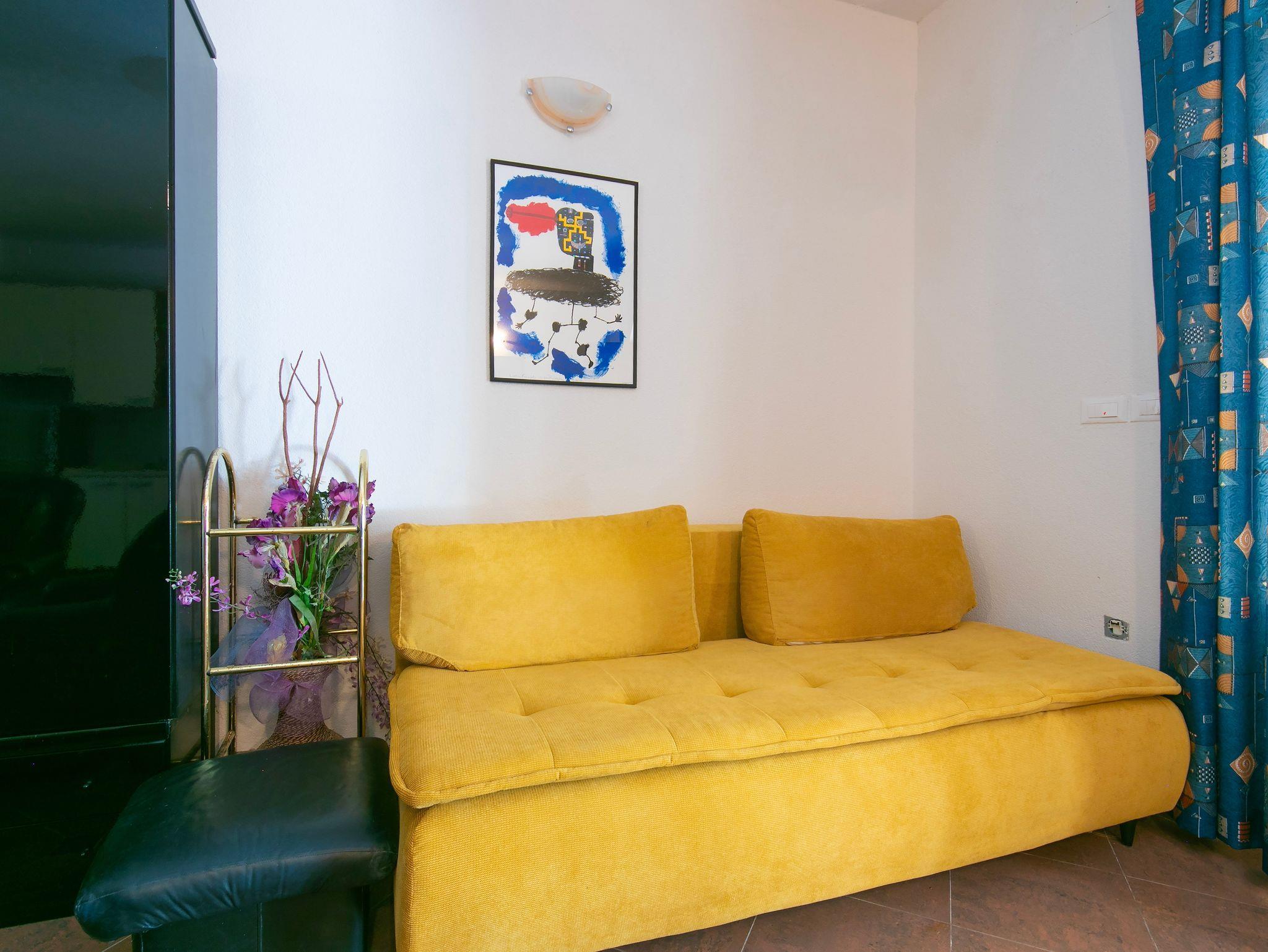 Studio bietet Platz für 2 Gäste. Die Betten sind in Schlafzimmern, die es 1 gibt, innerhalb einer Gesamtfläche von 63m2, angeordnet. Die Gäste haben eine eigene Terrasse zur Verfügung, auf der sie in warmen Sommernächten genießen können. Das Studio-Apartment bietet Meerblick. IM PREIS INBEGRIFFEN: Kurtaxe, Endreinigung, Klimatisierung, Parkplatz, Internet, Bügeleisen, Bügelbrett, Liegestühle, 2 Kinderbettchen (im Preis enthalten). Die Verfügbarkeit zusätzlicher Dienstleistungen in Ihrem reservierten Termin und die Preise derselben (falls nicht aufgeführt) müssen im Voraus überprüft werden. Zusätzliche Dienstleistungen die in der Zahlungsaufforderung nicht aufgeführt sind werden direkt beim Vermieter bezahlt, angenommen der Gast nutzt auch diese.