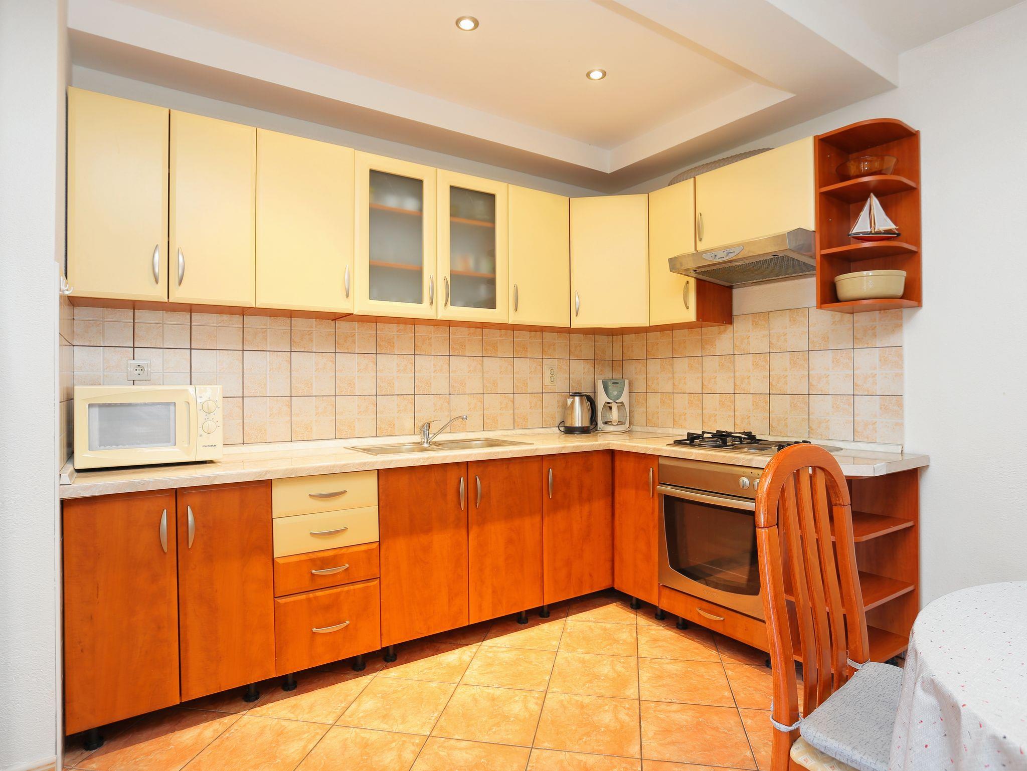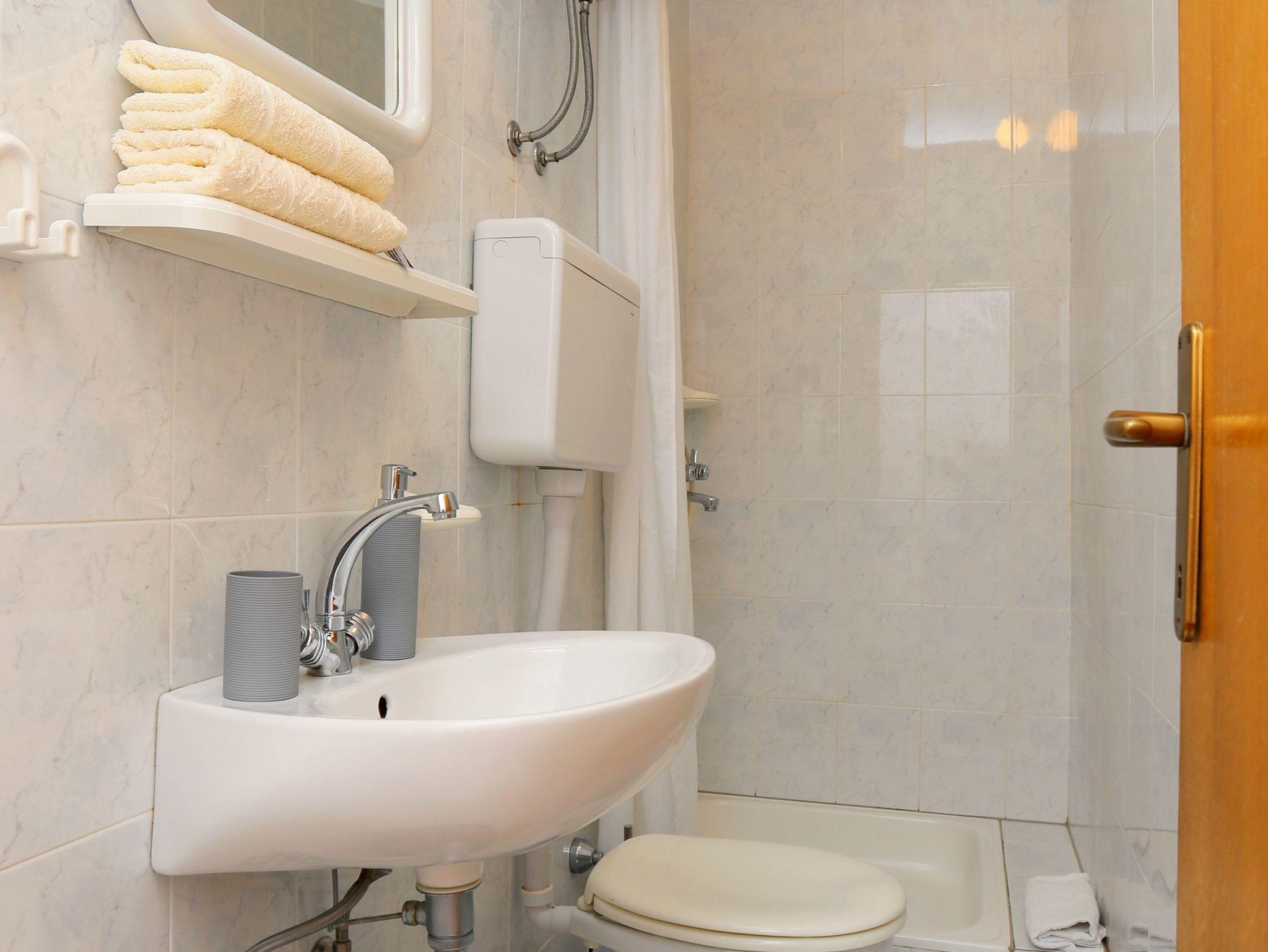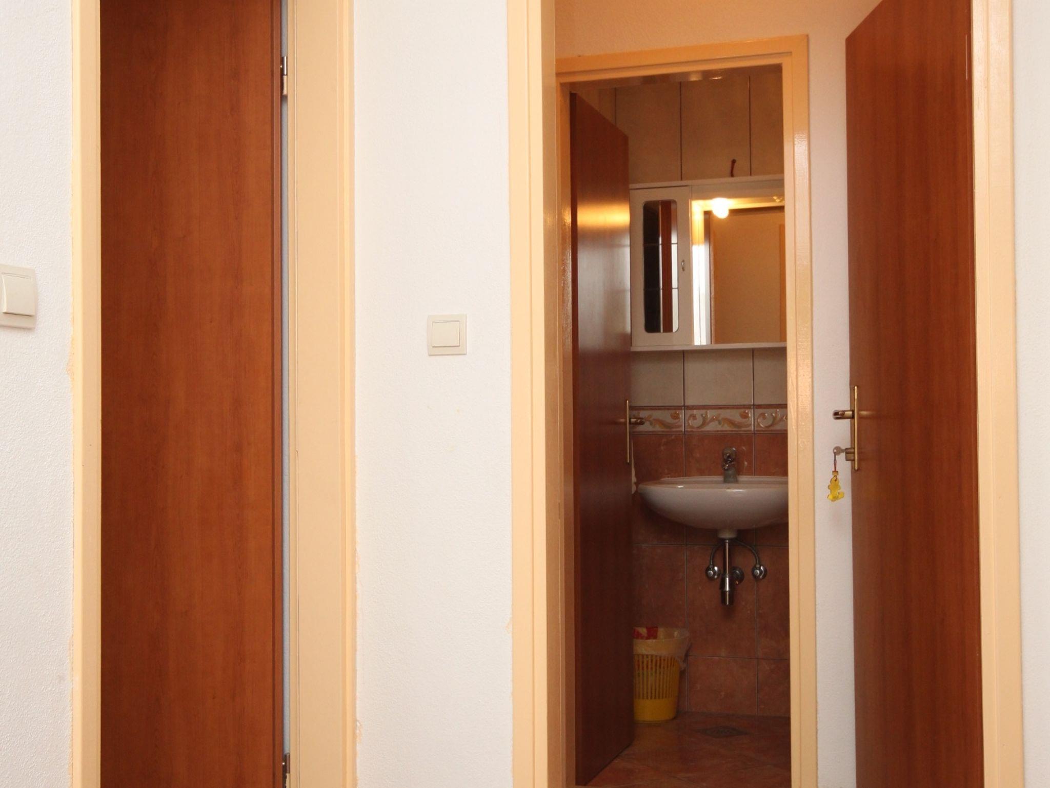 Ferienwohnung bietet Platz für 6 Gäste. Die Betten sind in Schlafzimmern, die es 2 gibt, und in Wohnzimmer, innerhalb einer Gesamtfläche von 58m2, angeordnet. Die Gäste haben eine eigene Terrasse zur Verfügung, auf der sie in warmen Sommernächten genießen können. Das Apartment bietet Meerblick. Es ist erlaubt, Speisen auf dem Gemeinschafts-Grill vorzubereiten. In der Unterkunftseinheit besteht die Möglichkeit des Mitbringens von Haustieren gegen Aufpreis. IM PREIS INBEGRIFFEN: Kurtaxe, Endreinigung, Klimatisierung, Parkplatz, Internet, Kinderbett, Bügeleisen, Bügelbrett, tragbarer Grill, 1 Bett für Kinder (im Preis enthalten). VERBINDLICHE ZUSÄTZLICHE KOSTEN: Aufzahlung für Kurzaufenthalte (prozentualer Zuschlag pro Nächtigungsanzahl: 30% - 1, 20% - 2, 10% - 3). UNVERBINDLICHE ZUSÄTZLICHE KOSTEN: Wäschewaschen (5,00 € Waschen), Haustiere (5,00 € pro Nacht). Die Verfügbarkeit zusätzlicher Dienstleistungen in Ihrem reservierten Termin und die Preise derselben (falls nicht aufgeführt) müssen im Voraus überprüft werden. Zusätzliche Dienstleistungen die in der Zahlungsaufforderung nicht aufgeführt sind werden direkt beim Vermieter bezahlt, angenommen der Gast nutzt auch diese.