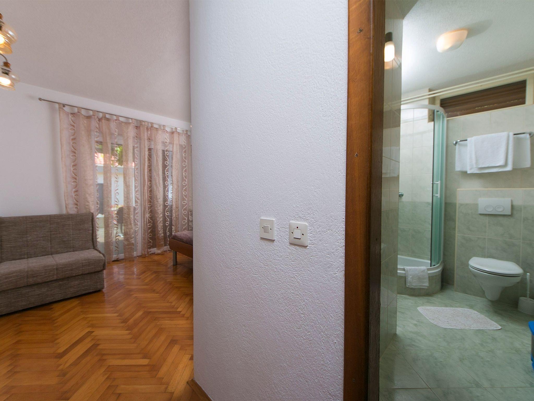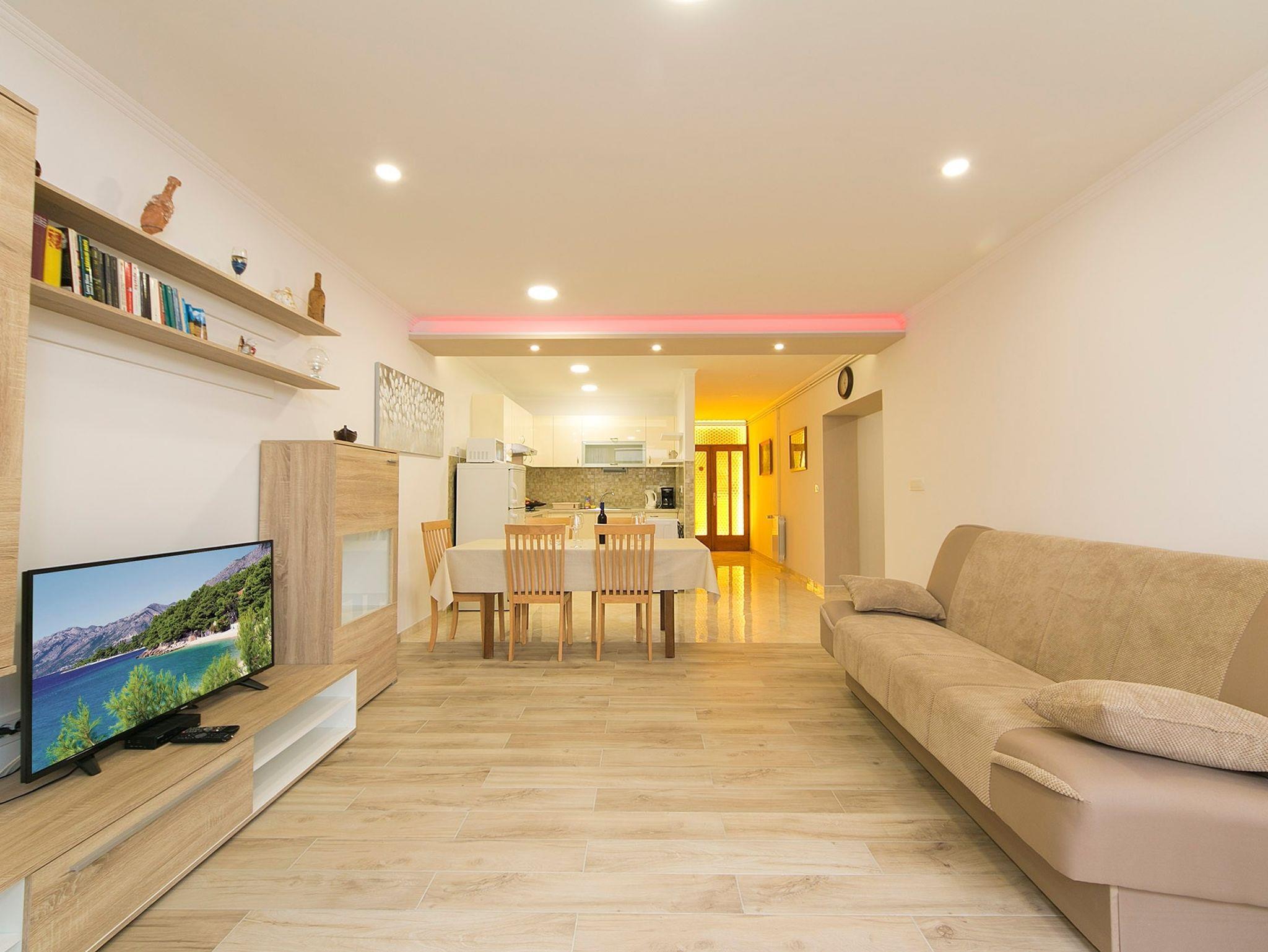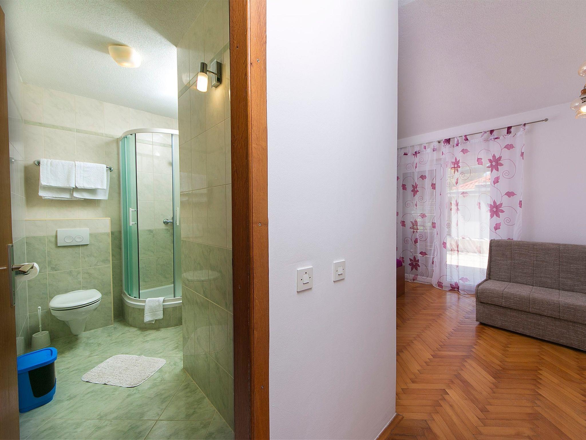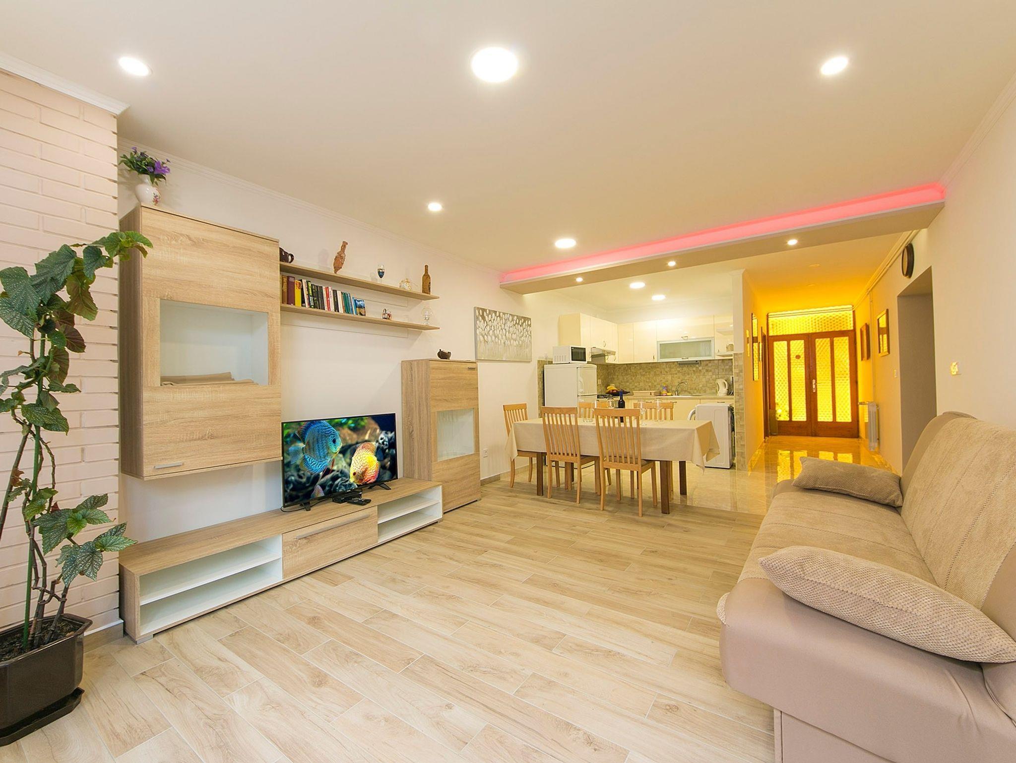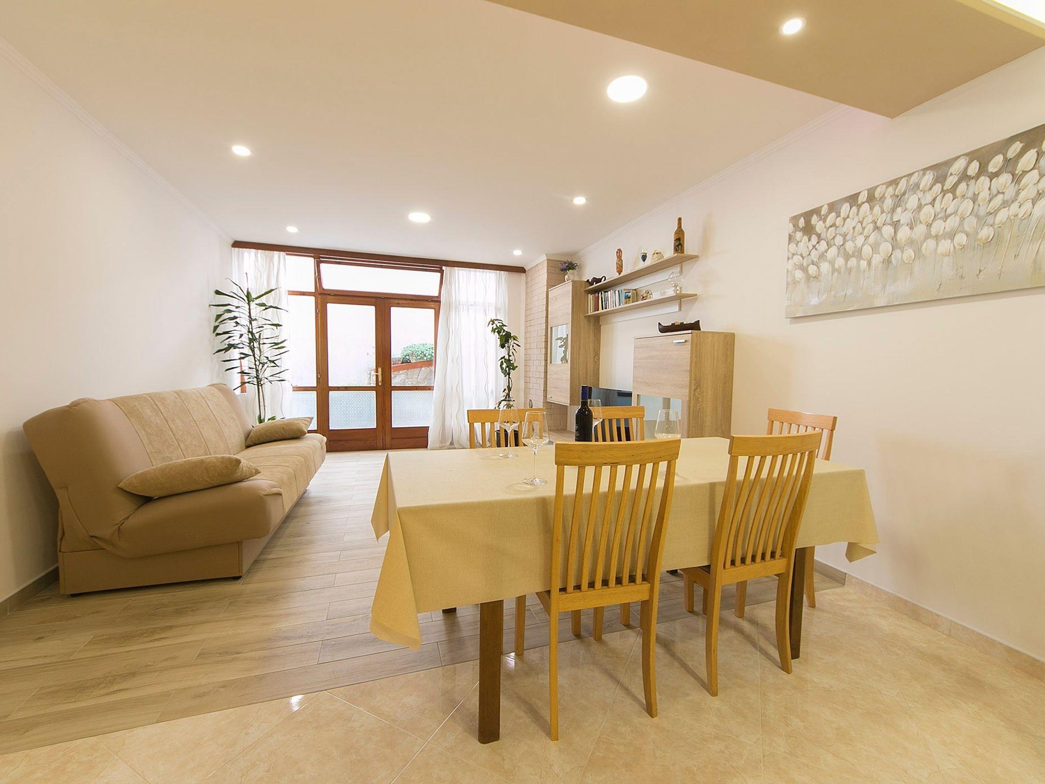 Ferienwohnung bietet Platz für 8 Gäste. Die Betten sind in Schlafzimmern, die es 3 gibt, und in Wohnzimmer, innerhalb einer Gesamtfläche von 87m2, angeordnet. Die Gäste haben eine eigene Terrasse zur Verfügung, auf der sie in warmen Sommernächten genießen können. Das Apartment bietet Meerblick. Für vollen Genuss und Entspannung gibt es einen privaten Grill für Gäste dieser Unterkunft. In der Unterkunftseinheit besteht die Möglichkeit des Mitbringens von Haustieren, und die Dienstleistung ist im Preis der Unterkunft enthalten. IM PREIS INBEGRIFFEN: Kurtaxe, Endreinigung, Klimatisierung, Parkplatz, Internet, Haustiere, Kinderbett. UNVERBINDLICHE ZUSÄTZLICHE KOSTEN: Zusatzbett (15,00 € pro Nacht). Die Verfügbarkeit zusätzlicher Dienstleistungen in Ihrem reservierten Termin und die Preise derselben (falls nicht aufgeführt) müssen im Voraus überprüft werden. Zusätzliche Dienstleistungen die in der Zahlungsaufforderung nicht aufgeführt sind werden direkt beim Vermieter bezahlt, angenommen der Gast nutzt auch diese.