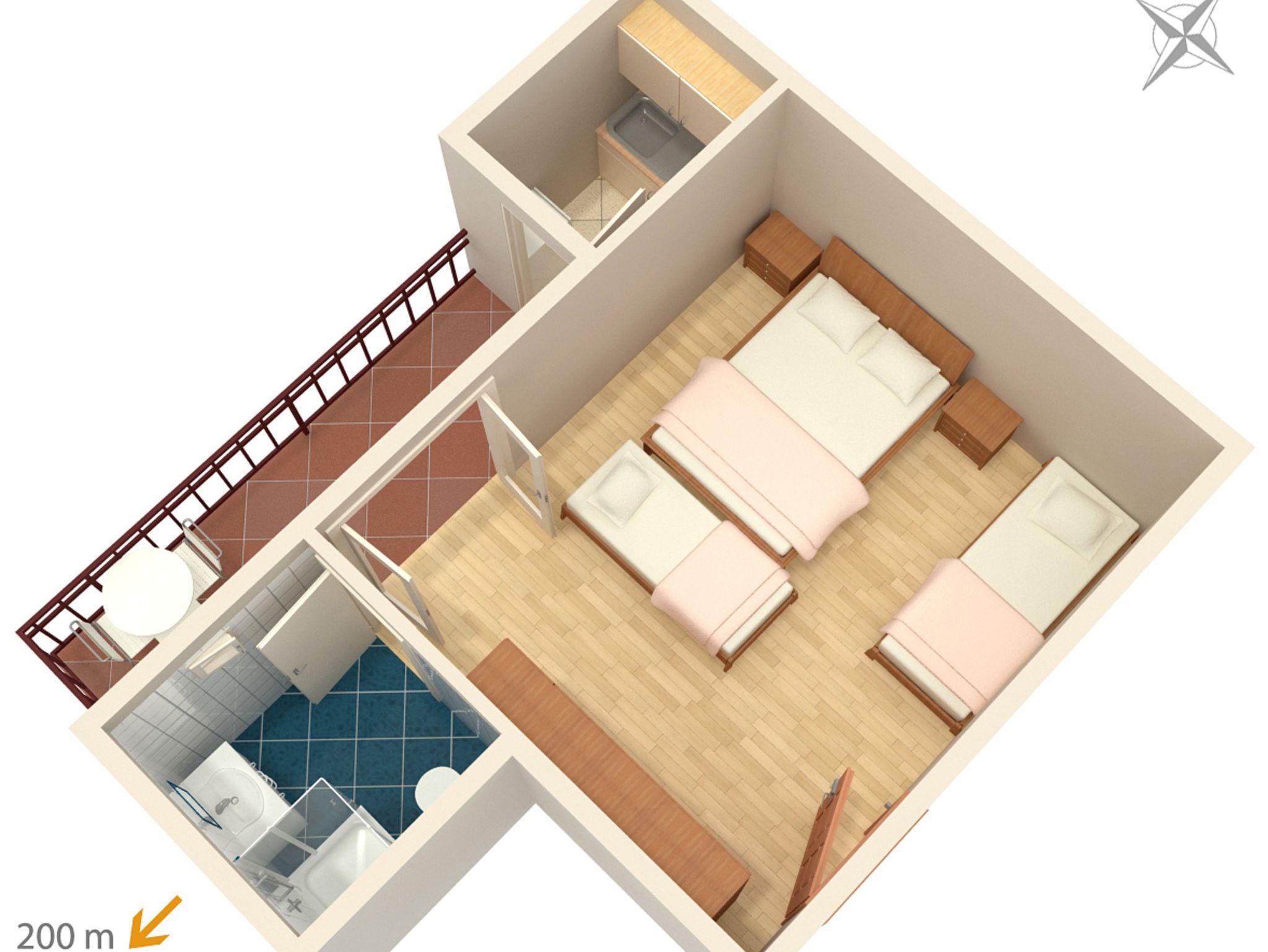 Studio bietet Platz für 3 Gäste. Die Betten sind in Schlafzimmern, die es 1 gibt, innerhalb einer Gesamtfläche von 24m2, angeordnet. Die Gäste haben einen eigenen Balkon zur Verfügung, auf der sie in warmen Sommernächten genießen können. Das Studio-Apartment bietet Meerblick. Es ist erlaubt, Speisen auf dem Gemeinschafts-Grill vorzubereiten. IM PREIS INBEGRIFFEN: Kurtaxe, Endreinigung, Klimatisierung, Parkplatz, Internet, Bügeleisen, Bügelbrett, Föhn. VERBINDLICHE ZUSÄTZLICHE KOSTEN: Aufzahlung für Kurzaufenthalte (prozentualer Zuschlag pro Nächtigungsanzahl: 30% - 1, 20% - 2, 10% - 3). Die Verfügbarkeit zusätzlicher Dienstleistungen in Ihrem reservierten Termin und die Preise derselben (falls nicht aufgeführt) müssen im Voraus überprüft werden. Zusätzliche Dienstleistungen die in der Zahlungsaufforderung nicht aufgeführt sind werden direkt beim Vermieter bezahlt, angenommen der Gast nutzt auch diese.