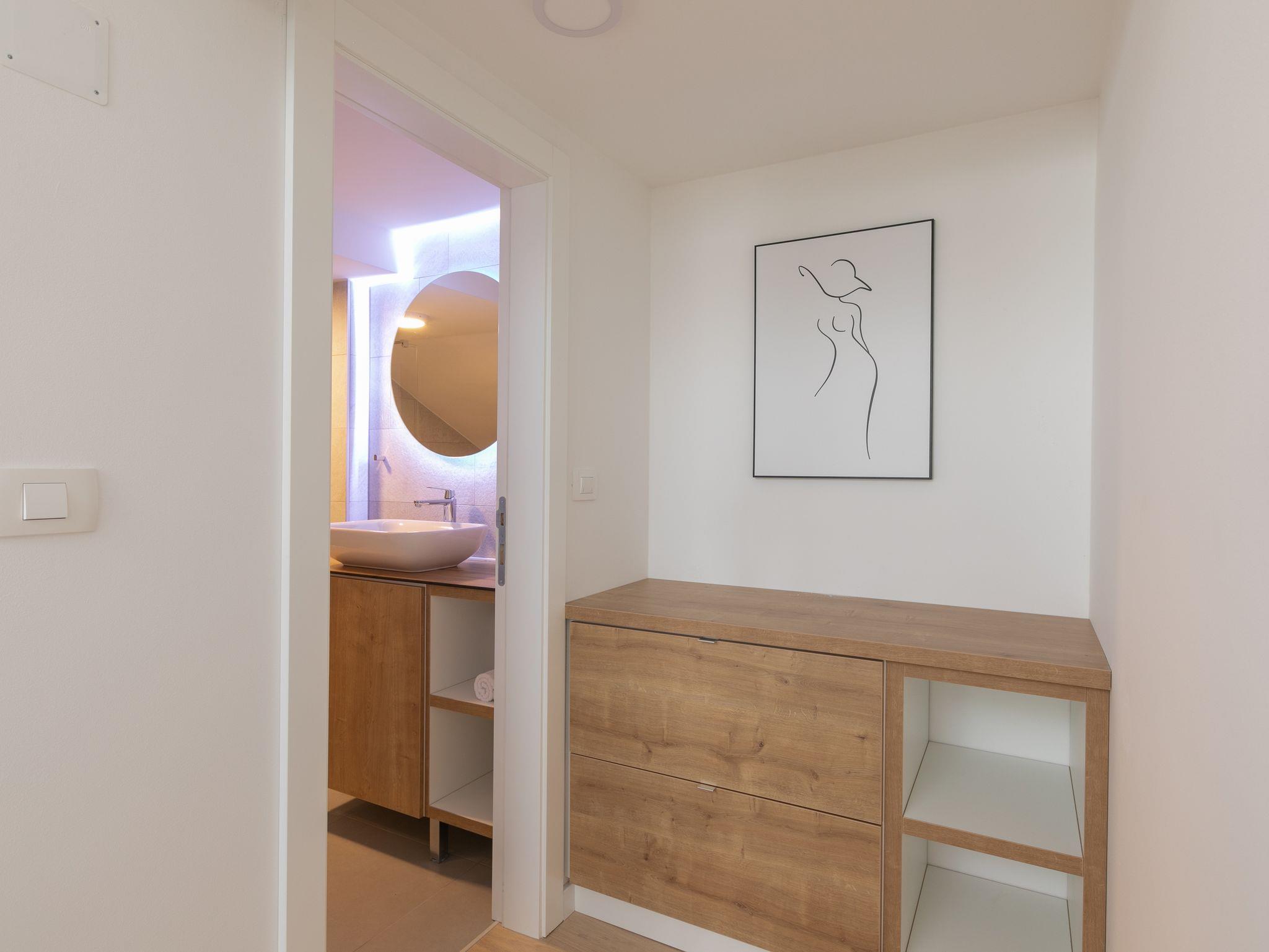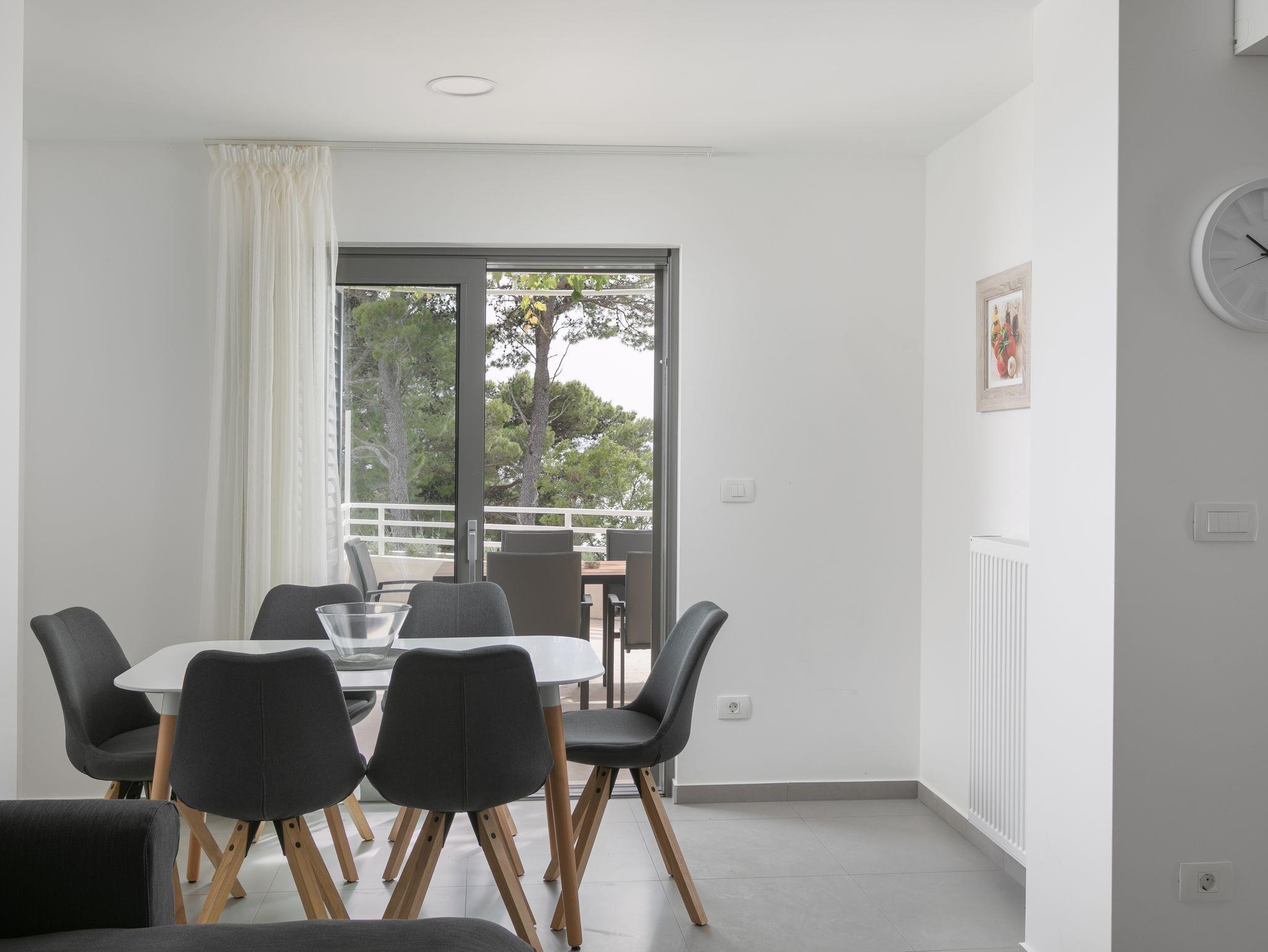 Ferienwohnung bietet Platz für 6 Gäste. Die Betten sind in Schlafzimmern, die es 2 gibt, und in Wohnzimmer, innerhalb einer Gesamtfläche von 55m2, angeordnet. Die Gäste haben eine eigene Terrasse zur Verfügung, auf der sie in warmen Sommernächten genießen können. Das Apartment bietet Meerblick. Es ist erlaubt, Speisen auf dem Gemeinschafts-Grill vorzubereiten. Während ihres Aufenthalts können Gäste das gemeinsam zur Nutzung stehende Schwimmbad benutzen. In der Unterkunftseinheit besteht die Möglichkeit des Mitbringens von Haustieren gegen Aufpreis. IM PREIS INBEGRIFFEN: Kurtaxe, Endreinigung, Klimatisierung, Pool, Internet, Kinderbett, Föhn, tragbarer Grill. UNVERBINDLICHE ZUSÄTZLICHE KOSTEN: Haustiere (10,00 € pro Nacht). Die Verfügbarkeit zusätzlicher Dienstleistungen in Ihrem reservierten Termin und die Preise derselben (falls nicht aufgeführt) müssen im Voraus überprüft werden. Zusätzliche Dienstleistungen die in der Zahlungsaufforderung nicht aufgeführt sind werden direkt beim Vermieter bezahlt, angenommen der Gast nutzt auch diese.