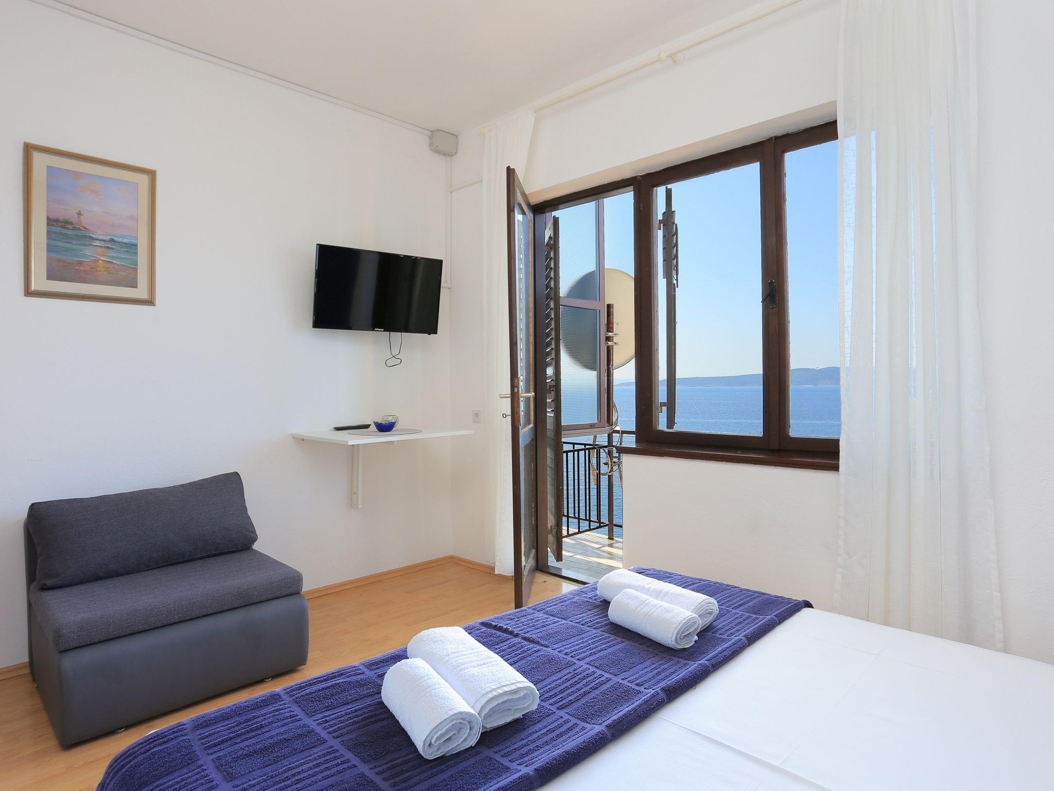 Studio bietet Platz für 2 Gäste. Die Betten sind in Schlafzimmern, die es 1 gibt, innerhalb einer Gesamtfläche von 18m2, angeordnet. Die Gäste haben einen eigenen Balkon zur Verfügung, auf der sie in warmen Sommernächten genießen können. Das Studio-Apartment bietet Meerblick. Es ist erlaubt, Speisen auf dem Gemeinschafts-Grill vorzubereiten. IM PREIS INBEGRIFFEN: Kurtaxe, Endreinigung, Klimatisierung, Parkplatz, Garage, Internet, Bügeleisen, Bügelbrett, Föhn, tragbarer Grill. VERBINDLICHE ZUSÄTZLICHE KOSTEN: Aufzahlung für Kurzaufenthalte (prozentualer Zuschlag pro Nächtigungsanzahl: 30% - 1, 20% - 2, 10% - 3). UNVERBINDLICHE ZUSÄTZLICHE KOSTEN: Wäschewaschen (5,00 € Waschen), Zusatzbett (10,00 € pro Nacht). Die Verfügbarkeit zusätzlicher Dienstleistungen in Ihrem reservierten Termin und die Preise derselben (falls nicht aufgeführt) müssen im Voraus überprüft werden. Zusätzliche Dienstleistungen die in der Zahlungsaufforderung nicht aufgeführt sind werden direkt beim Vermieter bezahlt, angenommen der Gast nutzt auch diese. Ermäßigung auf den Grundpreis: Gratistag 14=13 (bei einem Aufenthalt von 14 Tagen oder mehr erhalten Sie einen Gratistag für den Aufenthalt bis 31.12.26).