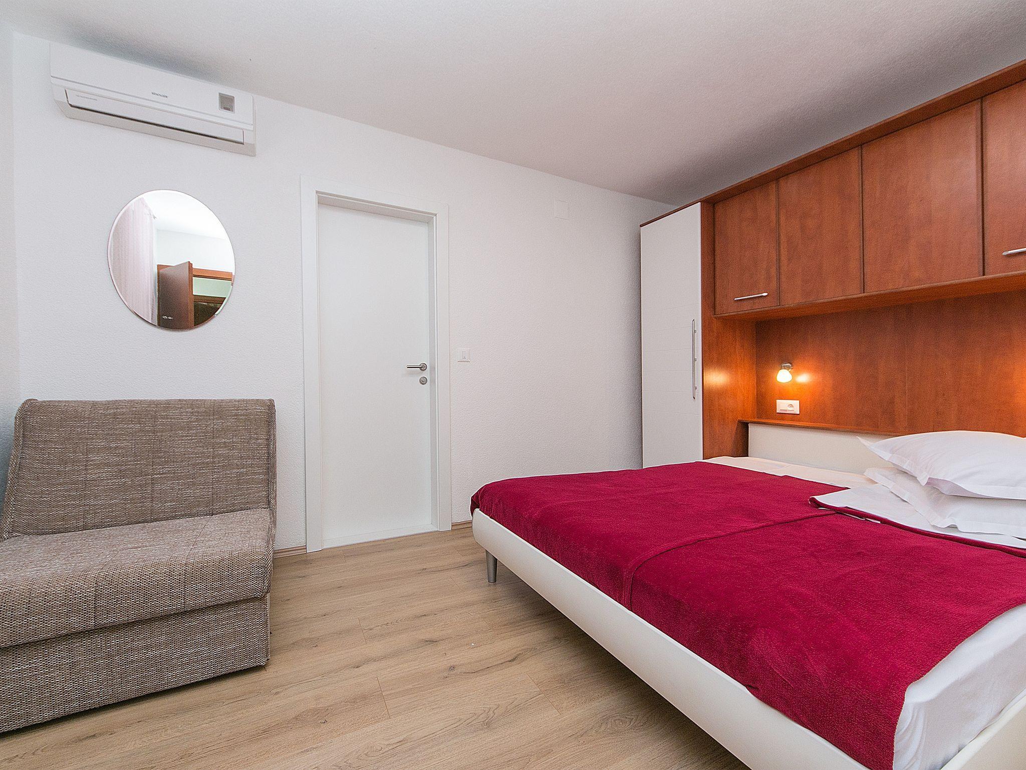 Ferienwohnung bietet Platz für 5 Gäste. Die Betten sind in Schlafzimmern, die es 2 gibt, innerhalb einer Gesamtfläche von 44m2, angeordnet. Die Gäste haben einen eigenen Balkon zur Verfügung, auf der sie in warmen Sommernächten genießen können. Für vollen Genuss und Entspannung gibt es einen privaten Grill für Gäste dieser Unterkunft. In der Unterkunftseinheit besteht die Möglichkeit des Mitbringens von Haustieren, und die Dienstleistung ist im Preis der Unterkunft enthalten. IM PREIS INBEGRIFFEN: Kurtaxe, Endreinigung, Klimatisierung, Parkplatz, Internet, Haustiere, Kinderbett. UNVERBINDLICHE ZUSÄTZLICHE KOSTEN: Zusatzbett (15,00 € pro Nacht). Die Verfügbarkeit zusätzlicher Dienstleistungen in Ihrem reservierten Termin und die Preise derselben (falls nicht aufgeführt) müssen im Voraus überprüft werden. Zusätzliche Dienstleistungen die in der Zahlungsaufforderung nicht aufgeführt sind werden direkt beim Vermieter bezahlt, angenommen der Gast nutzt auch diese.