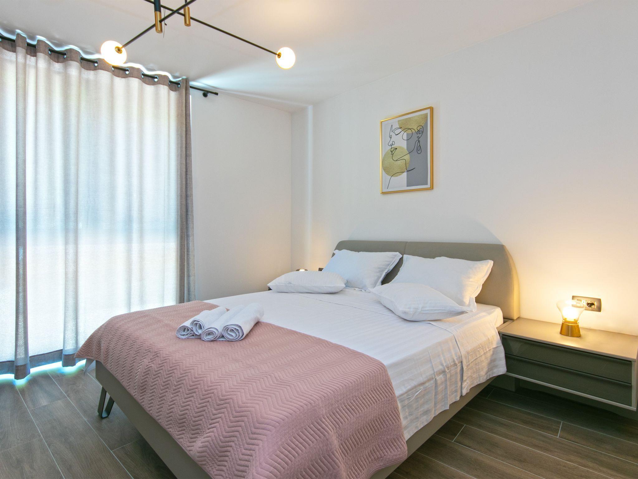 Ferienwohnung bietet Platz für 2 Gäste. Die Betten sind in Schlafzimmern, die es 1 gibt, innerhalb einer Gesamtfläche von 52m2, angeordnet. Die Gäste haben eine eigene Terrasse zur Verfügung, auf der sie in warmen Sommernächten genießen können. Das Apartment bietet Meerblick. IM PREIS INBEGRIFFEN: Kurtaxe, Endreinigung, Klimatisierung, Parkplatz, Internet, Bügeleisen, Bügelbrett, Liegestühle, 2 Kinderbettchen (im Preis enthalten). Die Verfügbarkeit zusätzlicher Dienstleistungen in Ihrem reservierten Termin und die Preise derselben (falls nicht aufgeführt) müssen im Voraus überprüft werden. Zusätzliche Dienstleistungen die in der Zahlungsaufforderung nicht aufgeführt sind werden direkt beim Vermieter bezahlt, angenommen der Gast nutzt auch diese.