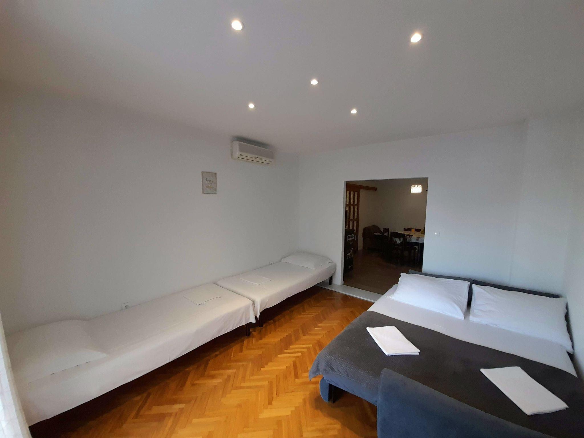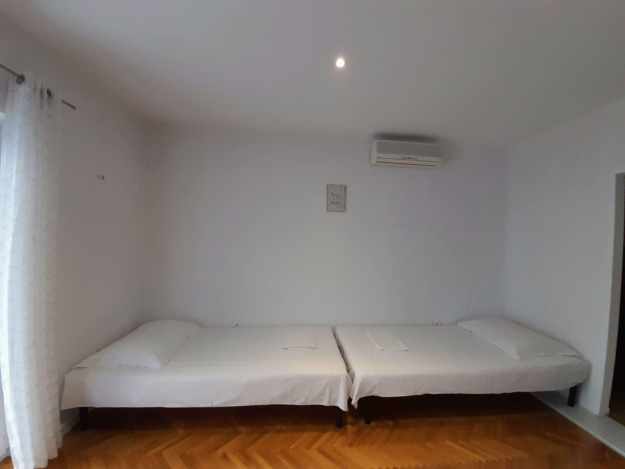 Ferienwohnung bietet Platz für 8 Gäste. Die Betten sind in Schlafzimmern, die es 2 gibt, und in Wohnzimmer, innerhalb einer Gesamtfläche von 87m2, angeordnet. Die Gäste haben eine eigene Terrasse zur Verfügung, auf der sie in warmen Sommernächten genießen können. Es ist erlaubt, Speisen auf dem Gemeinschafts-Grill vorzubereiten. IM PREIS INBEGRIFFEN: Kurtaxe, Endreinigung, Klimatisierung, Parkplatz, Internet. VERBINDLICHE ZUSÄTZLICHE KOSTEN: Aufzahlung für Kurzaufenthalte (prozentualer Zuschlag pro Nächtigungsanzahl: 30% - 1, 20% - 2, 10% - 3). Die Verfügbarkeit zusätzlicher Dienstleistungen in Ihrem reservierten Termin und die Preise derselben (falls nicht aufgeführt) müssen im Voraus überprüft werden. Zusätzliche Dienstleistungen die in der Zahlungsaufforderung nicht aufgeführt sind werden direkt beim Vermieter bezahlt, angenommen der Gast nutzt auch diese.