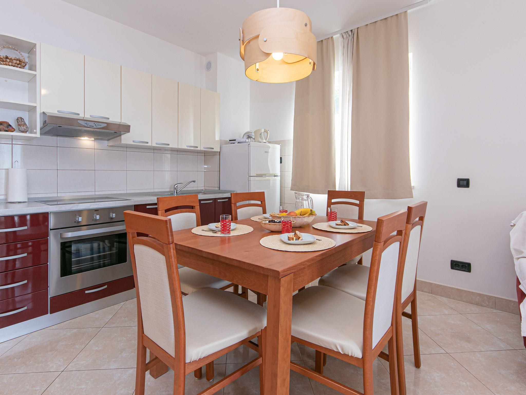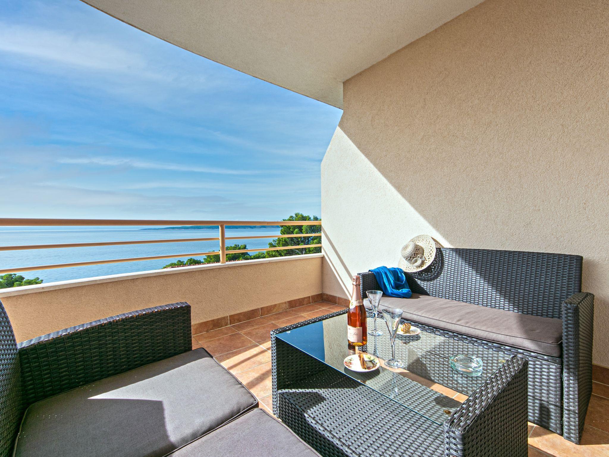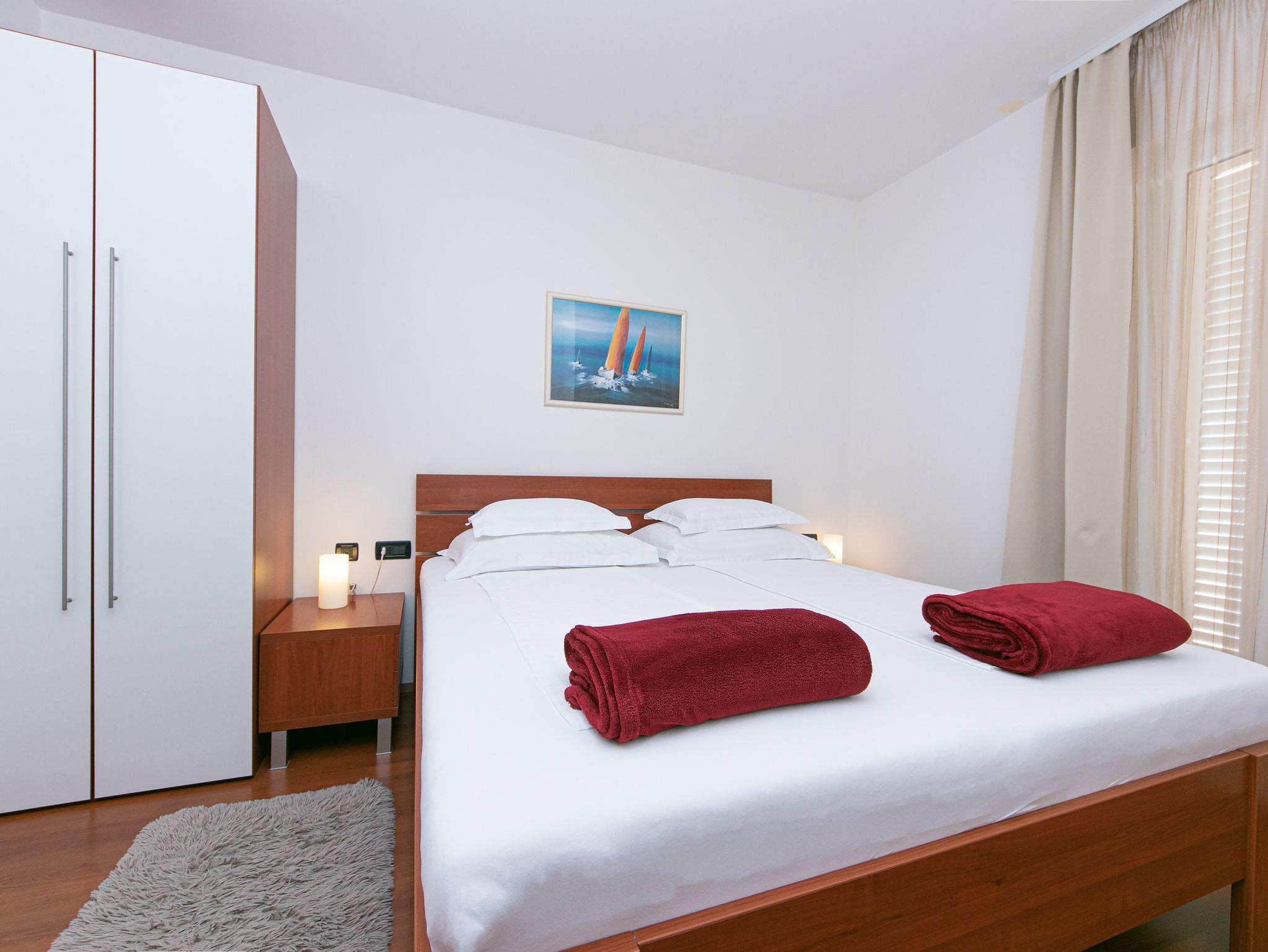 Ferienwohnung bietet Platz für 4 Gäste. Die Betten sind in Schlafzimmern, die es 2 gibt, innerhalb einer Gesamtfläche von 50m2, angeordnet. Die Gäste haben eine eigene Terrasse zur Verfügung, auf der sie in warmen Sommernächten genießen können. Das Apartment bietet Meerblick. Es ist erlaubt, Speisen auf dem Gemeinschafts-Grill vorzubereiten. Während ihres Aufenthalts können Gäste das gemeinsam zur Nutzung stehende Schwimmbad benutzen. In der Unterkunftseinheit besteht die Möglichkeit des Mitbringens von Haustieren gegen Aufpreis. IM PREIS INBEGRIFFEN: Kurtaxe, Endreinigung, Klimatisierung, Zentralheizung, Pool, Parkplatz, Internet, Wäschewaschen, Kinderbett, Bügeleisen, Bügelbrett, Föhn. UNVERBINDLICHE ZUSÄTZLICHE KOSTEN: Haustiere (10,00 € pro Nacht). Die Verfügbarkeit zusätzlicher Dienstleistungen in Ihrem reservierten Termin und die Preise derselben (falls nicht aufgeführt) müssen im Voraus überprüft werden. Zusätzliche Dienstleistungen die in der Zahlungsaufforderung nicht aufgeführt sind werden direkt beim Vermieter bezahlt, angenommen der Gast nutzt auch diese. Ermäßigung auf den Grundpreis: Gratistag 14=13 (bei einem Aufenthalt von 14 Tagen oder mehr erhalten Sie einen Gratistag für den Aufenthalt bis 31.12.26).