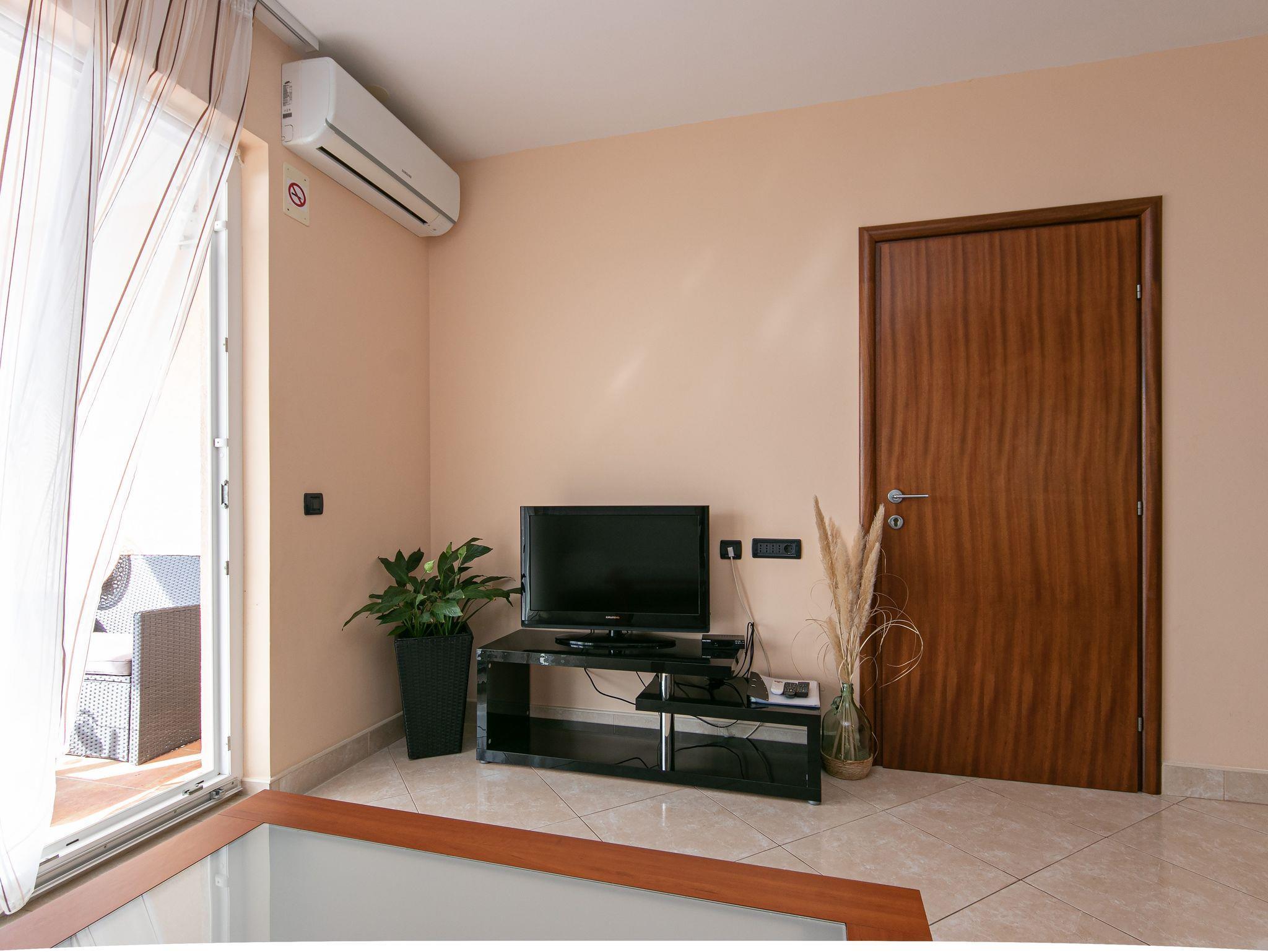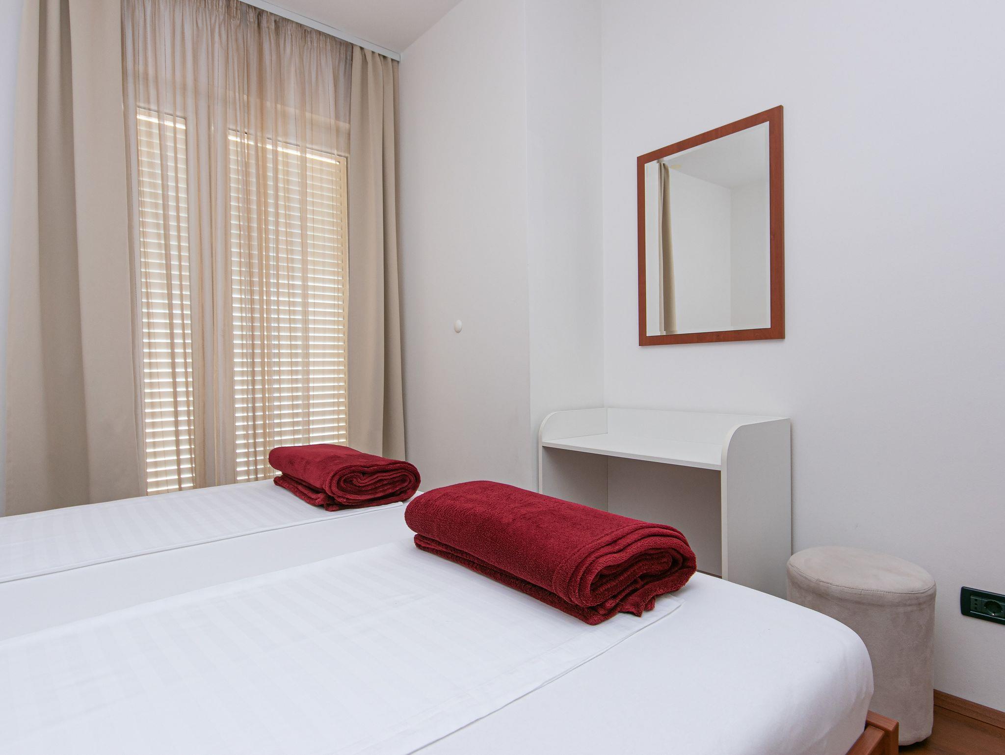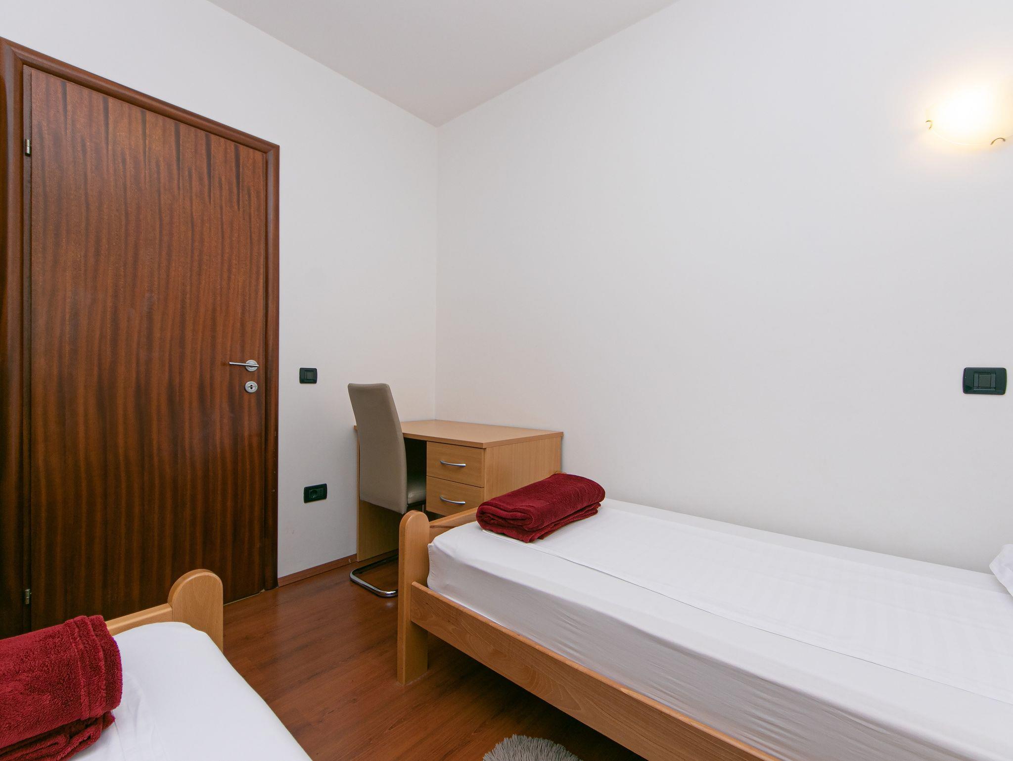 Ferienwohnung bietet Platz für 4 Gäste. Die Betten sind in Schlafzimmern, die es 2 gibt, innerhalb einer Gesamtfläche von 50m2, angeordnet. Die Gäste haben eine eigene Terrasse zur Verfügung, auf der sie in warmen Sommernächten genießen können. Das Apartment bietet Meerblick. Es ist erlaubt, Speisen auf dem Gemeinschafts-Grill vorzubereiten. Während ihres Aufenthalts können Gäste das gemeinsam zur Nutzung stehende Schwimmbad benutzen. In der Unterkunftseinheit besteht die Möglichkeit des Mitbringens von Haustieren gegen Aufpreis. IM PREIS INBEGRIFFEN: Kurtaxe, Endreinigung, Klimatisierung, Zentralheizung, Pool, Parkplatz, Internet, Wäschewaschen, Kinderbett, Bügeleisen, Bügelbrett, Föhn. UNVERBINDLICHE ZUSÄTZLICHE KOSTEN: Haustiere (10,00 € pro Nacht). Die Verfügbarkeit zusätzlicher Dienstleistungen in Ihrem reservierten Termin und die Preise derselben (falls nicht aufgeführt) müssen im Voraus überprüft werden. Zusätzliche Dienstleistungen die in der Zahlungsaufforderung nicht aufgeführt sind werden direkt beim Vermieter bezahlt, angenommen der Gast nutzt auch diese. Ermäßigung auf den Grundpreis: Gratistag 14=13 (bei einem Aufenthalt von 14 Tagen oder mehr erhalten Sie einen Gratistag für den Aufenthalt bis 31.12.26).