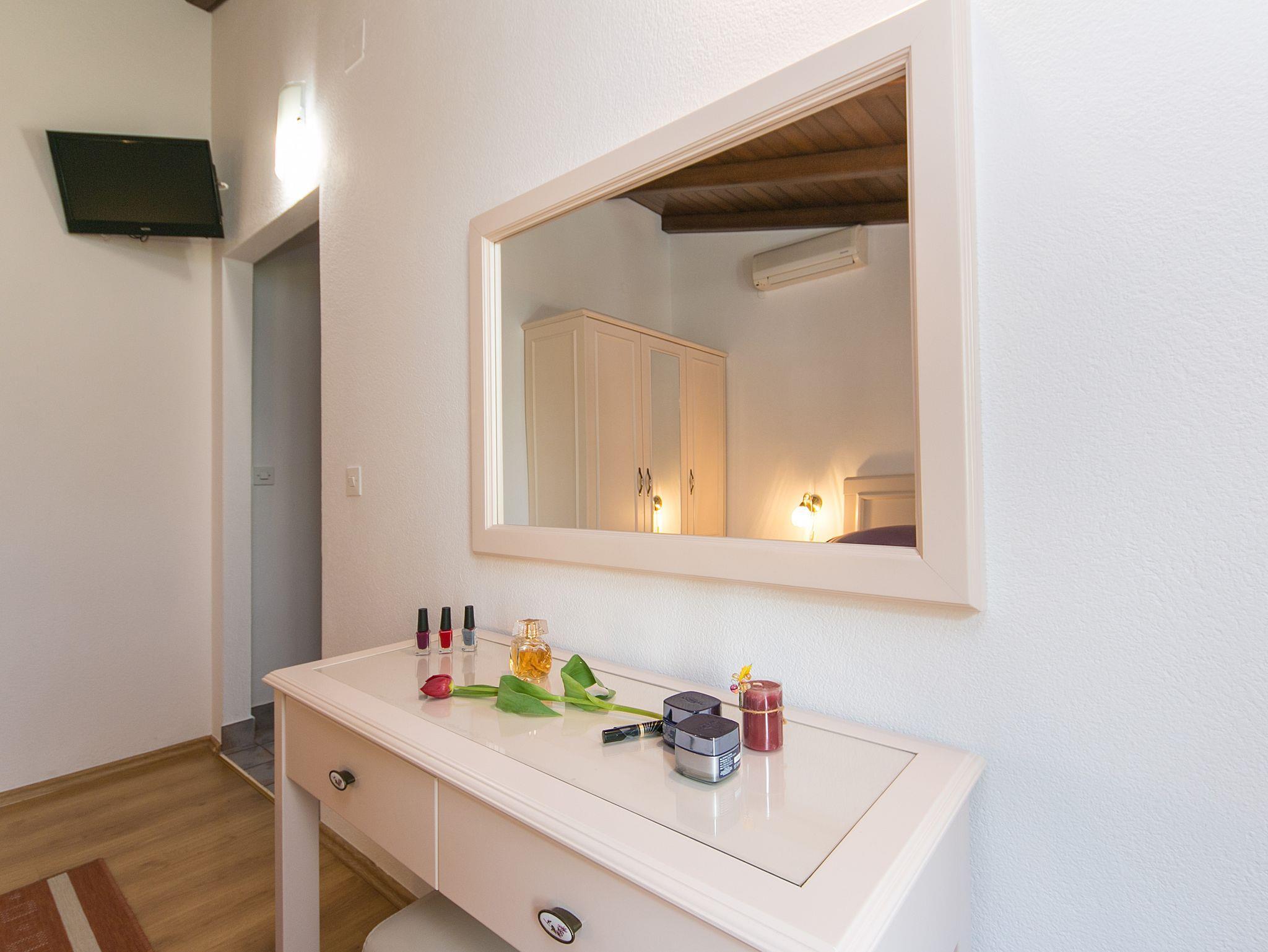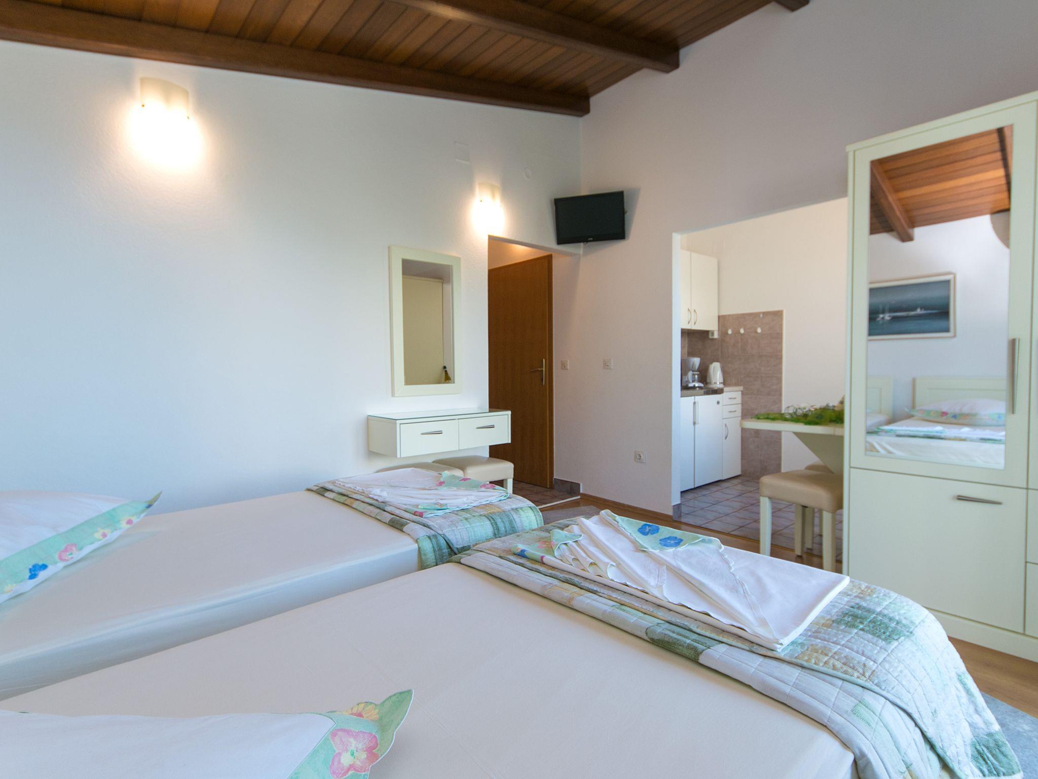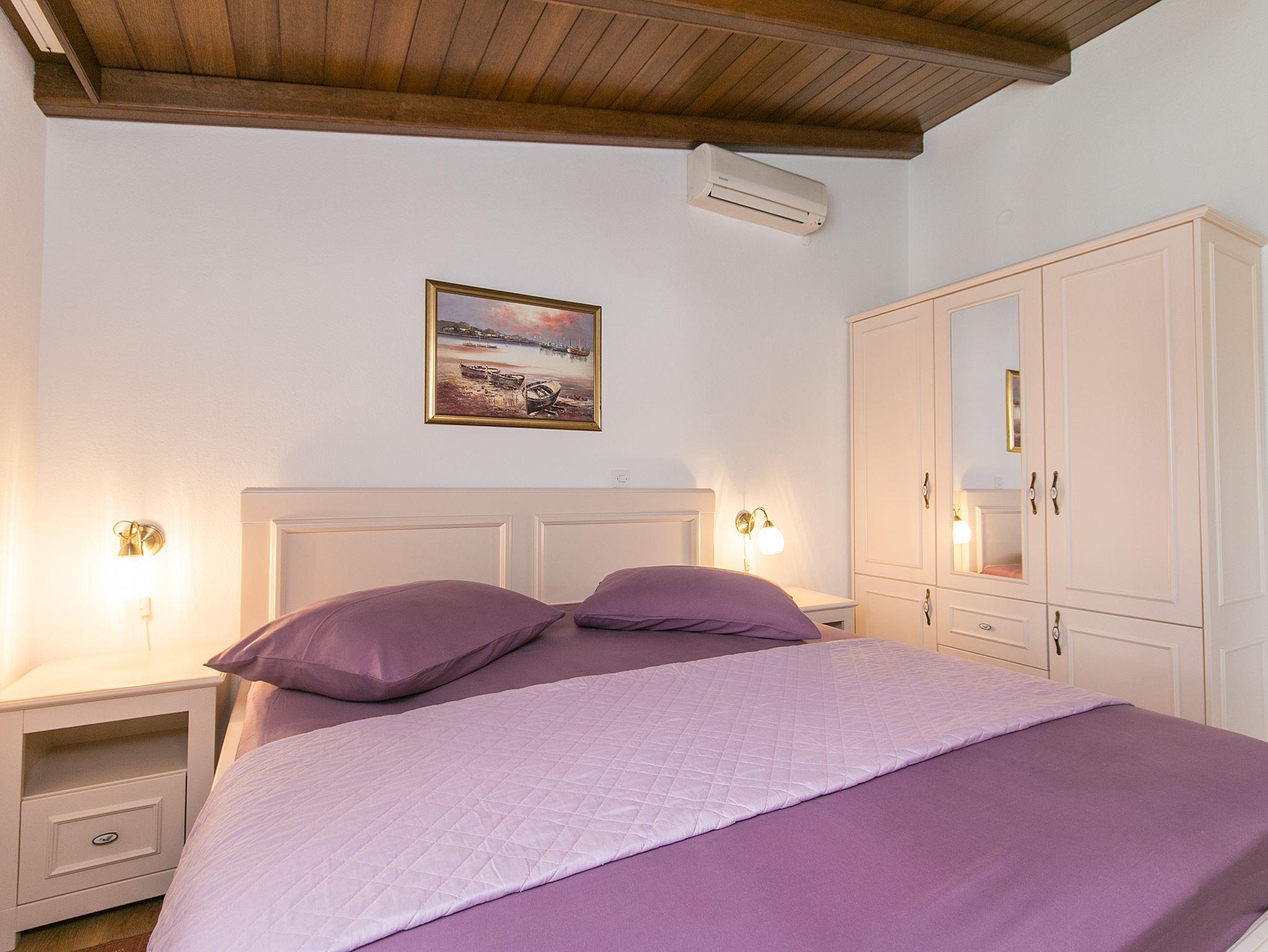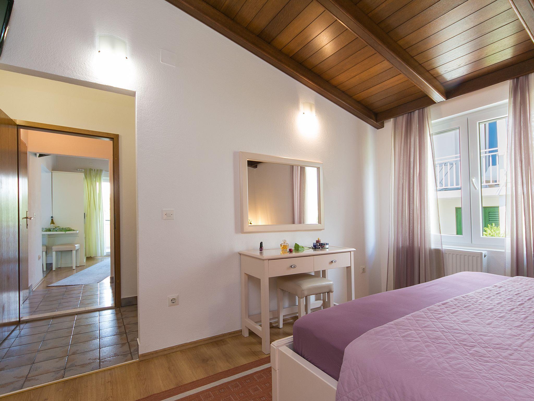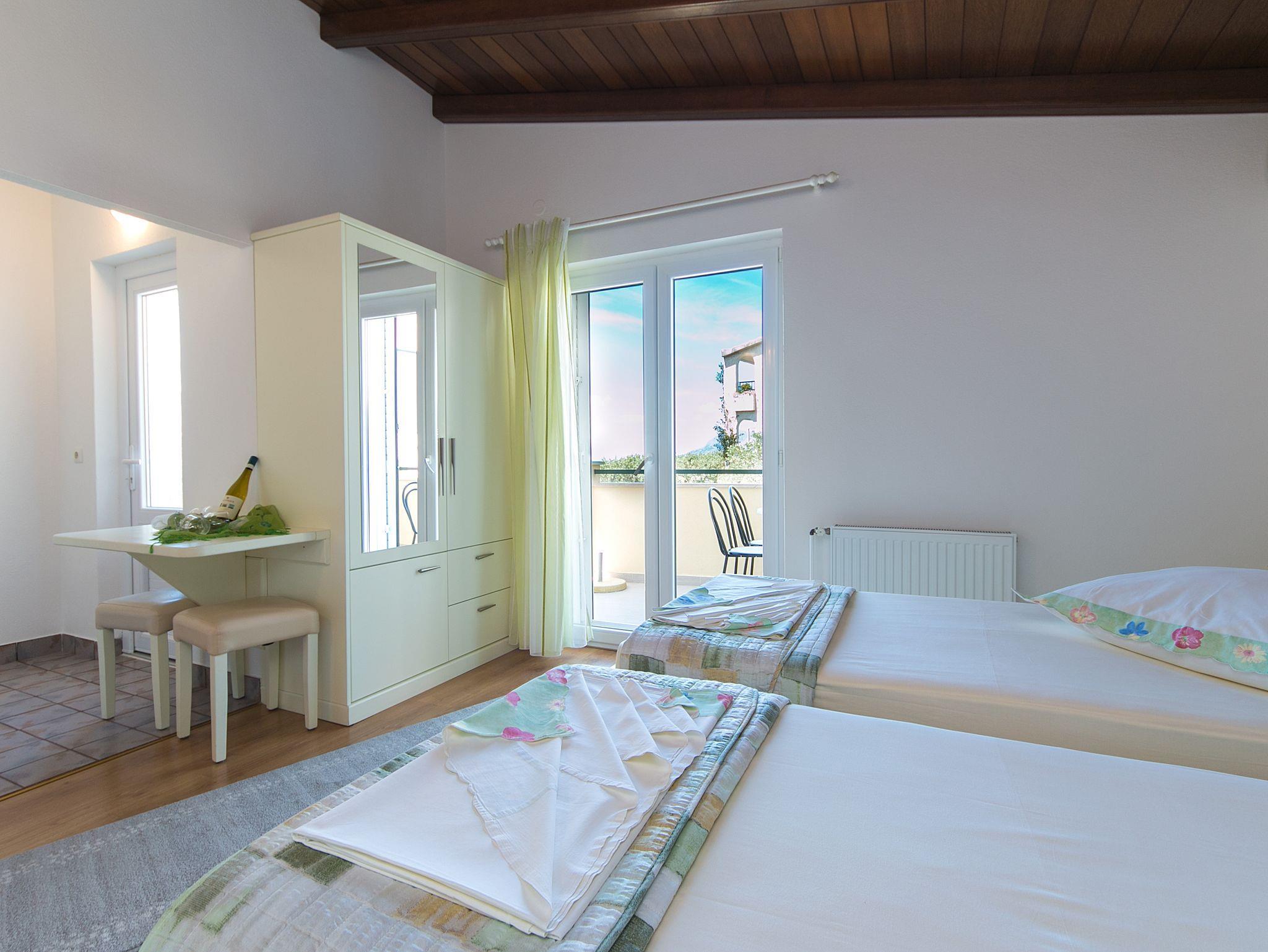 Ferienwohnung bietet Platz für 4 Gäste. Die Betten sind in Schlafzimmern, die es 2 gibt, innerhalb einer Gesamtfläche von 40m2, angeordnet. Die Gäste haben einen eigenen Balkon zur Verfügung, auf der sie in warmen Sommernächten genießen können. Das Apartment bietet Meerblick. IM PREIS INBEGRIFFEN: Kurtaxe, Endreinigung, Parkplatz, Internet, Föhn. VERBINDLICHE ZUSÄTZLICHE KOSTEN: Aufzahlung für Kurzaufenthalte (prozentualer Zuschlag pro Nächtigungsanzahl: 30% - 1, 20% - 2, 10% - 3). UNVERBINDLICHE ZUSÄTZLICHE KOSTEN: Klimatisierung (5,00 € pro Nacht), Wäschewaschen (10,00 € Waschen), Zusatzbett (15,00 € pro Nacht). Die Verfügbarkeit zusätzlicher Dienstleistungen in Ihrem reservierten Termin und die Preise derselben (falls nicht aufgeführt) müssen im Voraus überprüft werden. Zusätzliche Dienstleistungen die in der Zahlungsaufforderung nicht aufgeführt sind werden direkt beim Vermieter bezahlt, angenommen der Gast nutzt auch diese.