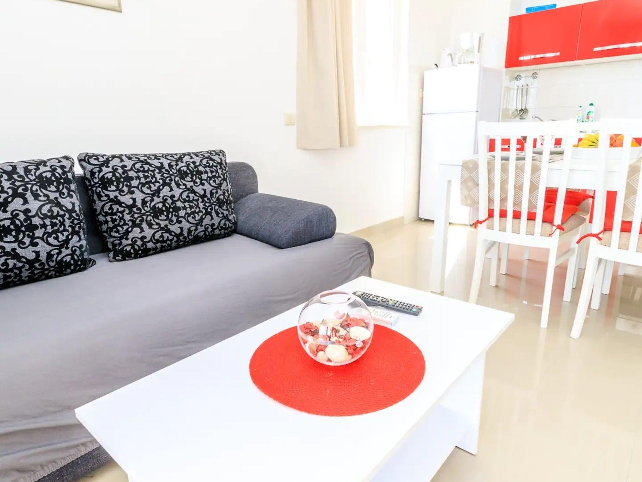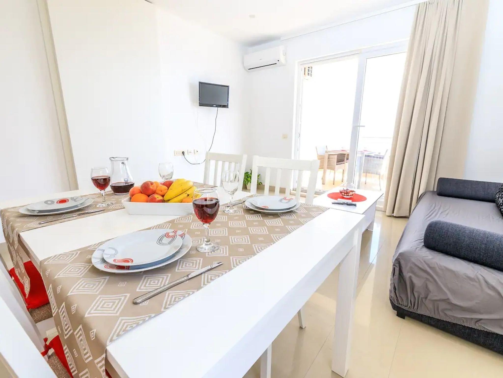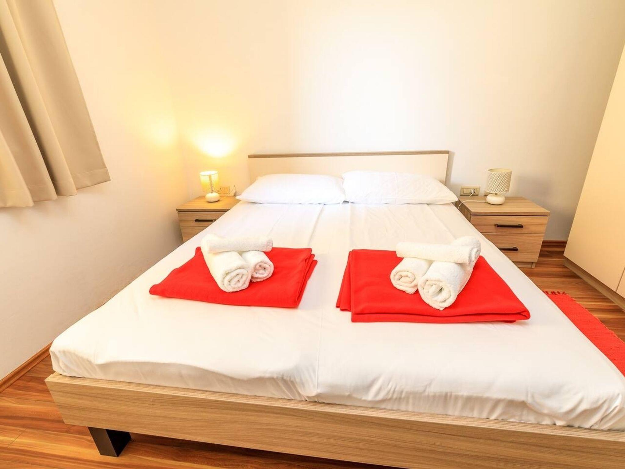 Ferienwohnung bietet Platz für 4 Gäste. Die Betten sind in Schlafzimmern, die es 2 gibt, innerhalb einer Gesamtfläche von 50m2, angeordnet. Die Gäste haben eine eigene Terrasse zur Verfügung, auf der sie in warmen Sommernächten genießen können. Das Apartment bietet Meerblick. Während ihres Aufenthalts können Gäste das gemeinsam zur Nutzung stehende Schwimmbad benutzen. IM PREIS INBEGRIFFEN: Kurtaxe, Endreinigung, Klimatisierung, Pool, Parkplatz, Internet, Bügeleisen, Bügelbrett, Föhn. UNVERBINDLICHE ZUSÄTZLICHE KOSTEN: Zusatzbett (10,00 € pro Nacht). Die Verfügbarkeit zusätzlicher Dienstleistungen in Ihrem reservierten Termin und die Preise derselben (falls nicht aufgeführt) müssen im Voraus überprüft werden. Zusätzliche Dienstleistungen die in der Zahlungsaufforderung nicht aufgeführt sind werden direkt beim Vermieter bezahlt, angenommen der Gast nutzt auch diese.