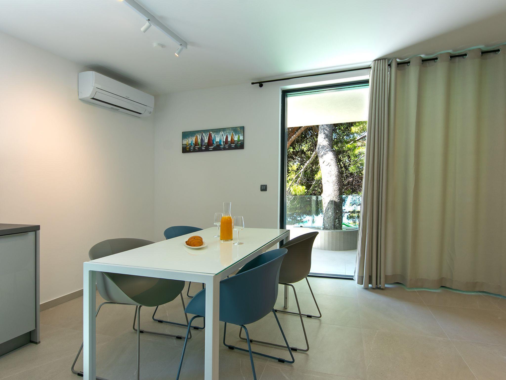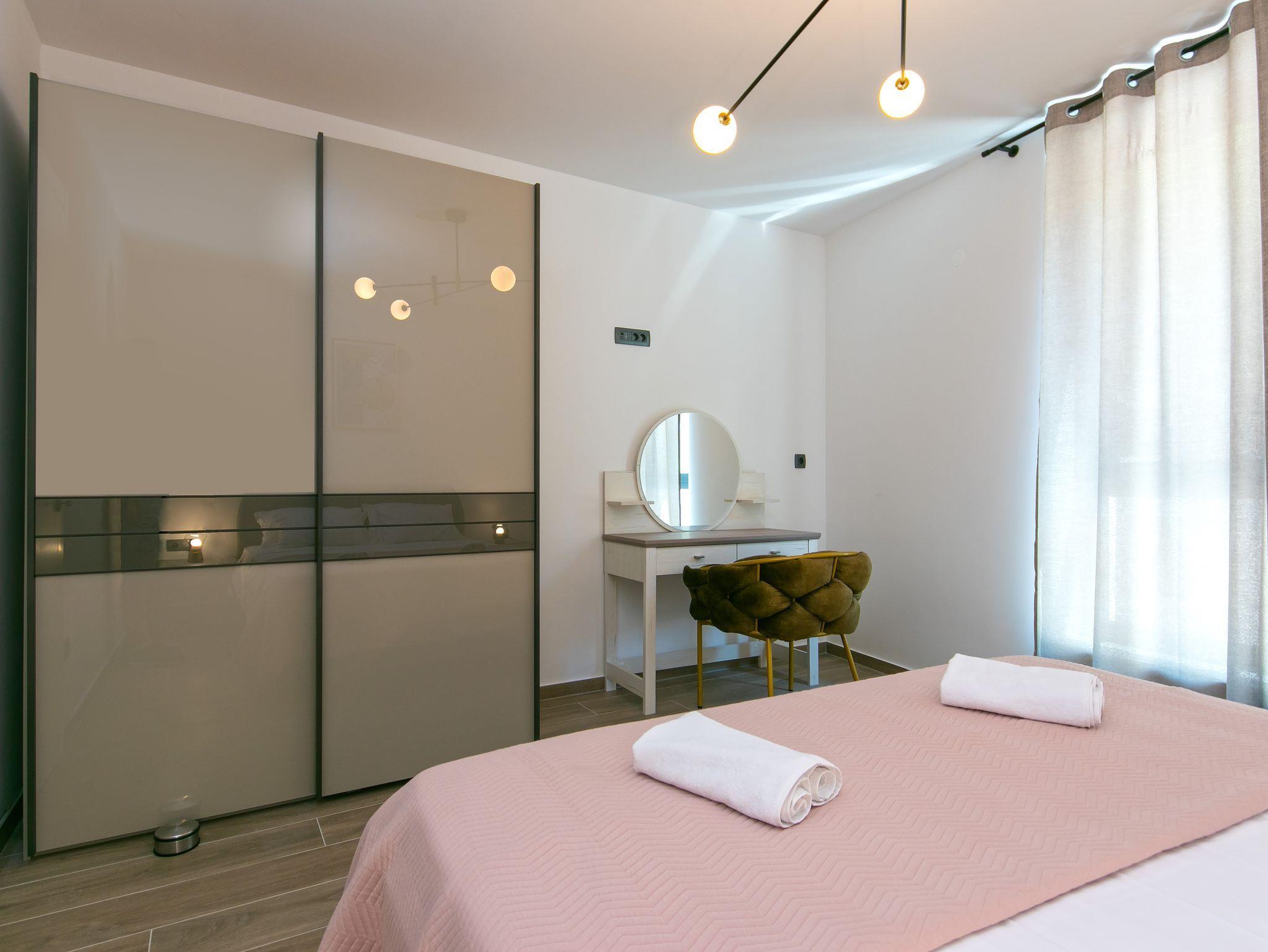 Ferienwohnung bietet Platz für 2 Gäste. Die Betten sind in Schlafzimmern, die es 1 gibt, innerhalb einer Gesamtfläche von 49m2, angeordnet. Die Gäste haben eine eigene Terrasse zur Verfügung, auf der sie in warmen Sommernächten genießen können. Das Apartment bietet Meerblick. IM PREIS INBEGRIFFEN: Kurtaxe, Endreinigung, Klimatisierung, Parkplatz, Internet, Bügeleisen, Bügelbrett, Liegestühle, 2 Kinderbettchen (im Preis enthalten). Die Verfügbarkeit zusätzlicher Dienstleistungen in Ihrem reservierten Termin und die Preise derselben (falls nicht aufgeführt) müssen im Voraus überprüft werden. Zusätzliche Dienstleistungen die in der Zahlungsaufforderung nicht aufgeführt sind werden direkt beim Vermieter bezahlt, angenommen der Gast nutzt auch diese.