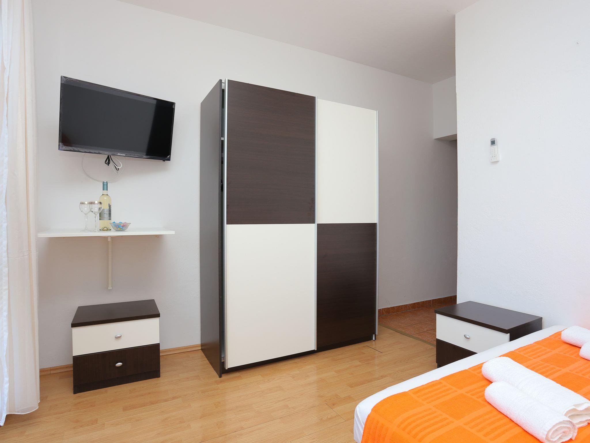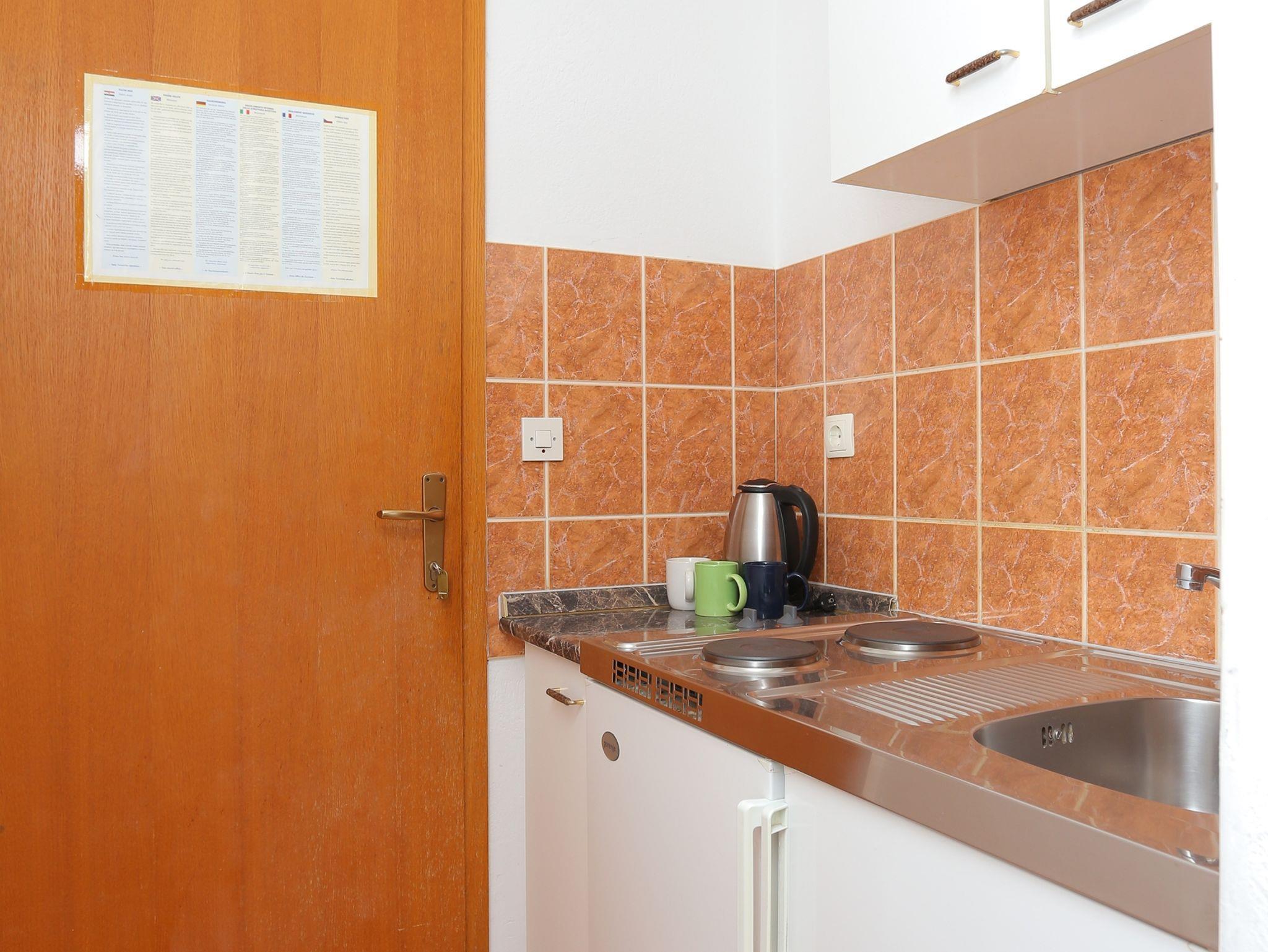 Studio bietet Platz für 3 Gäste. Die Betten sind in Schlafzimmern, die es 1 gibt, innerhalb einer Gesamtfläche von 17m2, angeordnet. Die Gäste haben einen eigenen Balkon zur Verfügung, auf der sie in warmen Sommernächten genießen können. Das Studio-Apartment bietet Meerblick. Es ist erlaubt, Speisen auf dem Gemeinschafts-Grill vorzubereiten. IM PREIS INBEGRIFFEN: Kurtaxe, Endreinigung, Klimatisierung, Parkplatz, Garage, Internet, Bügeleisen, Bügelbrett, Föhn, tragbarer Grill. VERBINDLICHE ZUSÄTZLICHE KOSTEN: Aufzahlung für Kurzaufenthalte (prozentualer Zuschlag pro Nächtigungsanzahl: 30% - 1, 20% - 2, 10% - 3). UNVERBINDLICHE ZUSÄTZLICHE KOSTEN: Wäschewaschen (5,00 € Waschen). Die Verfügbarkeit zusätzlicher Dienstleistungen in Ihrem reservierten Termin und die Preise derselben (falls nicht aufgeführt) müssen im Voraus überprüft werden. Zusätzliche Dienstleistungen die in der Zahlungsaufforderung nicht aufgeführt sind werden direkt beim Vermieter bezahlt, angenommen der Gast nutzt auch diese. Ermäßigung auf den Grundpreis: Gratistag 14=13 (bei einem Aufenthalt von 14 Tagen oder mehr erhalten Sie einen Gratistag für den Aufenthalt bis 31.12.26).
