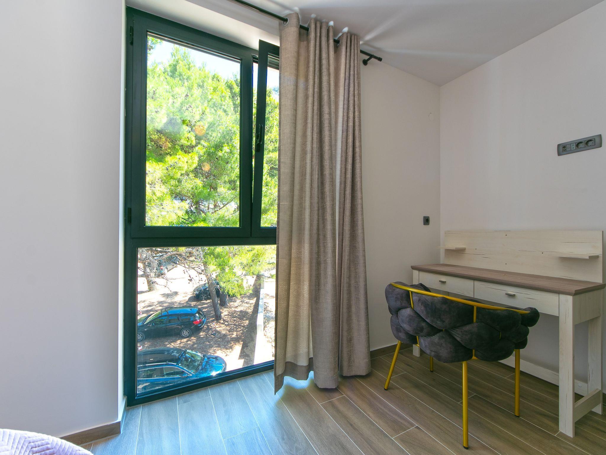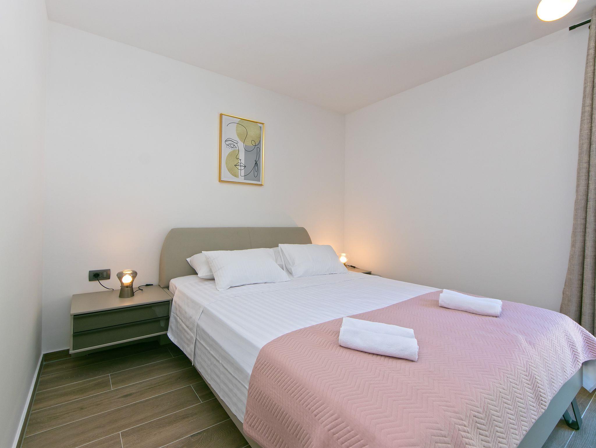Ferienwohnung bietet Platz für 2 Gäste. Die Betten sind in Schlafzimmern, die es 1 gibt, innerhalb einer Gesamtfläche von 51m2, angeordnet. Die Gäste haben eine eigene Terrasse zur Verfügung, auf der sie in warmen Sommernächten genießen können. Das Apartment bietet Meerblick. IM PREIS INBEGRIFFEN: Kurtaxe, Endreinigung, Klimatisierung, Parkplatz, Internet, Bügeleisen, Bügelbrett, Liegestühle, 2 Kinderbettchen (im Preis enthalten). Die Verfügbarkeit zusätzlicher Dienstleistungen in Ihrem reservierten Termin und die Preise derselben (falls nicht aufgeführt) müssen im Voraus überprüft werden. Zusätzliche Dienstleistungen die in der Zahlungsaufforderung nicht aufgeführt sind werden direkt beim Vermieter bezahlt, angenommen der Gast nutzt auch diese.