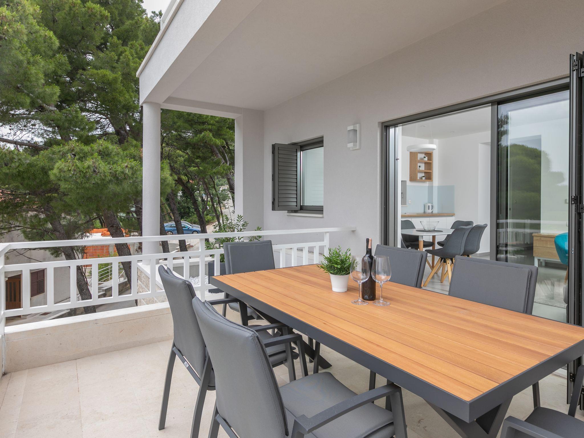 Ferienwohnung bietet Platz für 6 Gäste. Die Betten sind in Schlafzimmern, die es 2 gibt, und in Wohnzimmer, innerhalb einer Gesamtfläche von 55m2, angeordnet. Die Gäste haben eine eigene Terrasse zur Verfügung, auf der sie in warmen Sommernächten genießen können. Das Apartment bietet Meerblick. Es ist erlaubt, Speisen auf dem Gemeinschafts-Grill vorzubereiten. Während ihres Aufenthalts können Gäste das gemeinsam zur Nutzung stehende Schwimmbad benutzen. In der Unterkunftseinheit besteht die Möglichkeit des Mitbringens von Haustieren gegen Aufpreis. IM PREIS INBEGRIFFEN: Kurtaxe, Endreinigung, Klimatisierung, Pool, Internet, Kinderbett, Föhn, tragbarer Grill. UNVERBINDLICHE ZUSÄTZLICHE KOSTEN: Haustiere (10,00 € pro Nacht). Die Verfügbarkeit zusätzlicher Dienstleistungen in Ihrem reservierten Termin und die Preise derselben (falls nicht aufgeführt) müssen im Voraus überprüft werden. Zusätzliche Dienstleistungen die in der Zahlungsaufforderung nicht aufgeführt sind werden direkt beim Vermieter bezahlt, angenommen der Gast nutzt auch diese.