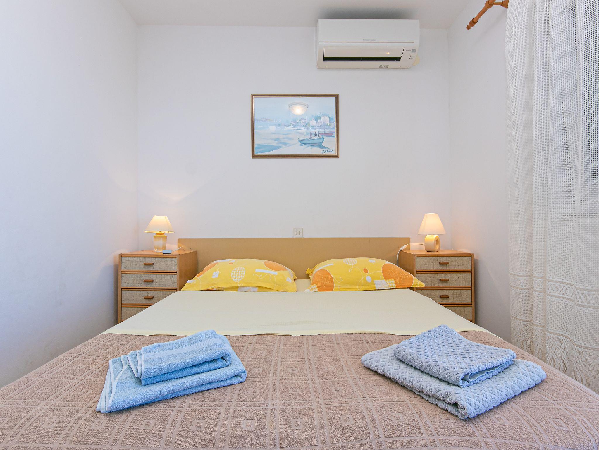 Ferienwohnung bietet Platz für 6 Gäste. Die Betten sind in Schlafzimmern, die es 3 gibt, innerhalb einer Gesamtfläche von 79m2, angeordnet. Die Gäste haben eine eigene Terrasse zur Verfügung, auf der sie in warmen Sommernächten genießen können. Das Apartment bietet Meerblick. IM PREIS INBEGRIFFEN: Kurtaxe, Endreinigung, Klimatisierung, Garage, Internet, Zusatzbett, Bügeleisen, Föhn. Die Verfügbarkeit zusätzlicher Dienstleistungen in Ihrem reservierten Termin und die Preise derselben (falls nicht aufgeführt) müssen im Voraus überprüft werden. Zusätzliche Dienstleistungen die in der Zahlungsaufforderung nicht aufgeführt sind werden direkt beim Vermieter bezahlt, angenommen der Gast nutzt auch diese.