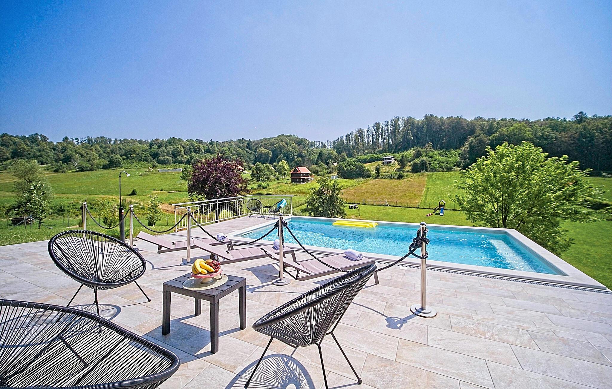 Gönnen Sie sich einen unvergesslichen Urlaub in diesem schönen Ferienhaus mit Pool in idyllischer Lage.
