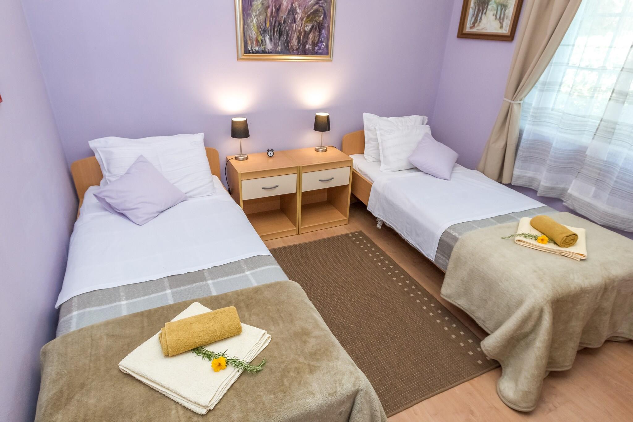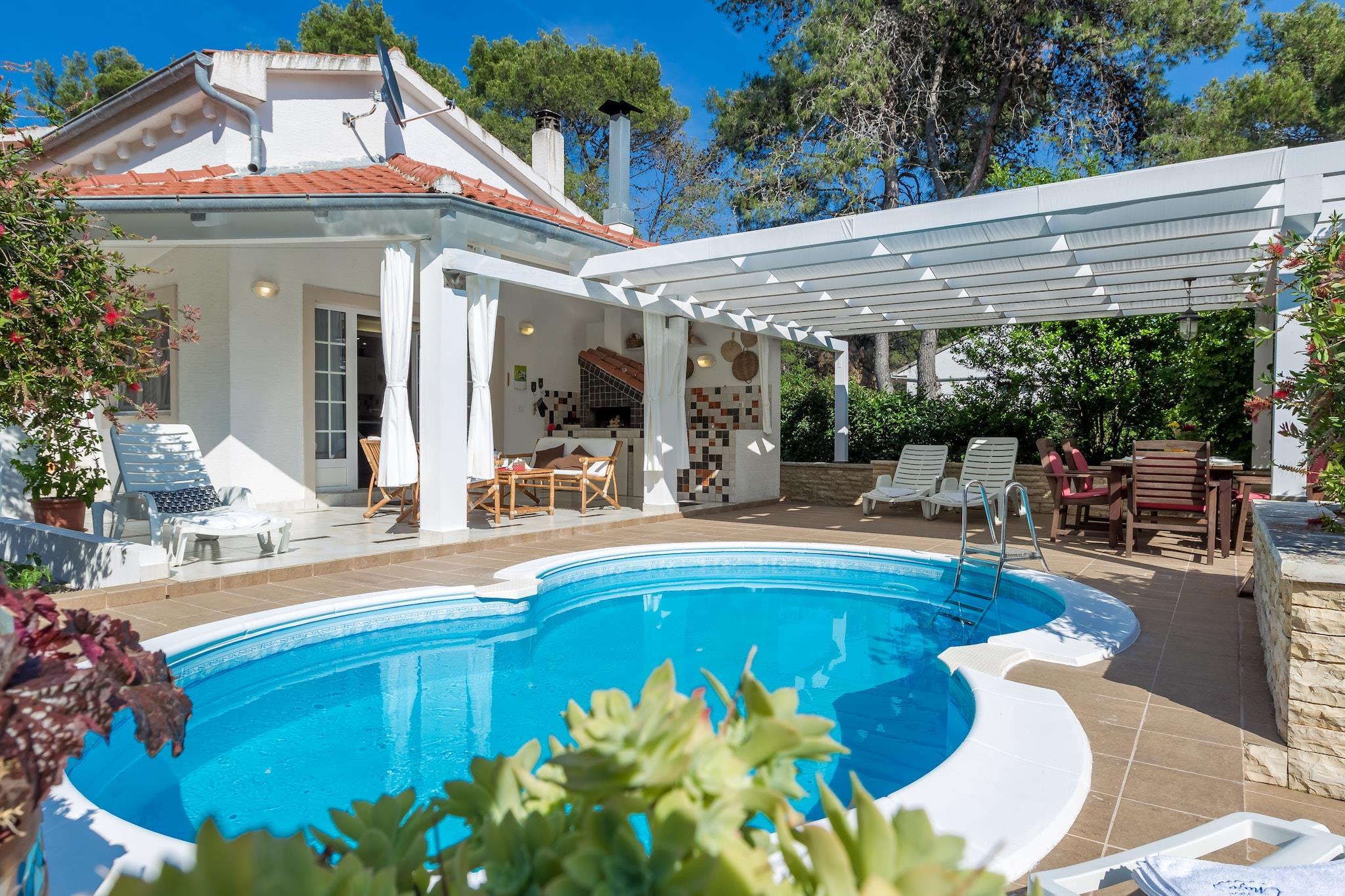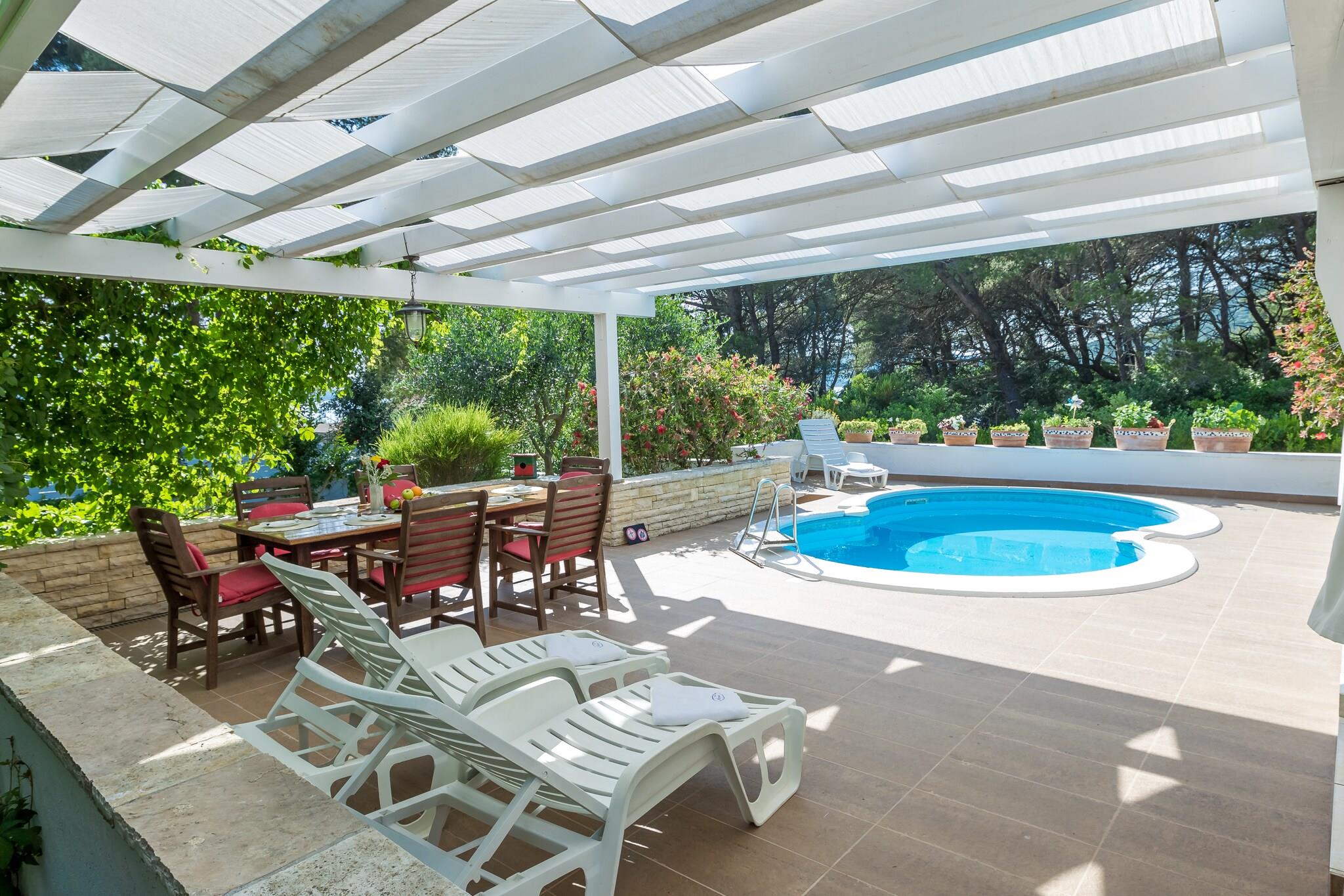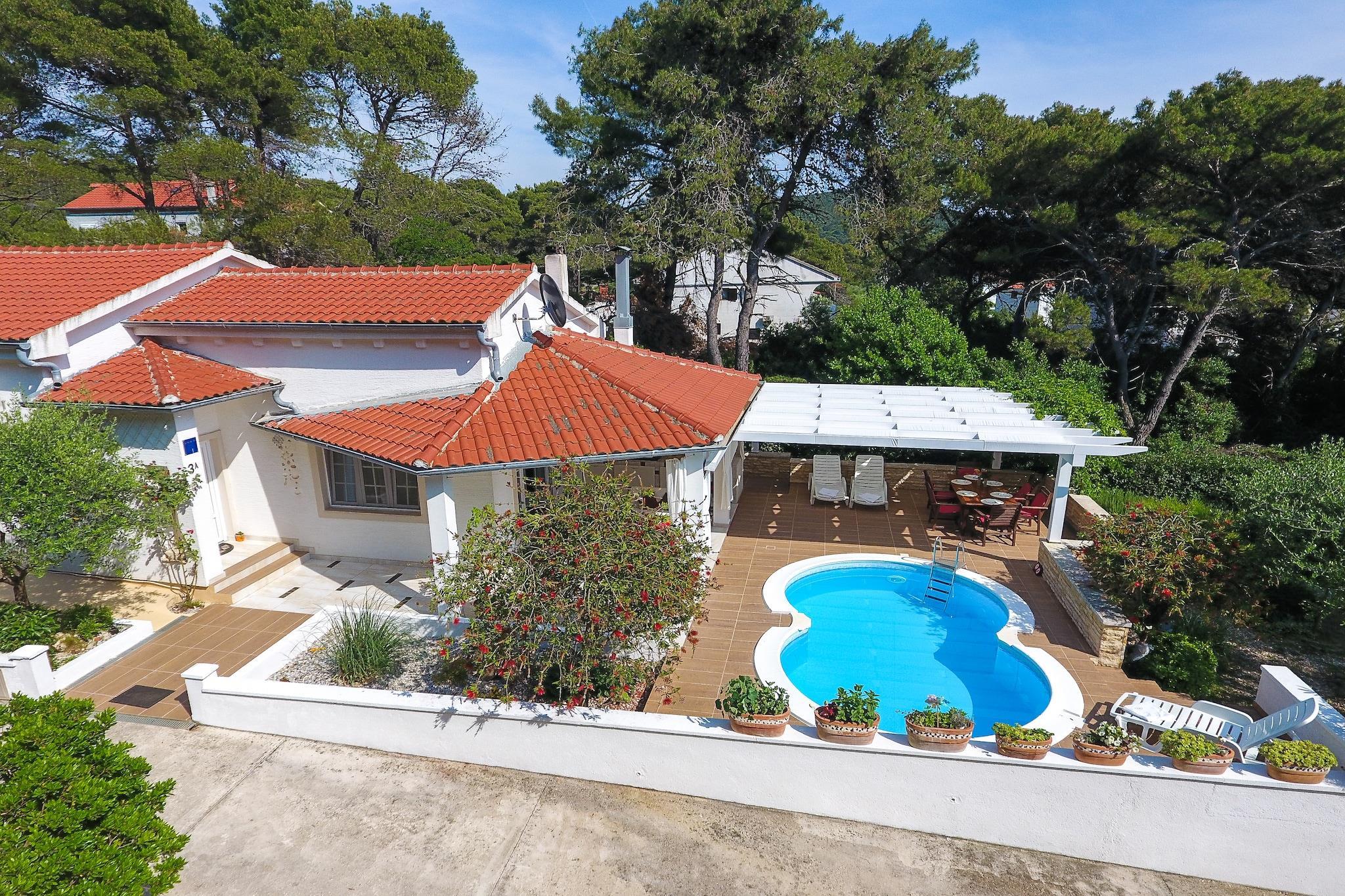 Die Ferienwohnung mit eigenem Pool befindet sich im Dorf Brgulje, auf der Insel Molat, Archipel Zadar. Ihr Haus bietet vollen Komfort und Privatsphäre, sowie Klimaanlage, eine voll ausgestattete Küche, große Schlaf- und Badezimmer, Gartenmöbel, Liegestühle, Sonnenschirm. Die überdachte Terrasse mit Außenküche und Grill ist ein wundervoller Platz zum Sitzen. Das Haus ist von einem schönen Garten umgeben und befindet sich 80 Meter vom Strand entfernt. Brgulje zeichnet sich durch wunderschöne Strände und zahlreiche Buchten aus. Wenn Sie nach einem Urlaub mit viel Privatsphäre und wunderschöner Natur suchen, ist Brgulje der ideale Ort für Sie. Eine exzellente Landverbindung erleichtert es, sie zu erreichen und sie sind für Familien mit kleinen Kindern geeignet. Zadar ist das städtische Zentrum von Norddalmatien und dient als administratives, wirtschaftliches, kulturelles und politisches Zentrum der Region mit 75.000 Einwohnern. Das Archipel zählt 24 größere und ungefähr 300 kleinere Inselchen und Felsen, 3 Naturparks - Telašcica, Velebit und Vransko jezero und 5 Nationalparks - Paklenica, Plitvice lakes, Kornati-Inseln, Krka und Sjeverni Velebit. Zadars Altstadt bietet zahlreiche Sehenswürdigkeiten, die alle innerhalb eines kurzen Spaziergangs erreichbar sind.