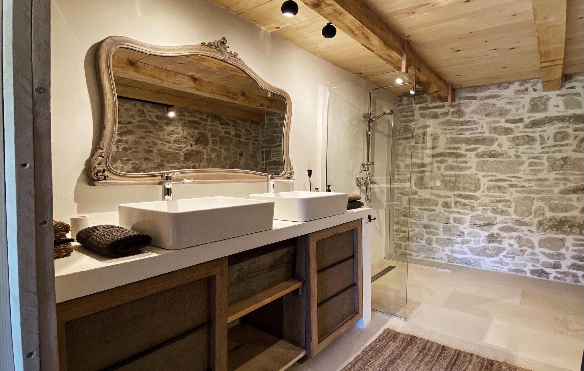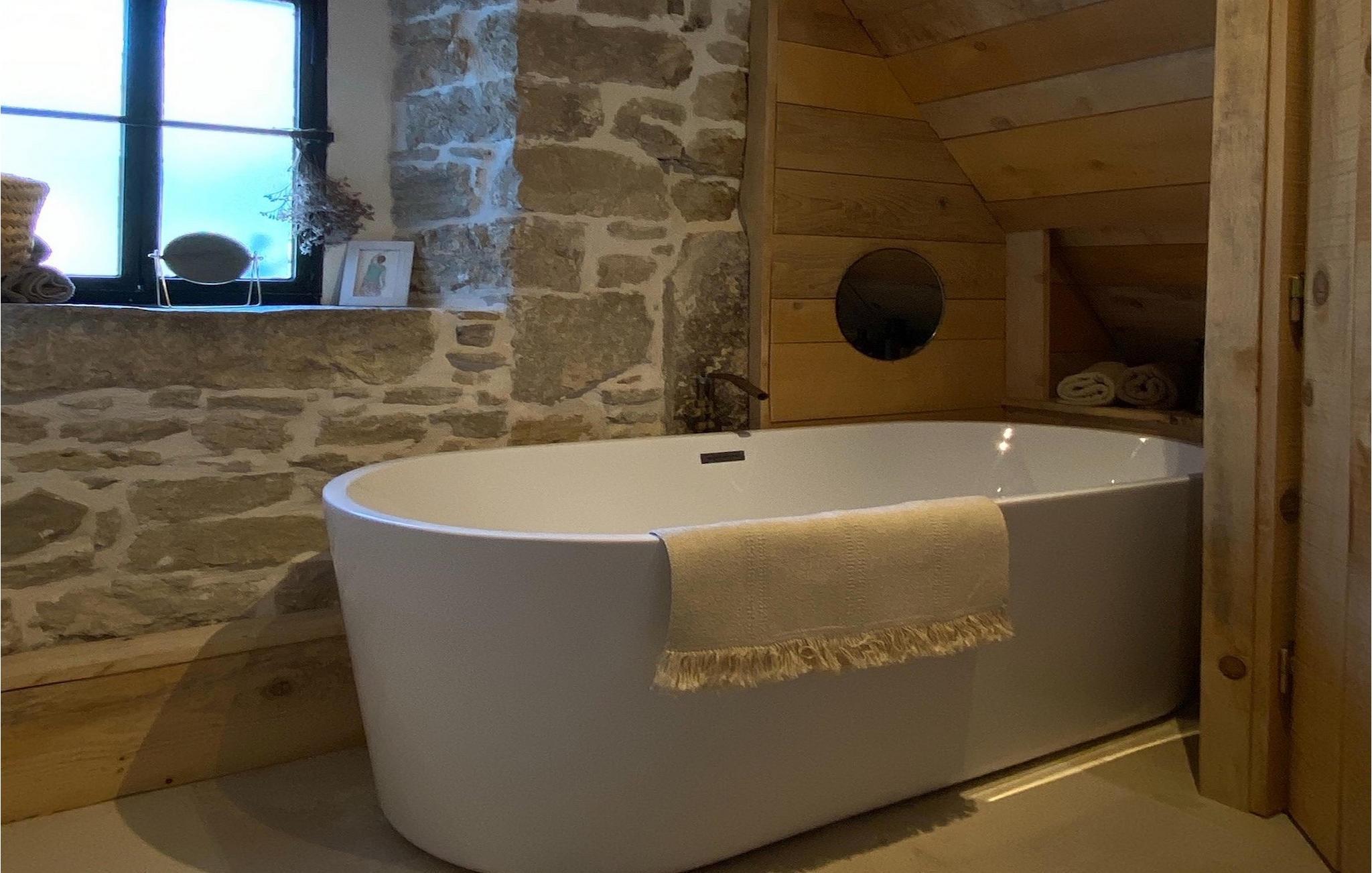 Auf der ersten Etage versprechen zwei Schlafzimmer mit Doppelbett erholsame Nächte. Ein separates Badezimmer ist mit einer Badewanne ausgestattet. Dort können Sie ein Bad nehmen, Kerzen anzünden und sich einfach entspannen. Nachdem Sie ein Bad genossen haben, können Sie sich ein kühles Getränk auf der charmanten oberen Terrasse gönnen, die durch eines der Schlafzimmer zugänglich ist.
