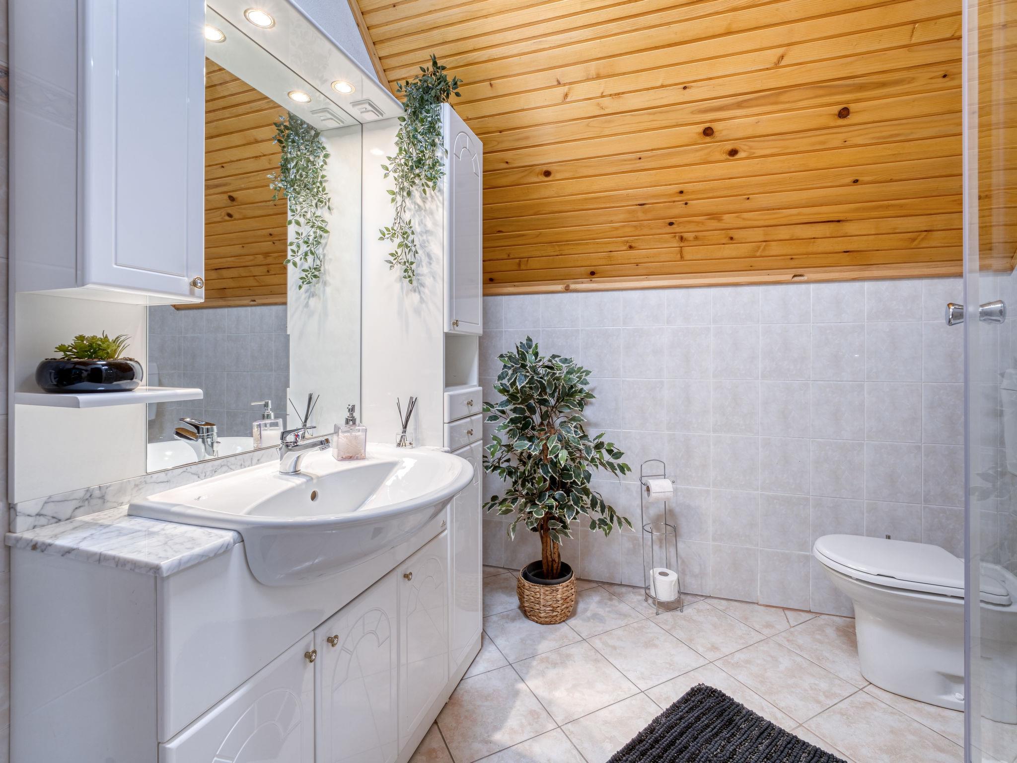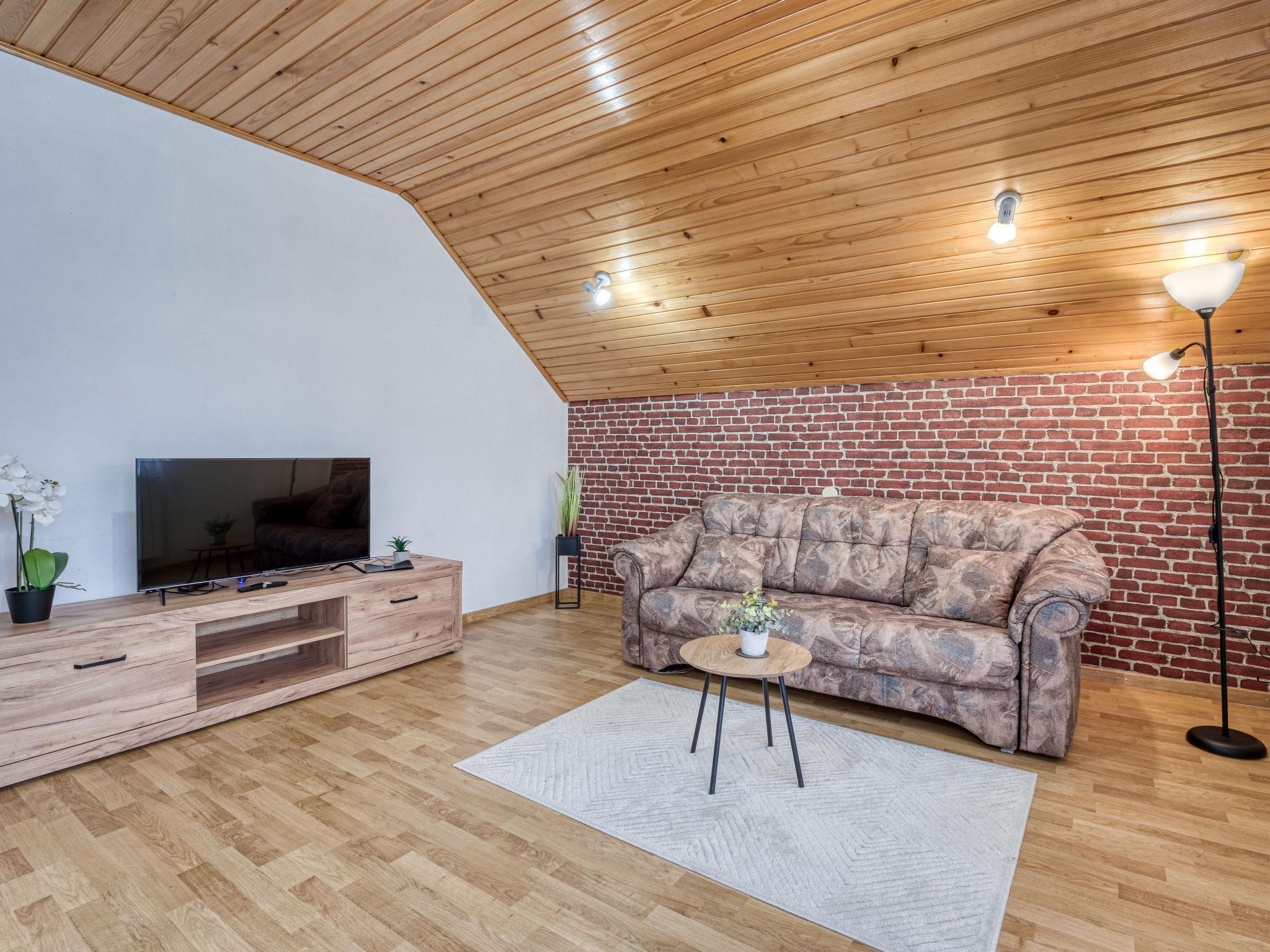 3-Zimmer-Wohnung 100 m2, im Dachgeschoss. Abgeschrägtes Wohn-/Esszimmer, Deckenhöhe 140 - 270 cm mit Kabel-TV. Ausgang zum Balkon. 1 abgeschrägtes Zimmer, Deckenhöhe 140 - 270 cm mit 1 Doppelbett (2 x 90 cm, Länge 200 cm). 1 abgeschrägtes Zimmer, Deckenhöhe 140 - 270 cm mit 2 Betten (90 cm, Länge 200 cm). Offene Küche (2 Kochplatten, Backofen, Geschirrspüler, Wasserkocher, Tiefkühler, elektrische Kaffeemaschine). Dusche/WC. Heizung. Balkon 12 m2. Balkonmöbel. Sicht auf den Wald. Zur Verfügung: Internet (Wireless LAN, gratis). Parkplatz (2 Autos). Bitte beachten: Nichtraucher-Haus.