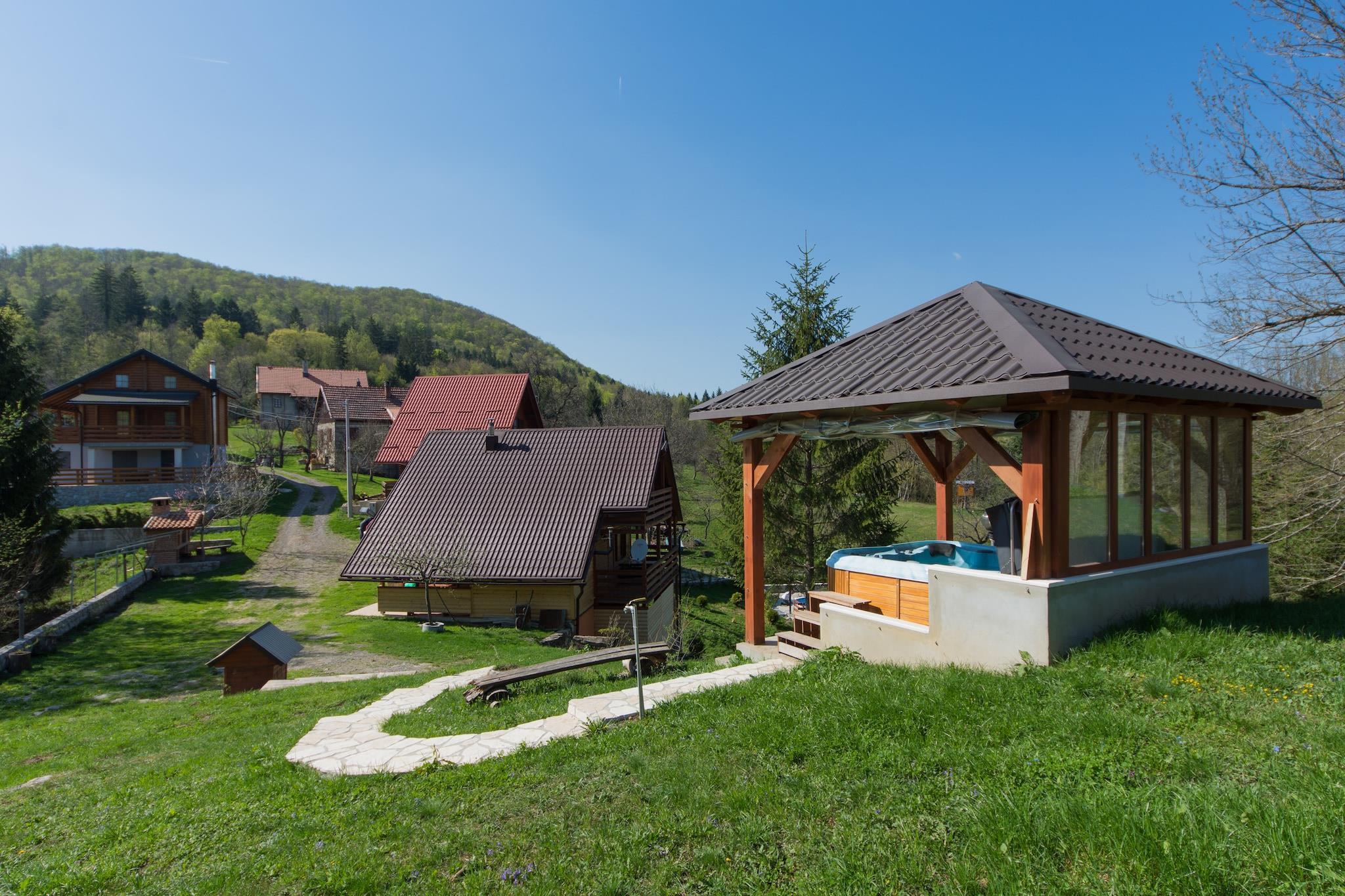 Diese zwei wunderschönen Ferienhäuser mit einem beheizten privaten Pool, Wellness und überdachtem Außenwhirlpool befindet sich in einem kleinen Weiler, umgeben von Natur. Sie werden im wunderschönen Gorski Kotar Naturschutzgebiet in der Nähe des Flusses Kupa übernachten. Ihre Häuser sind größtenteils aus Holz gebaut und geben Ihnen eine gemütliche Atmosphäre, in der Sie sich wie zu Hause fühlen. Das Layout ist ordentlich und ordentlich. Sie haben einen Blick von Ihrer überdachten Veranda über den Pool, den Wald und die umliegende Landschaft. Genießen Sie Ruhe und Privatsphäre in Ihrem Pool, Wellness und Außenwhirlpool. Naturliebhaber und Sportbegeisterte können sich auf den ausgedehnten Wanderwegen für die schönsten Wanderungen, Kajakfahren, Rafting oder Angeln vergnügen. Hier hast du alles. Wenn Sie Ruhe und ein gutes Buch bevorzugen, bieten die Garten- und Balkonterrasse viel Platz. In der unmittelbaren Umgebung befinden sich mehrere Restaurants, die hauptsächlich lokale Spezialitäten servieren. Gorki Kotar ist bekannt für seine Pilze, wilden Spargel und natürlich leckere Fleisch- und Fischgerichte!