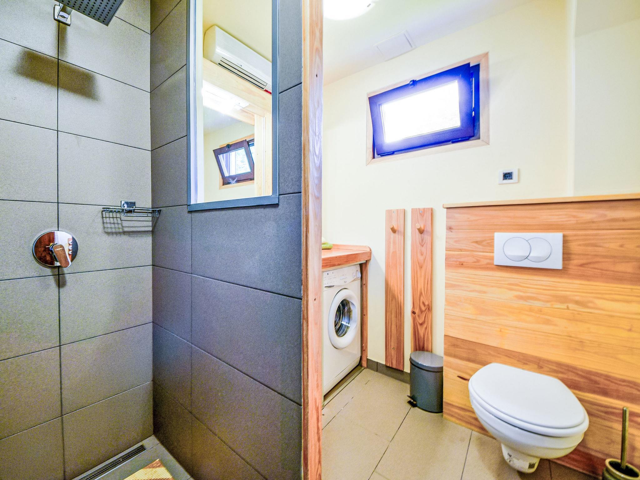 4-Zimmer-Haus 100 m2 auf 2 Stockwerken. Wohn-/Esszimmer 40 m2 mit offenem Kamin und Sat-TV (Flachbildschirm). Ausgang zum Schwimmbad. Offene Küche (4 Kochplatten, Backofen, Geschirrspüler, Mikrowelle, Tiefkühler, elektrische Kaffeemaschine). Dusche/WC. Obergeschoss: Eingang mit Klimaanlage. Ausgang zum Balkon. 1 Zimmer mit 1 Bett (90 cm, Länge 190 cm), 1 Ausziehbett (Länge 190 cm). 1 abgeschrägtes Zimmer, Deckenhöhe 107 - 215 cm mit 1 franz. Bett (160 cm, Länge 190 cm). Ausgang zum Balkon. 1 abgeschrägtes Zimmer, Deckenhöhe 107 - 215 cm mit 1 franz. Bett (140 cm, Länge 200 cm). Ausgang zum Balkon. Dusche/WC. Heizung (extra). Balkon 3 m2, Balkon 7 m2, Terrasse 55 m2, überdacht. Terrassenmöbel, Liegestühle. Sicht auf das Schwimmbad, die Landschaft und den Wald. Zur Verfügung: Haartrockner, Holz (extra). Internet (Wireless LAN, gratis). Parkplatz (überdacht, 1 Auto).