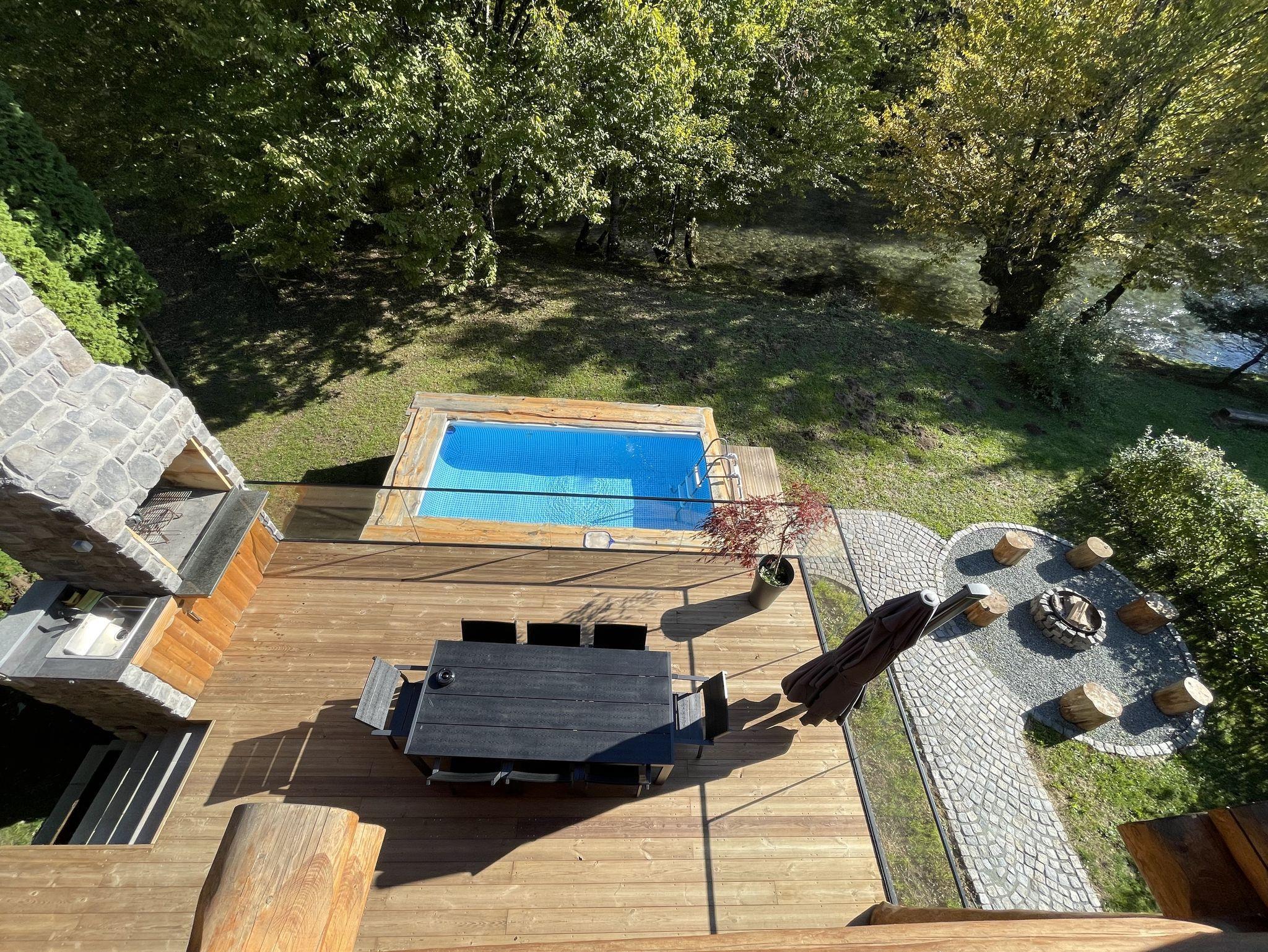 Umgebung des Objekts (Eingerichtet), Hof (1200m2, Kinderbereich, Sitzbereich), Parkplatz (Anzahl der Parkplätze: 4, Entfernung vom Objekt: im Hof), Pool: privat, Dimensionen: 4m x 2m x 1.2m, Wassertyp: Süßwasser, WiFi Internet, Föhn, Kinderbett