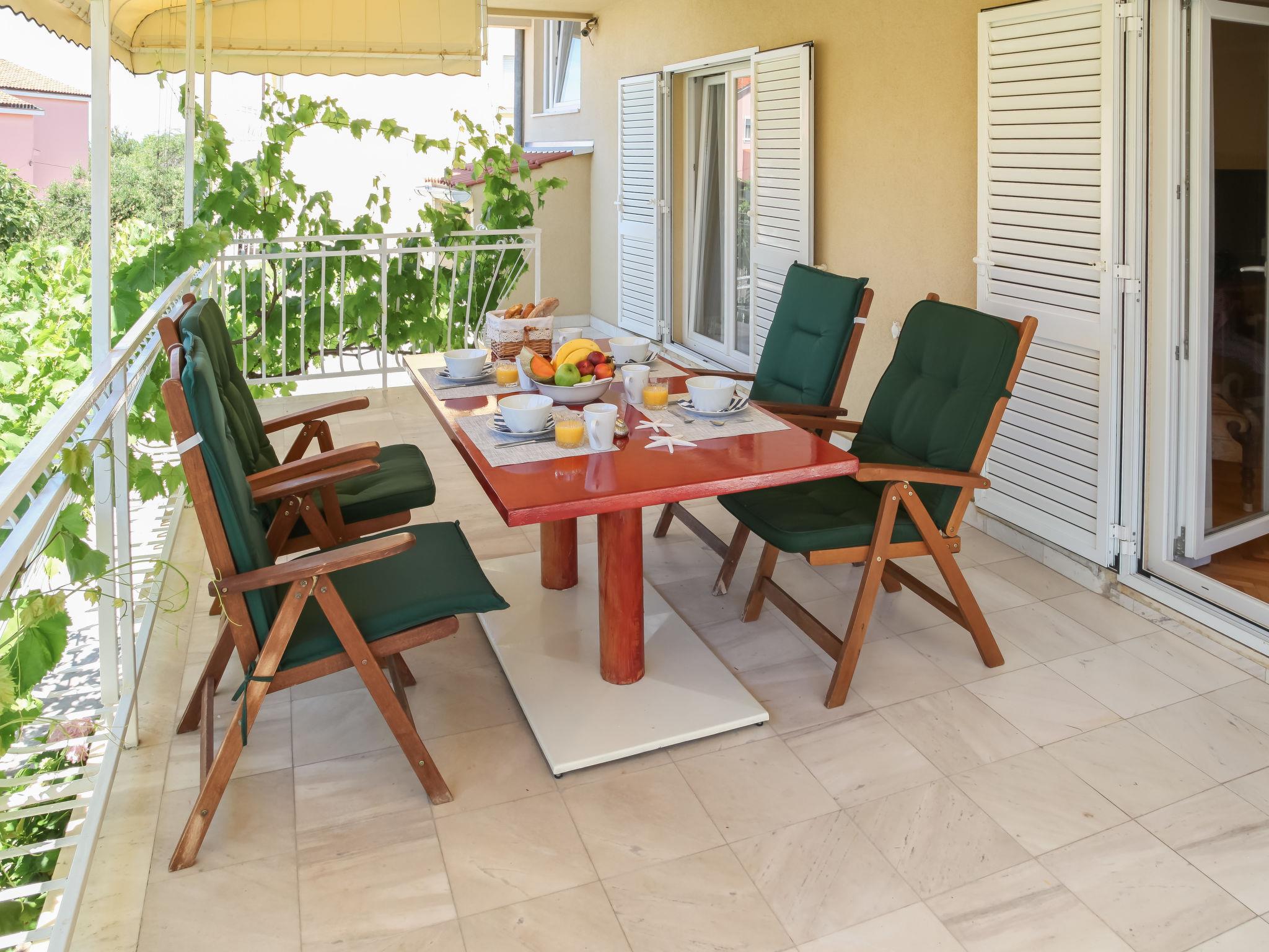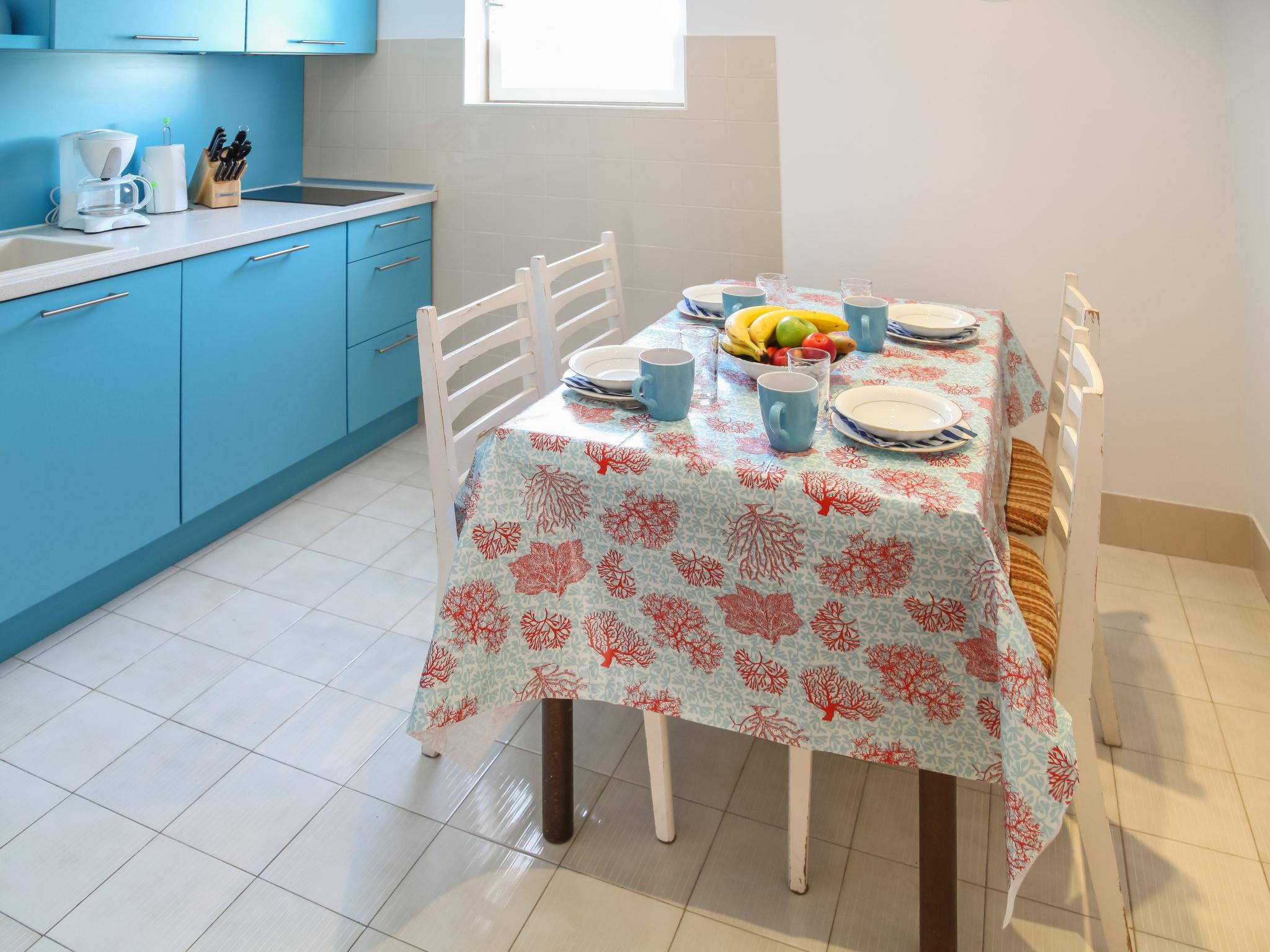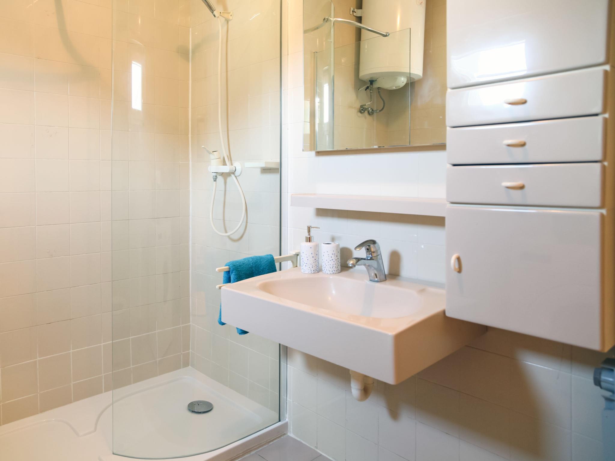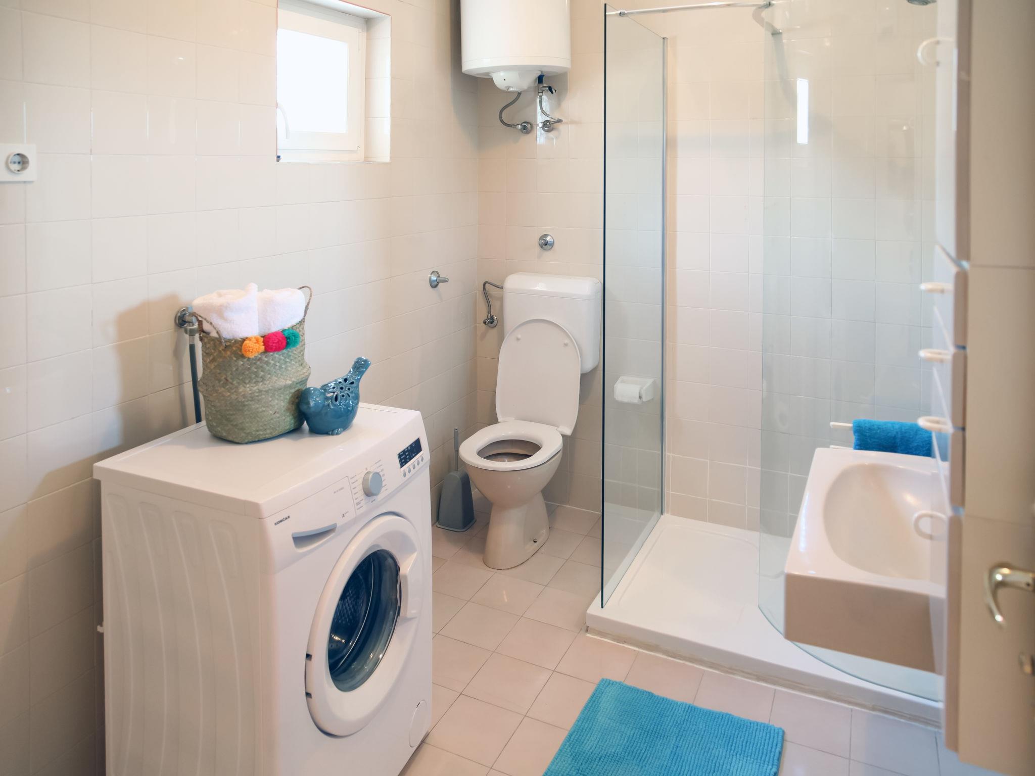5-Zimmer-Haus 200 m2 auf 2 Stockwerken, Südwestlage. Wohn-/Esszimmer 50 m2 mit 1 Diwanbett (120 cm, Länge 210 cm), Sat-TV (Flachbildschirm), Klimaanlage. Ausgang zur Terrasse. 1 Zimmer mit 1 Doppelbett (2 x 90 cm, Länge 200 cm), Sat-TV (Flachbildschirm), Klimaanlage. Ausgang zur Terrasse. Offene Küche (2 Kochplatten, Backofen, Geschirrspüler, Mikrowelle, Tiefkühler, elektrische Kaffeemaschine). Dusche/WC. Obergeschoss: 1 Zimmer mit 1 Doppelbett (2 x 90 cm, Länge 200 cm), Sat-TV (Flachbildschirm), Klimaanlage. Ausgang zum Balkon. 1 Zimmer mit 1 Doppelbett (2 x 80 cm, Länge 200 cm), Sat-TV (Flachbildschirm), Klimaanlage. Ausgang zum Balkon. 1 Zimmer mit 1 Diwanbett (130 cm, Länge 190 cm). Ausgang zum Balkon. Küche (Geschirrspüler, 2 Glaskeramikplatten, Mikrowelle, elektrische Kaffeemaschine) mit Esstisch. Dusche/WC. Keine Heizmöglichkeit. Balkon 10 m2, Balkon 5 m2, Terrasse 25 m2 teilweise überdacht. Terrassenmöbel. Eingeschränkte Sicht auf das Meer. Zur Verfügung: Waschmaschine, Haartrockner. Internet (Wireless LAN, gratis). Nicht geeignet für Kinder unter 10 Jahren. Ferienwohnung im ersten Stock: Wohn-/Essbereich, offene Küche, 1 Schlafzimmer. Ferienwohnung im zweiten Stock: Küche, 3 Schlafzimmer.