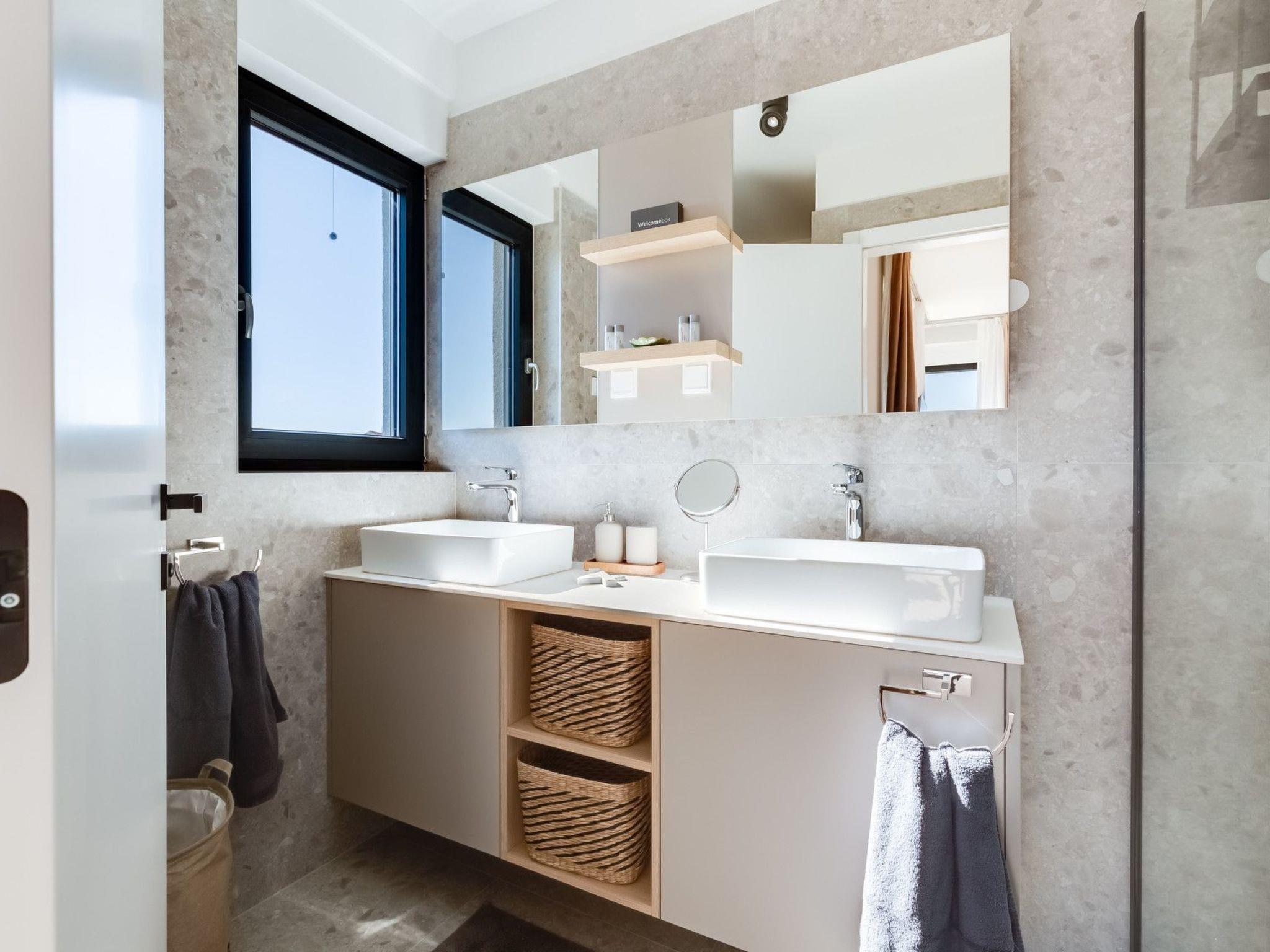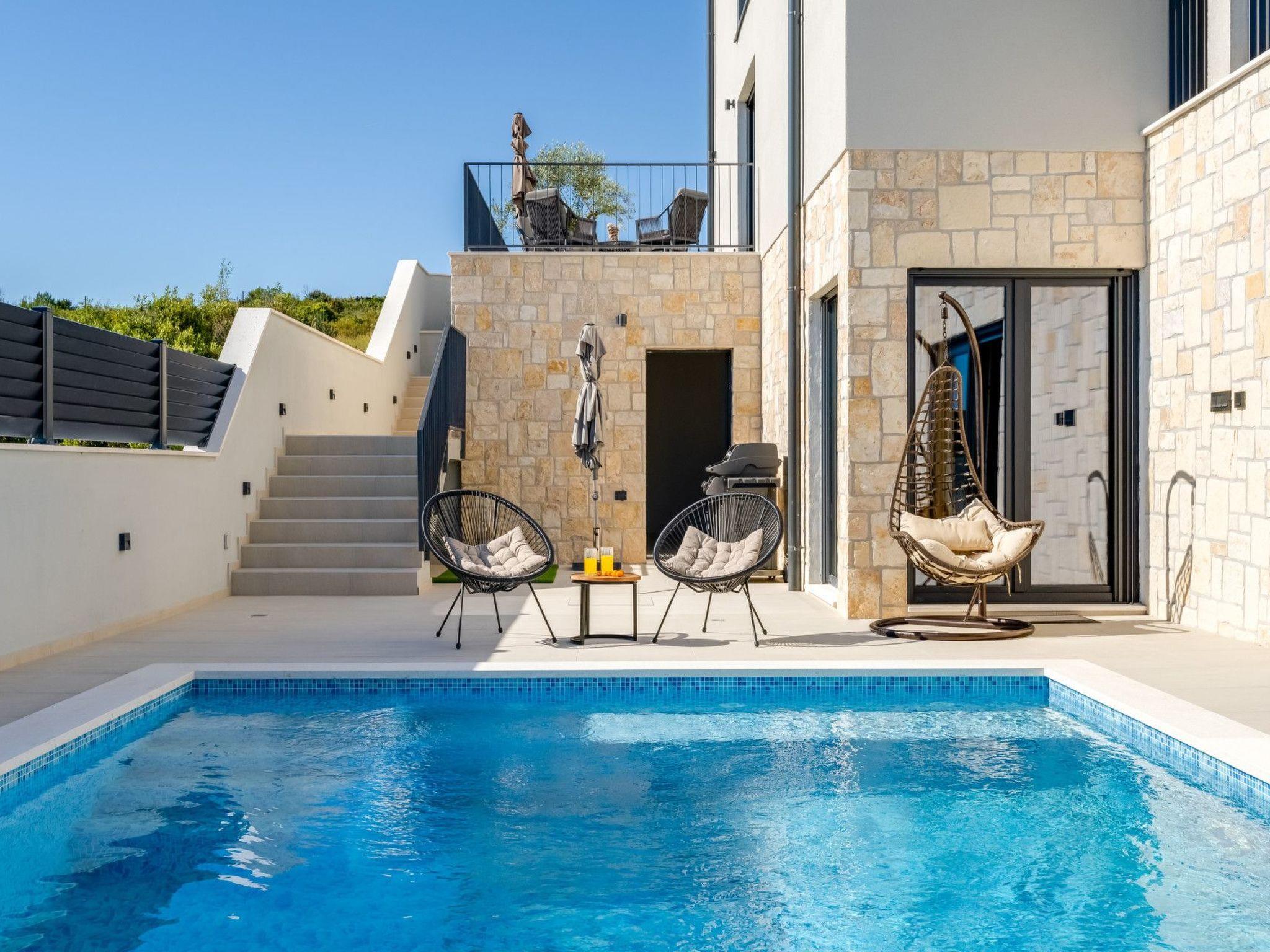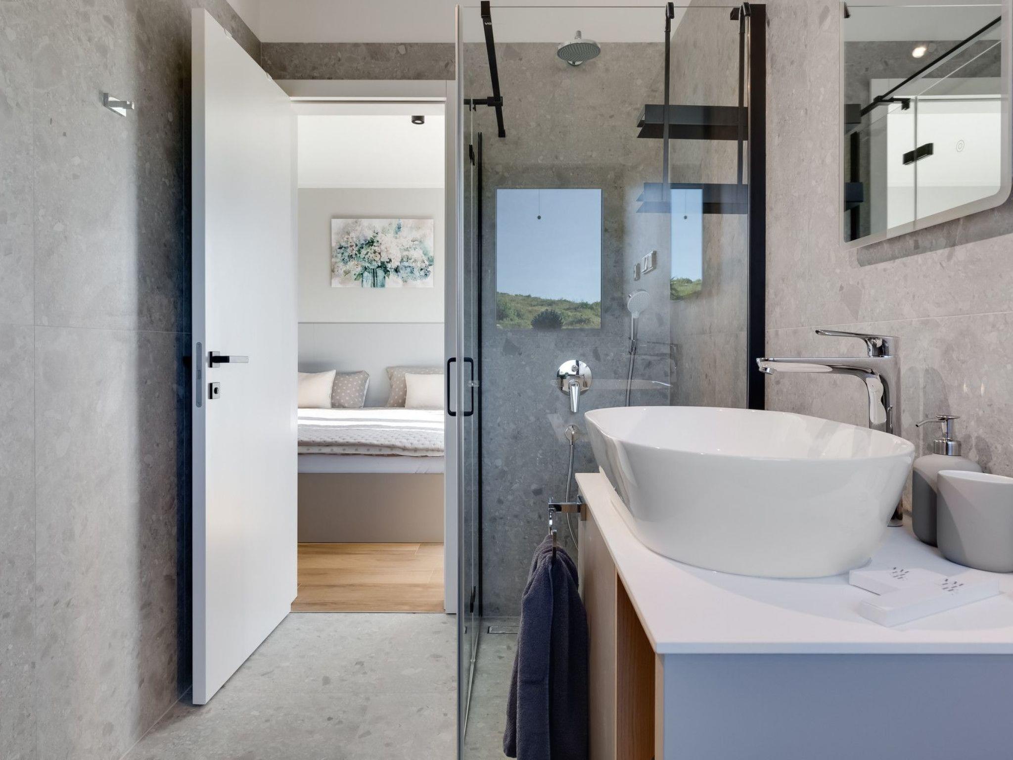Diese moderne Villa Schönheit besteht aus insgesamt 4 Schlafzimmern mit eigenem Bad und kann maximal 8 Personen beherbergen. Alle Schlafzimmer befinden sich in der zweiten Etage. Zwei Schlafzimmer haben Zugang zum Balkon, von dem aus Sie die inspirierende Aussicht genießen können.